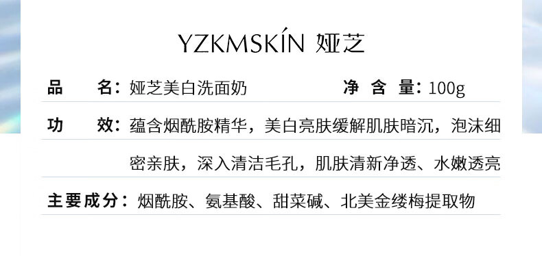 娅芝美白洗面奶烟酰胺洁面乳透亮清洁不紧绷保湿面部粗糙暗沉男女生 美白洗面奶(100g) 1瓶装