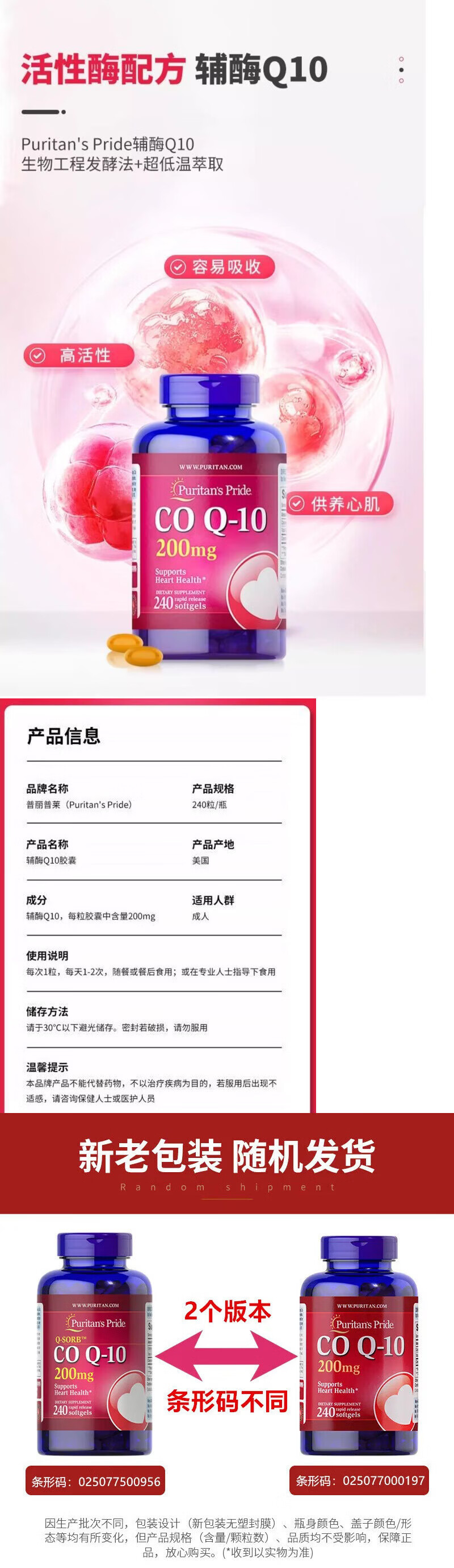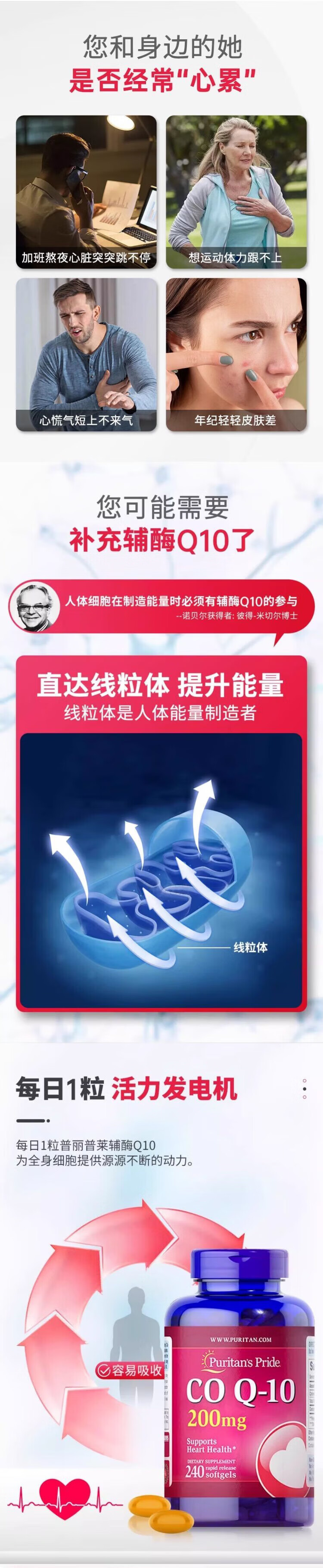 普丽普莱(Puritan's Pride)美国进口辅酶q10 高含量软胶囊备孕 保护心脏心脑血管 200mg 日常养护(共240粒) 240粒*1瓶