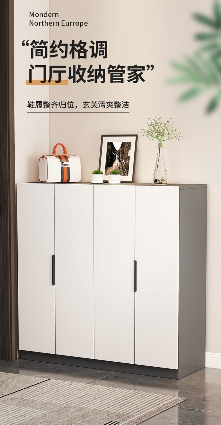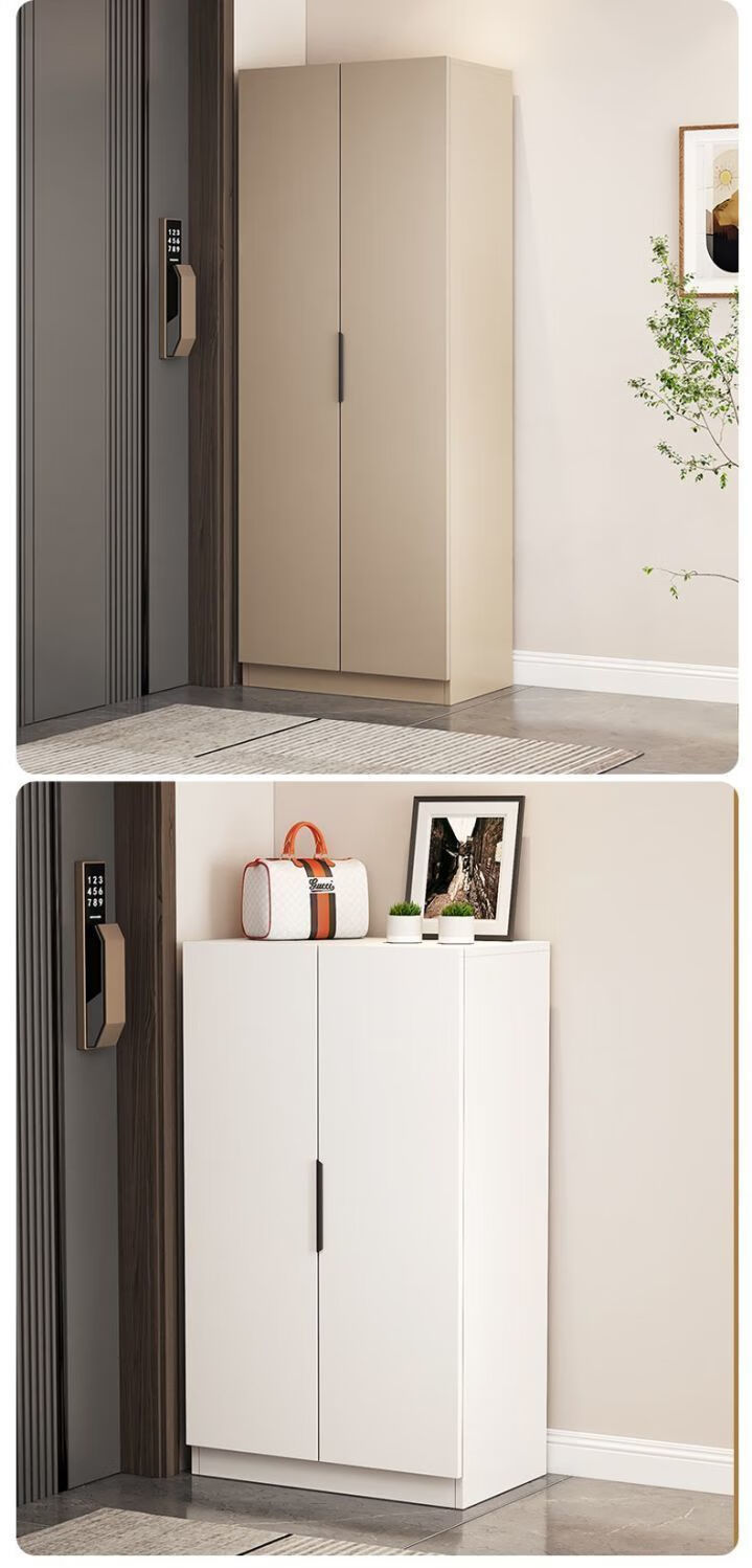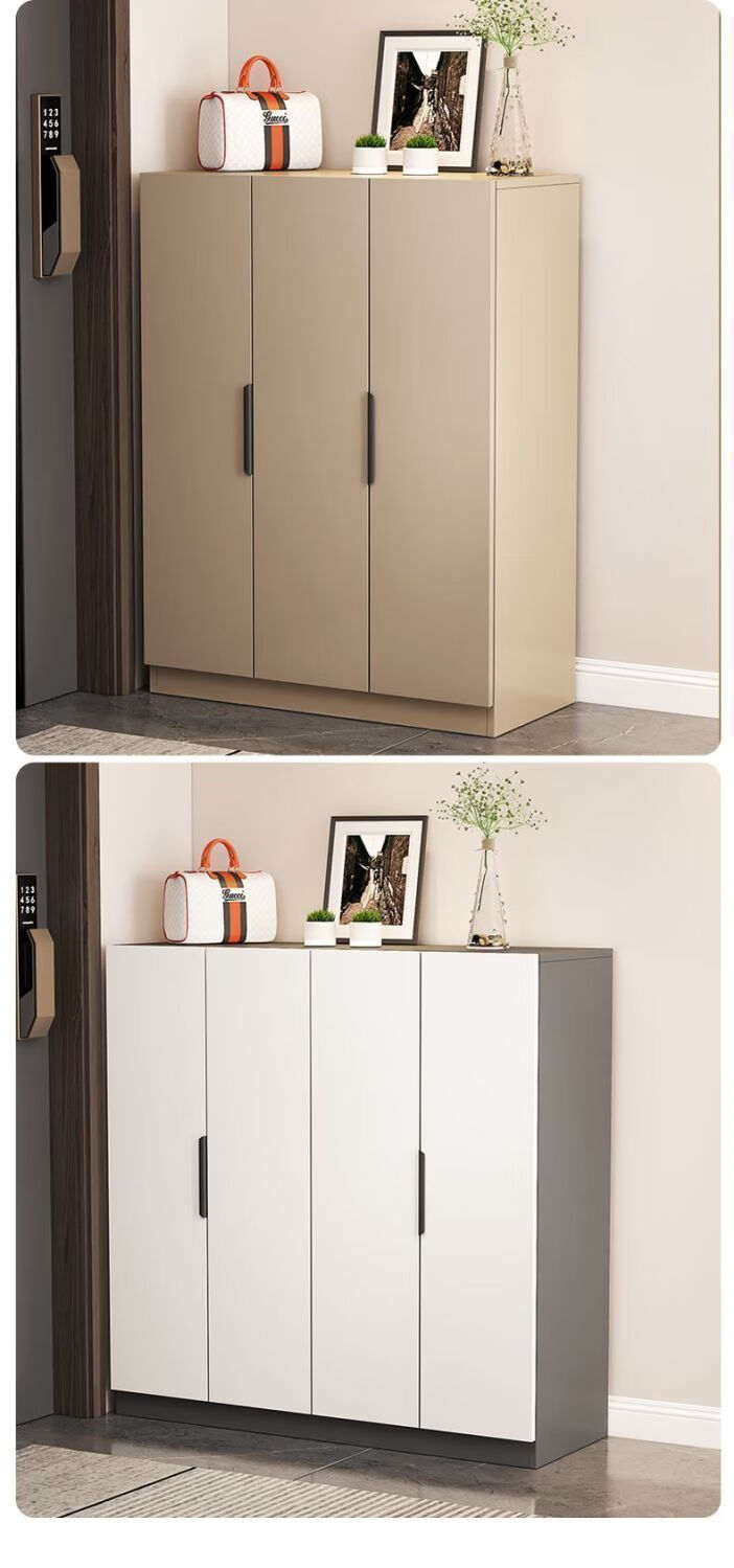 欣慕雅家用鞋柜对开门阳台储物柜入户玄关柜宿舍收纳柜靠墙大容量鞋架子 卡其色【加 深款】 长60*120高鞋柜【两门】