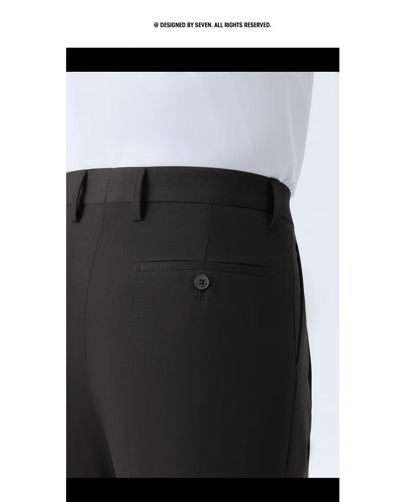 柒牌(SEVEN)【犀牛褶】男装2026春夏新品商务修身挺括立体舒适混纺西裤 黑色 34