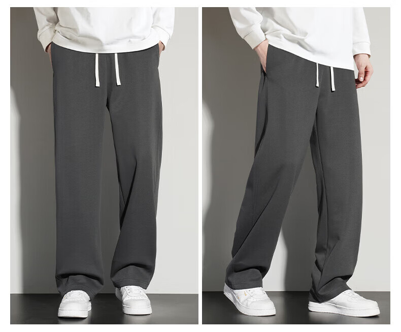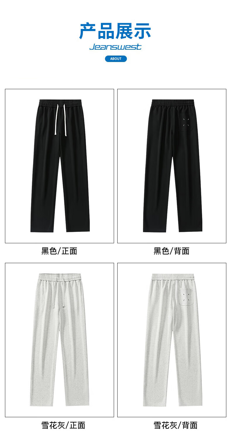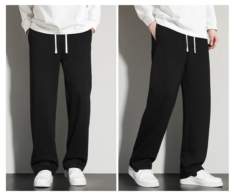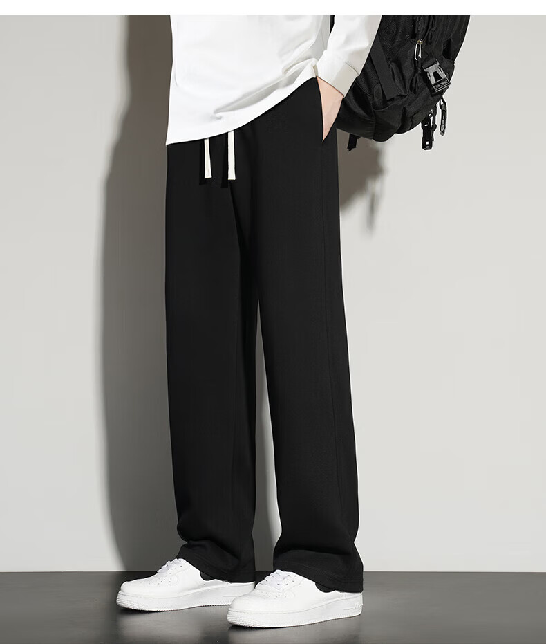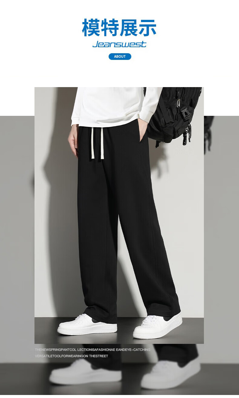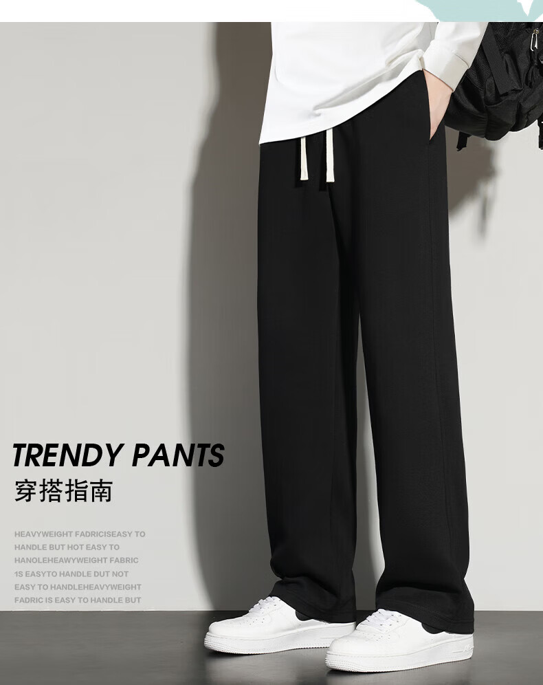 真维斯(Jeanswest)2026夏季新款休闲卫裤男宽松直筒阔腿裤美式潮牌运动长裤子 0357黑色(加绒) 4XL