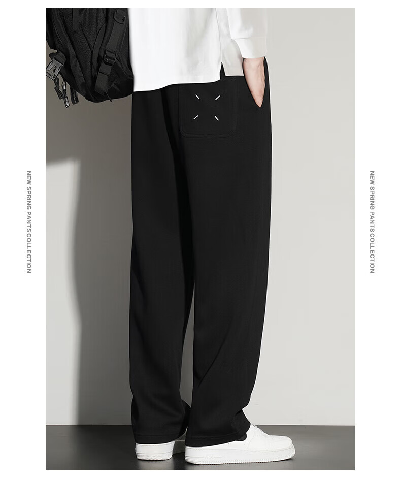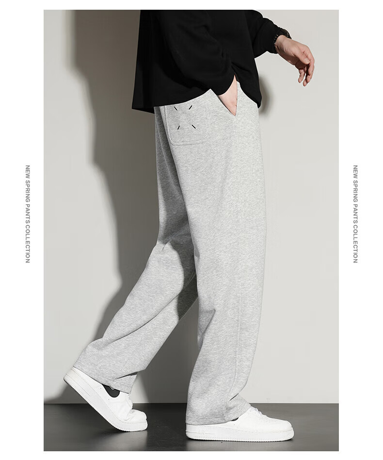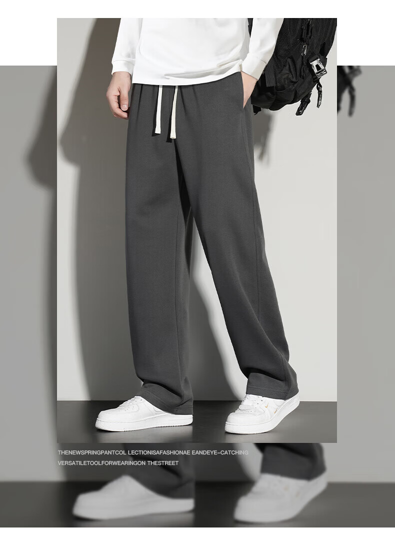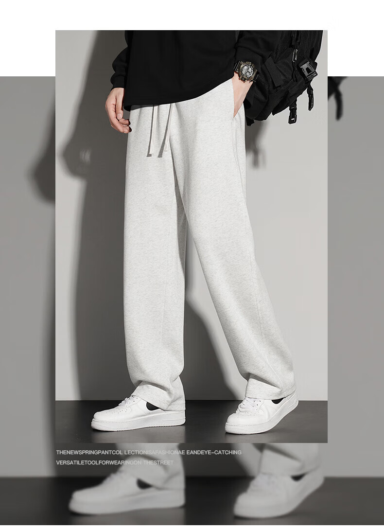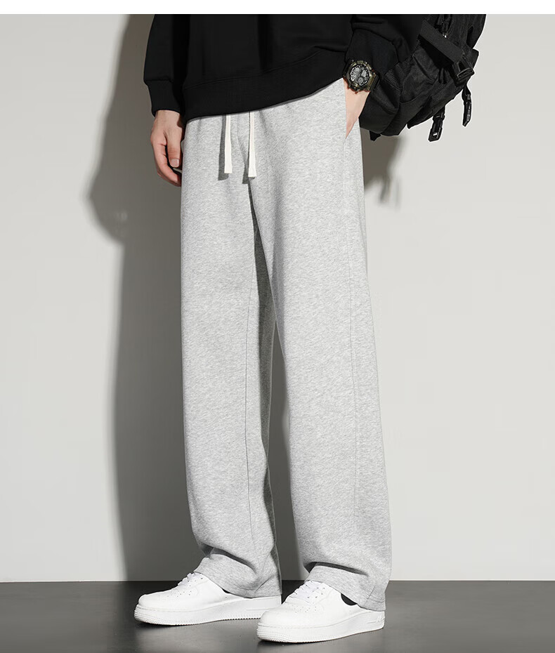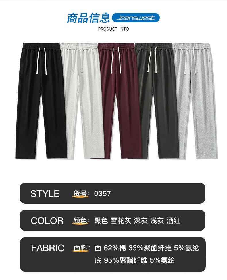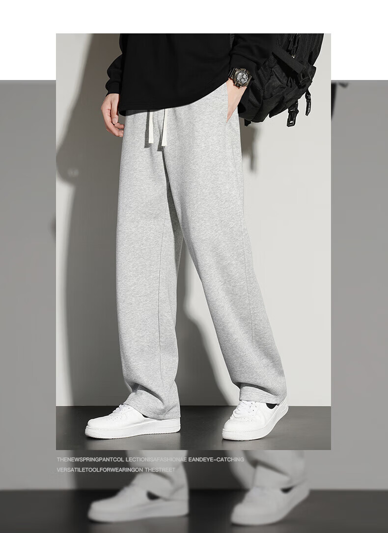 真维斯(Jeanswest)2026夏季新款休闲卫裤男宽松直筒阔腿裤美式潮牌运动长裤子 0357黑色(加绒) 4XL