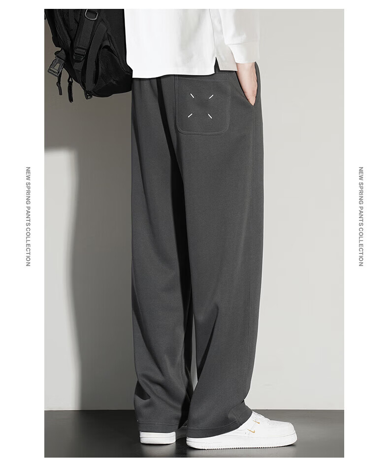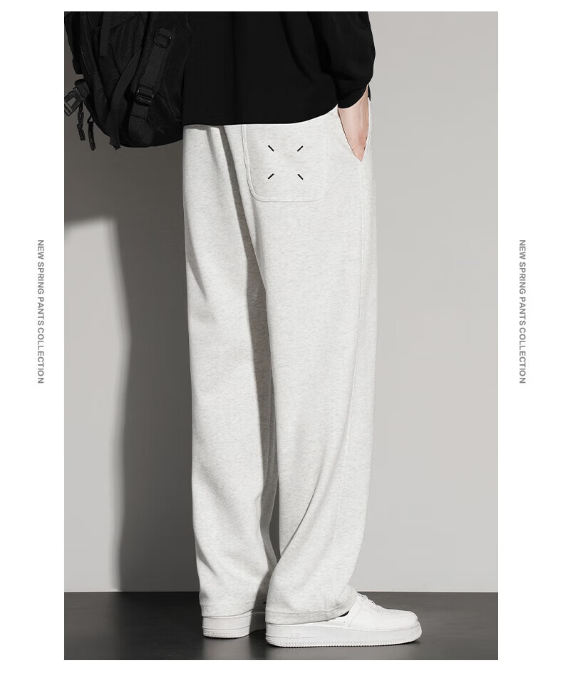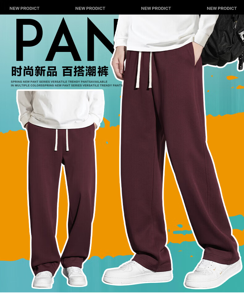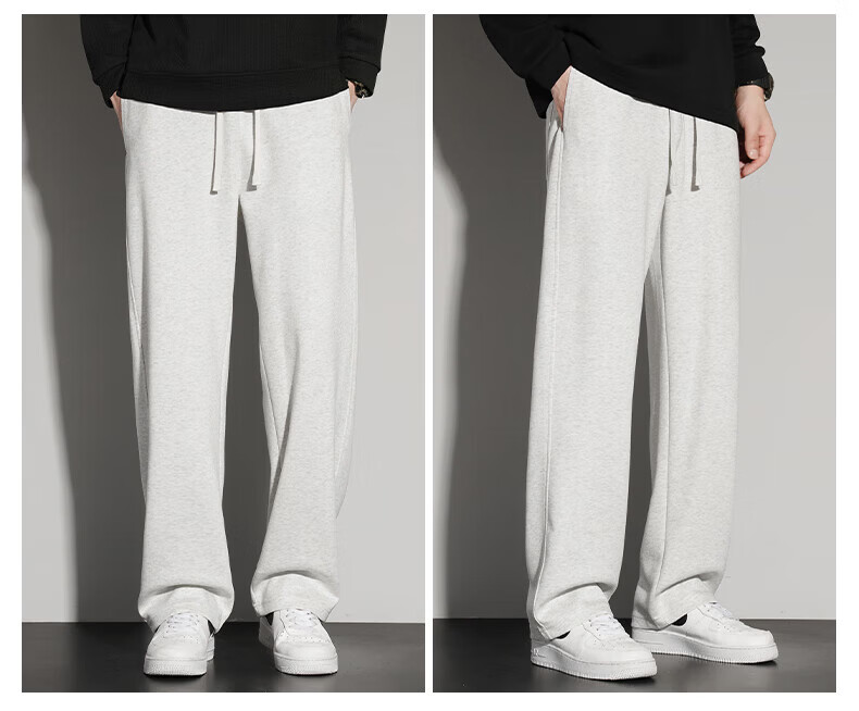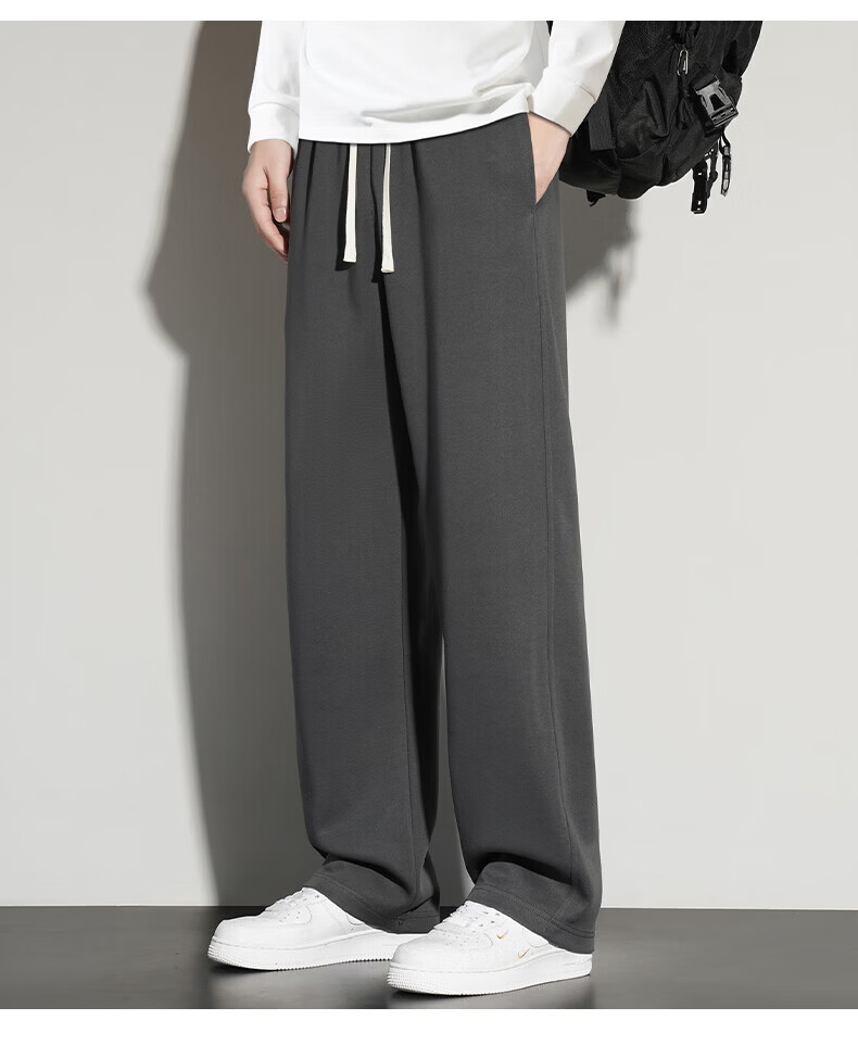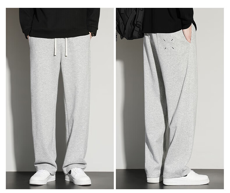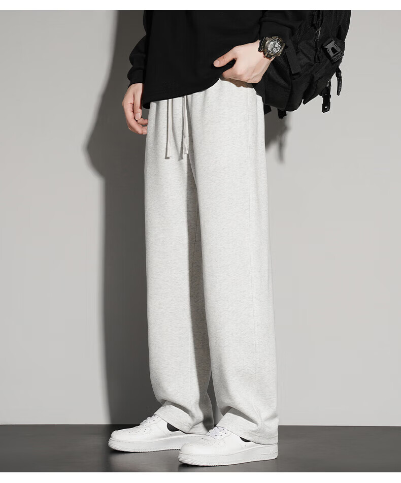 真维斯(Jeanswest)2026夏季新款休闲卫裤男宽松直筒阔腿裤美式潮牌运动长裤子 0357黑色(加绒) 4XL