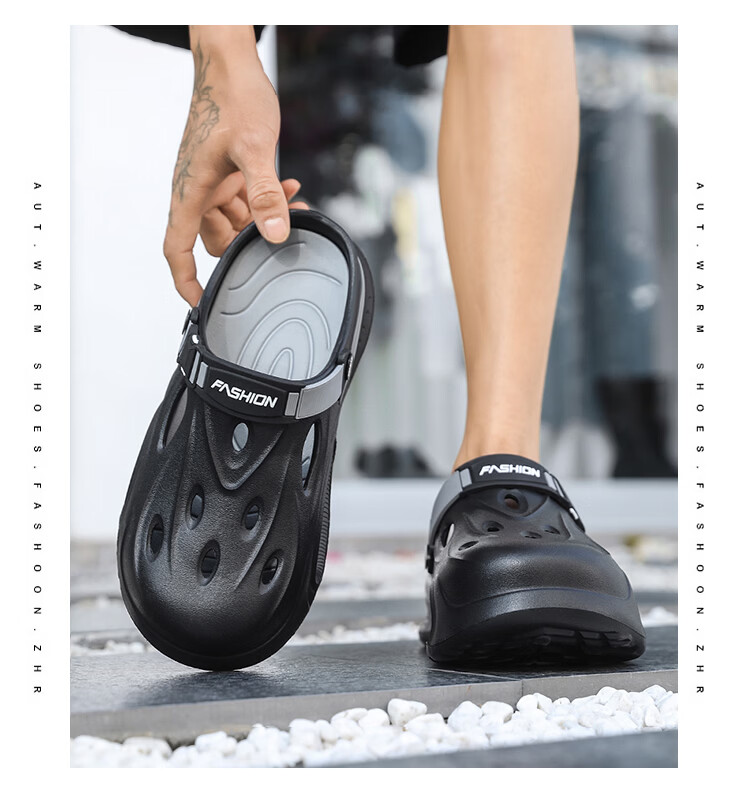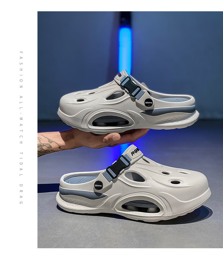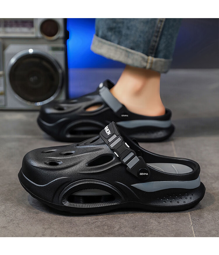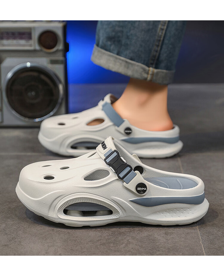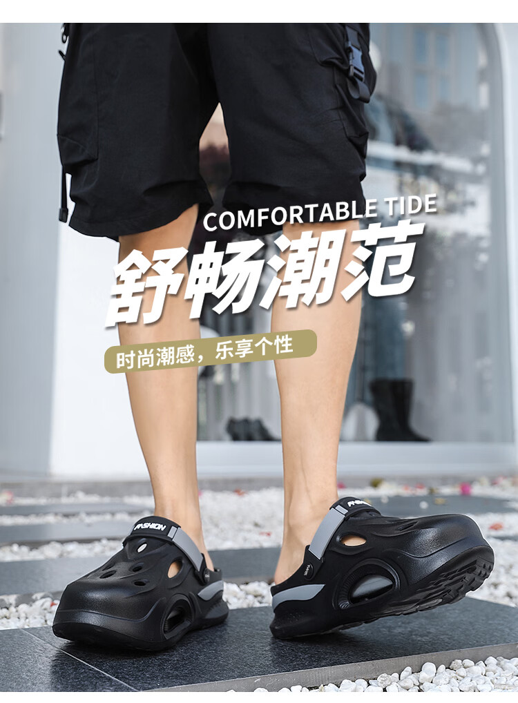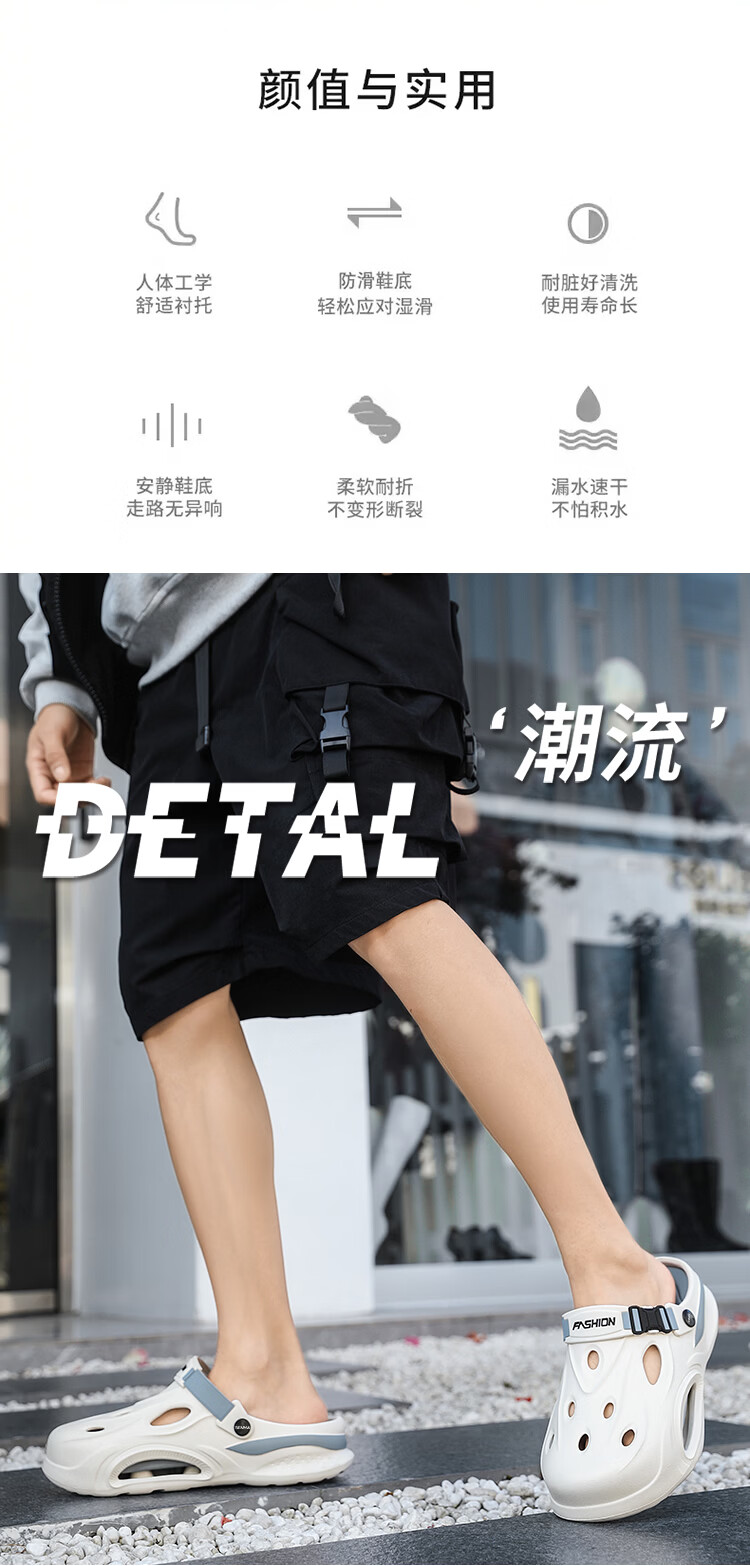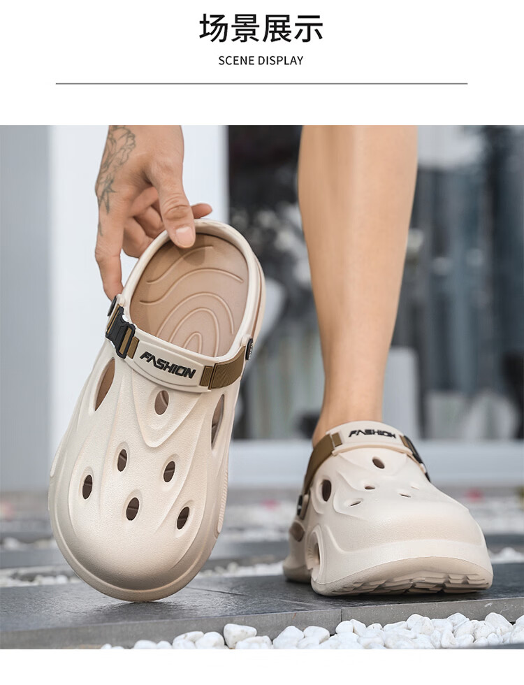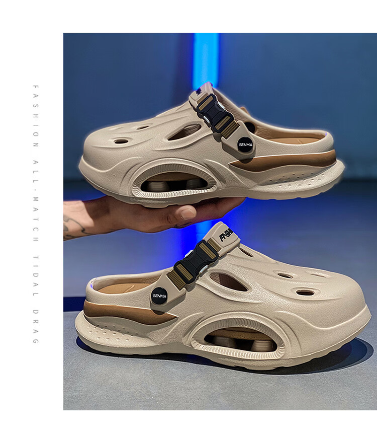 森馬厚底洞洞鞋男士夏季2026新款外穿增高包头拖鞋踩屎感沙滩凉鞋凉拖 米棕【基础款】 38-39 【现货秒发】