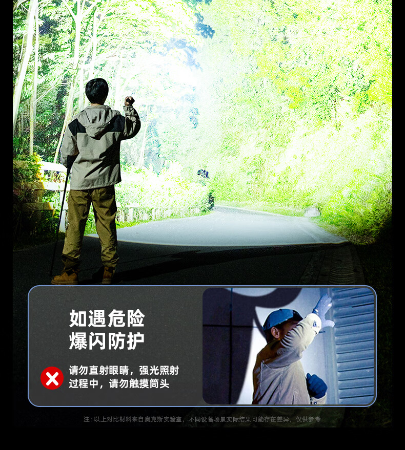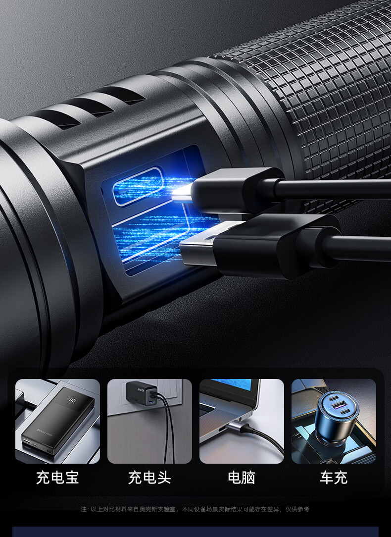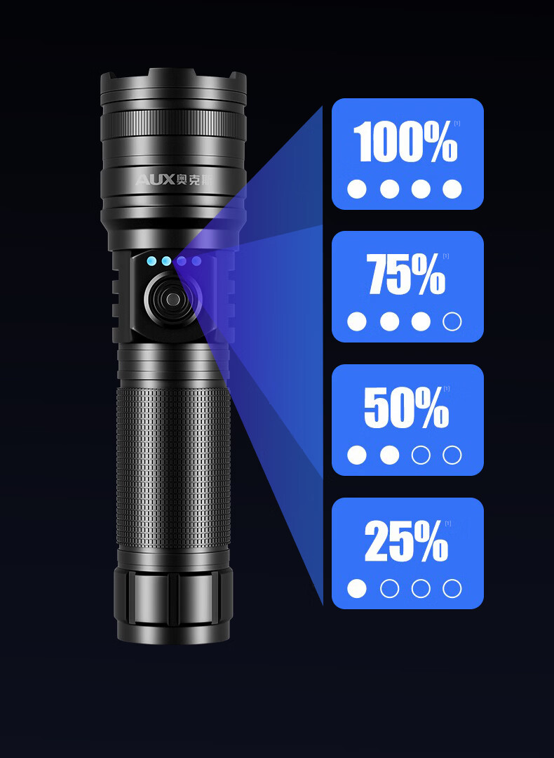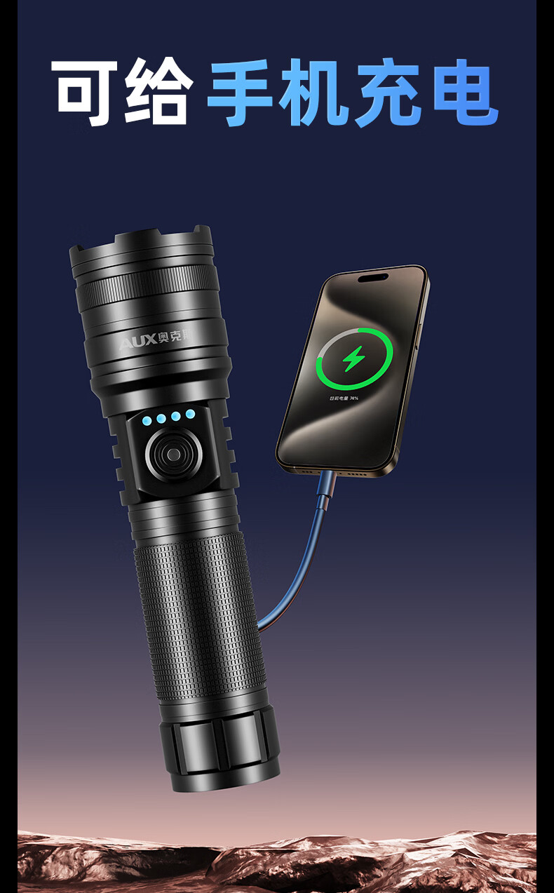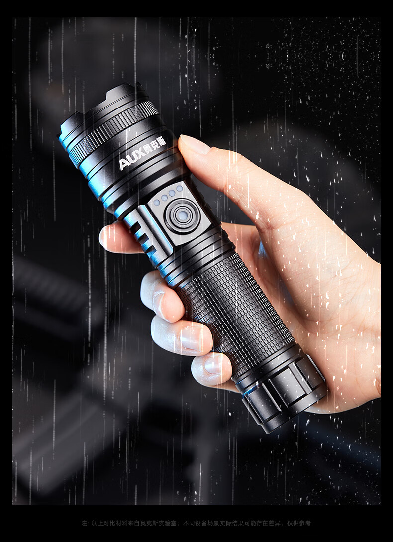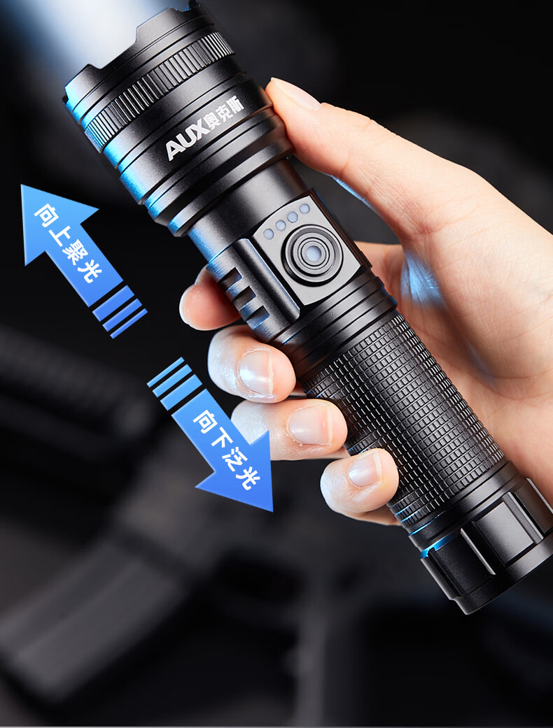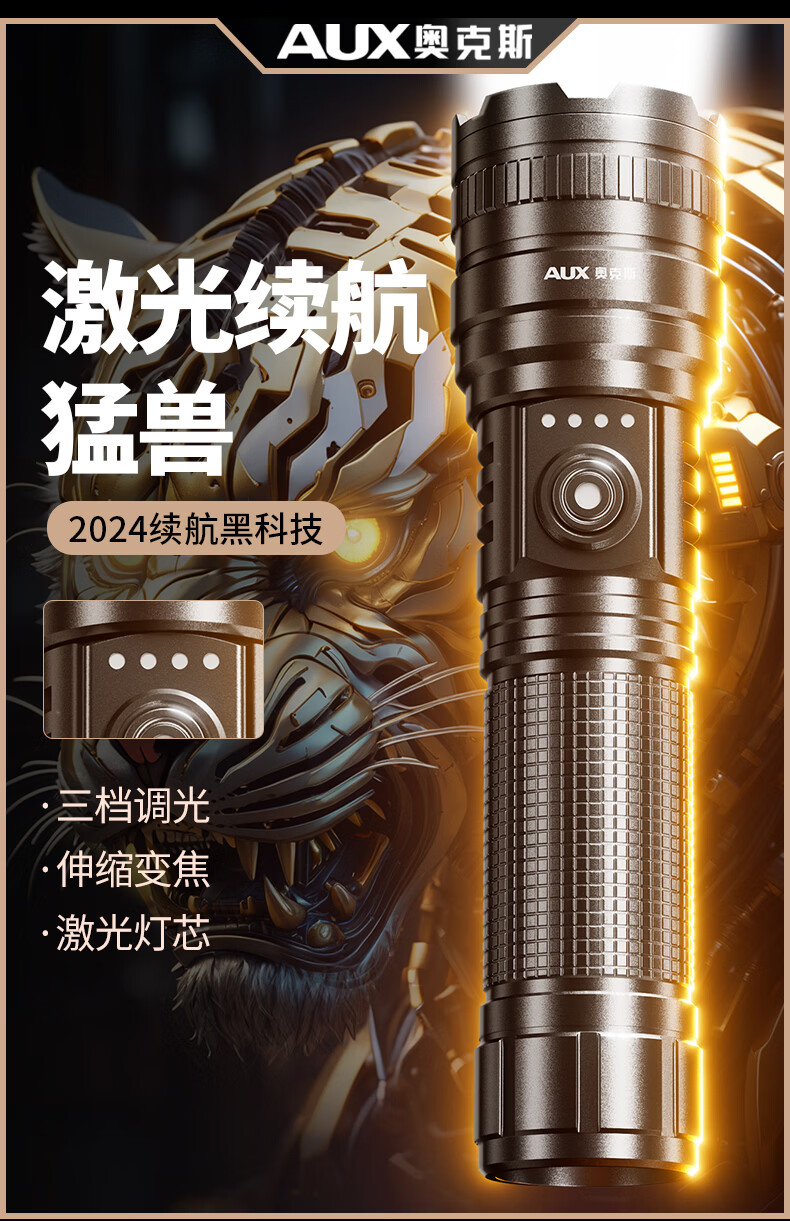 奥克斯(AUX)大功率强光手电筒变焦超亮白激光户外巡逻家用远射充电超长续航 【大功率-M77白激光灯芯】续航20小时+智能电显