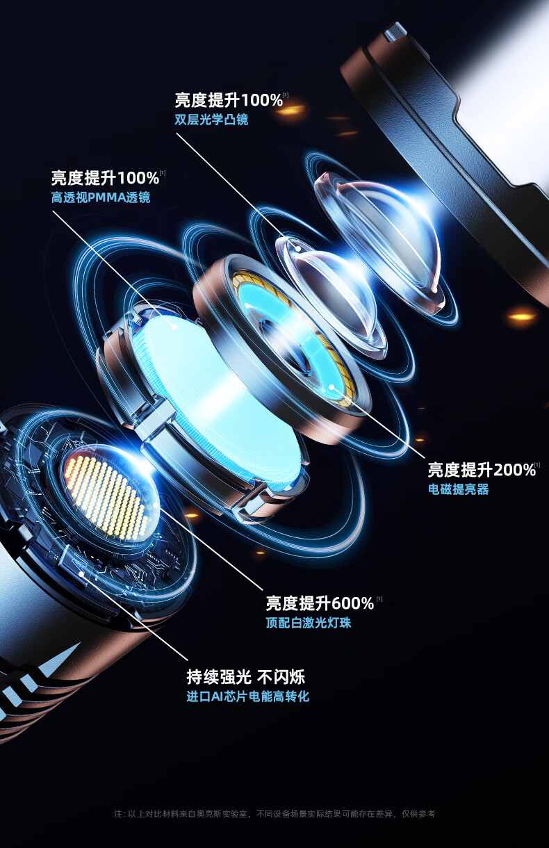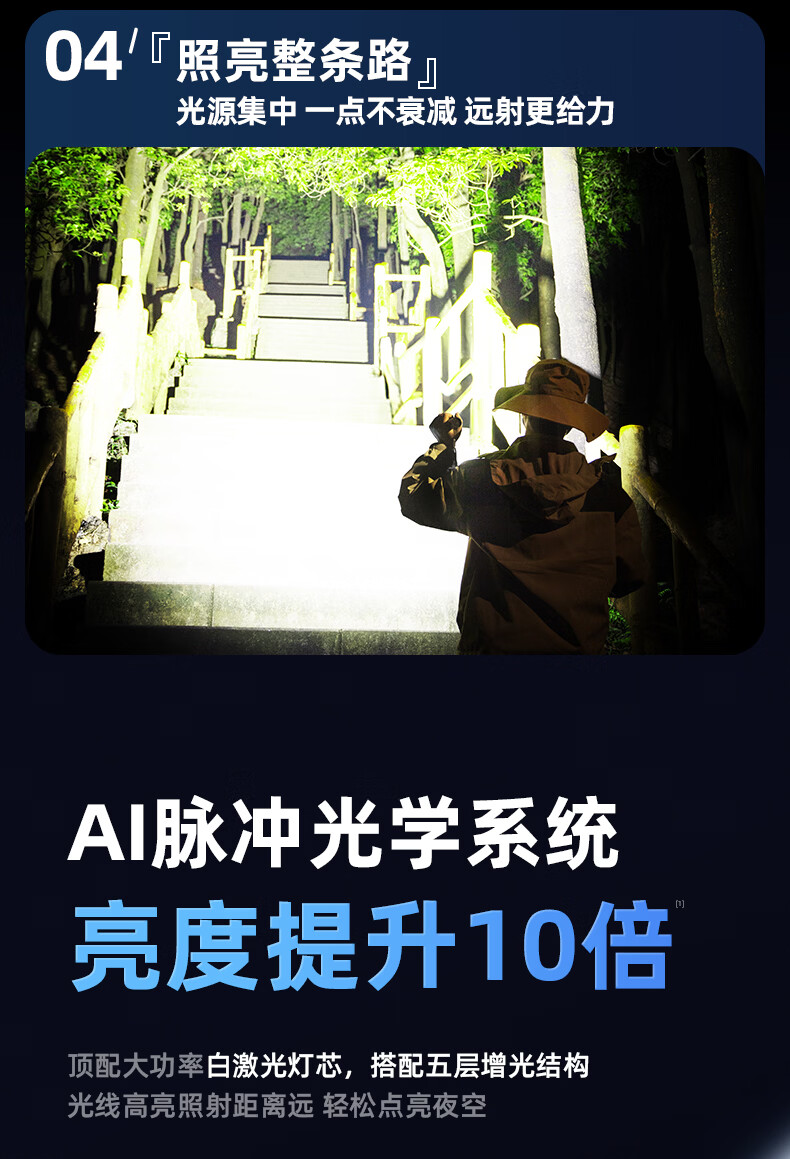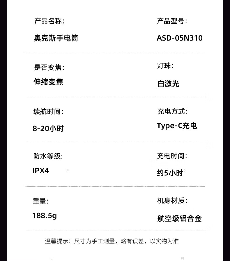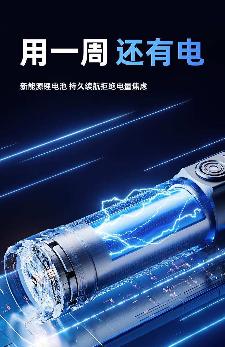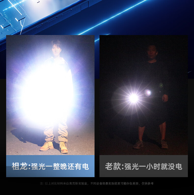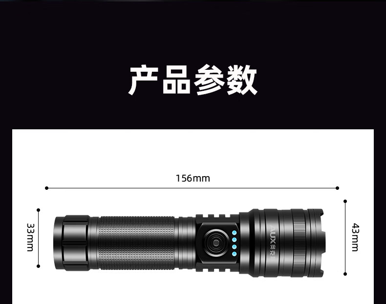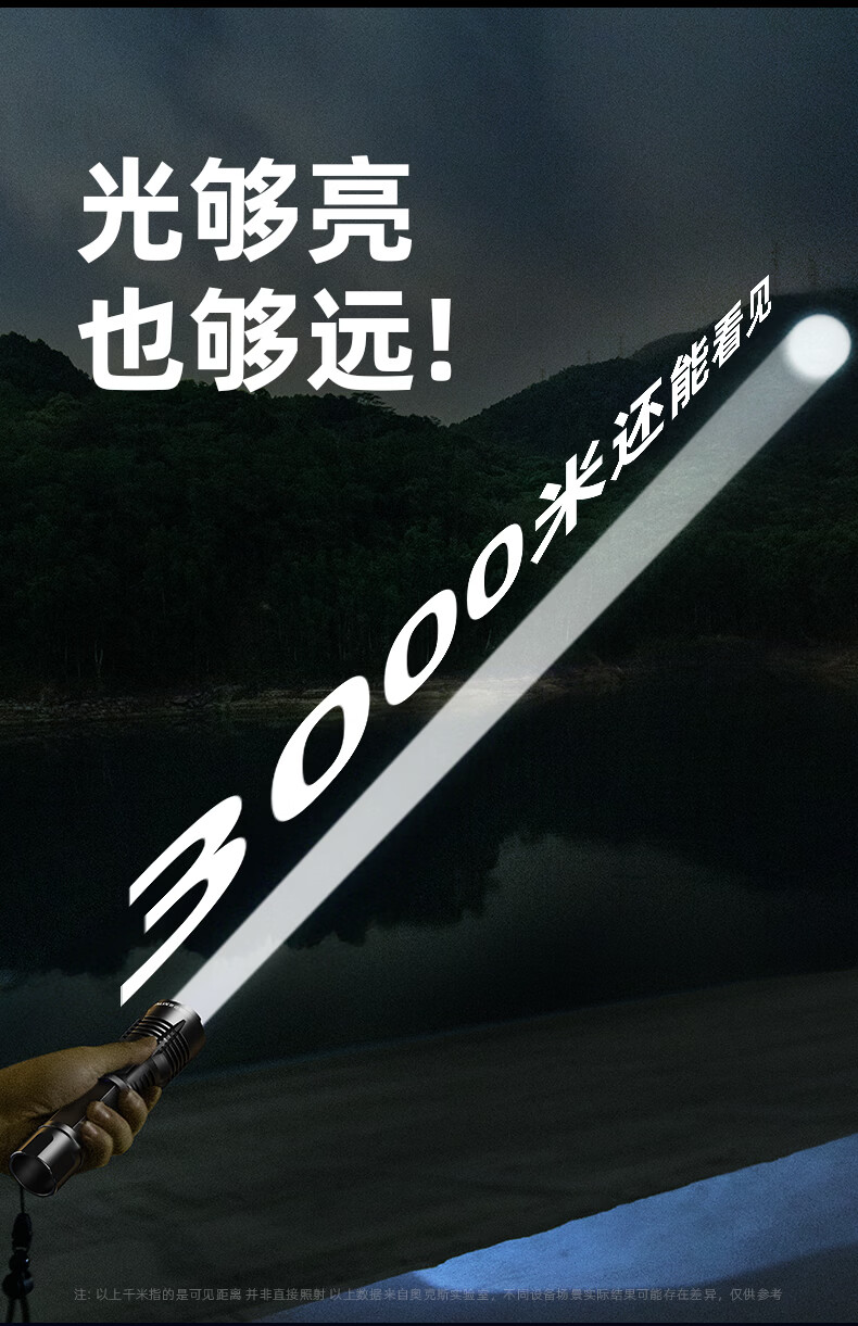 奥克斯(AUX)大功率强光手电筒变焦超亮白激光户外巡逻家用远射充电超长续航 【大功率-M77白激光灯芯】续航20小时+智能电显