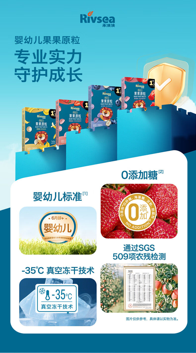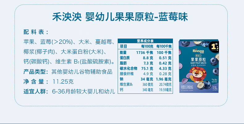 禾泱泱婴幼儿果果原粒蓝莓味11.25g高钙宝宝零食小巧练抓握6月+