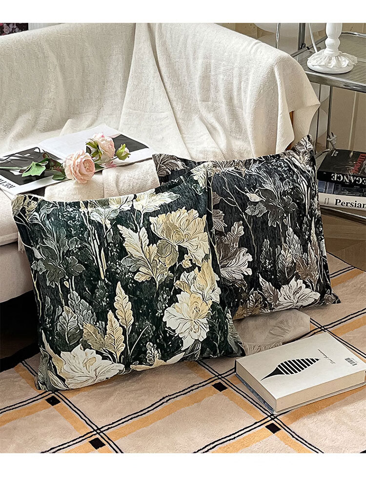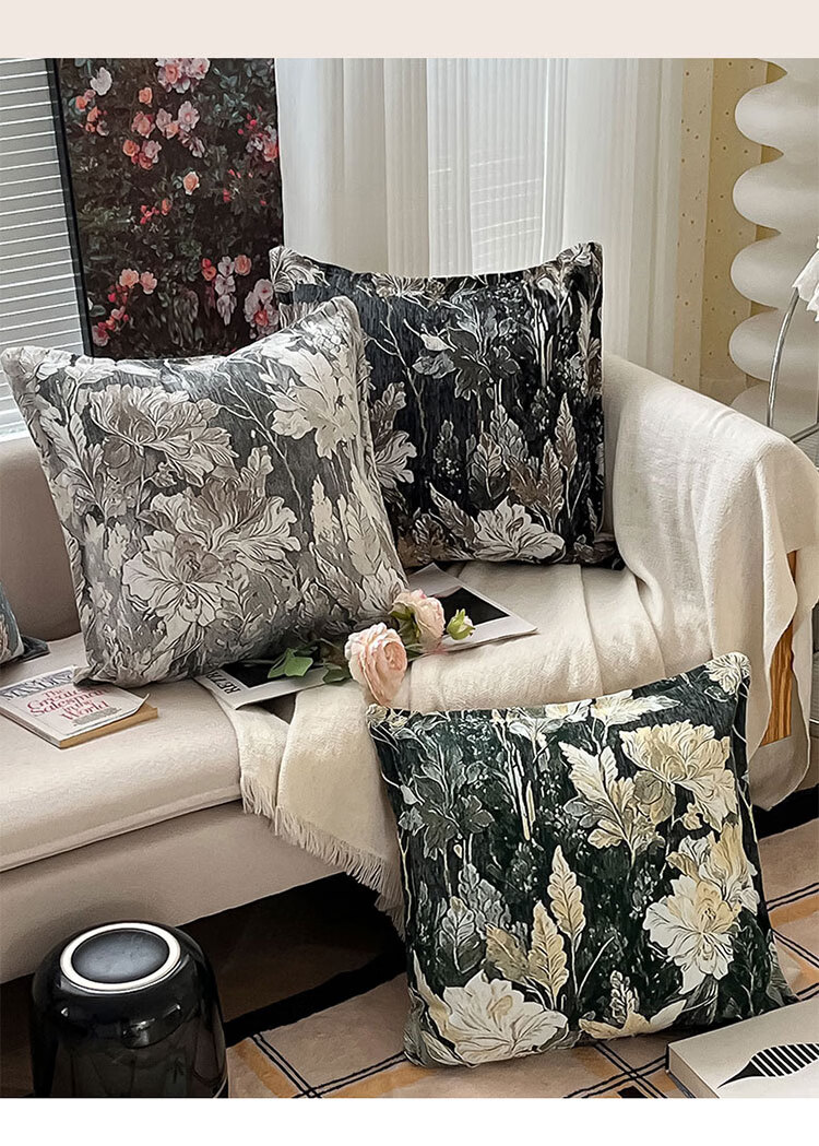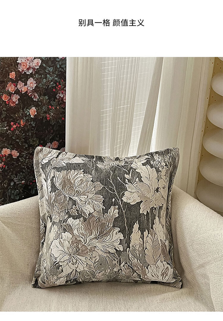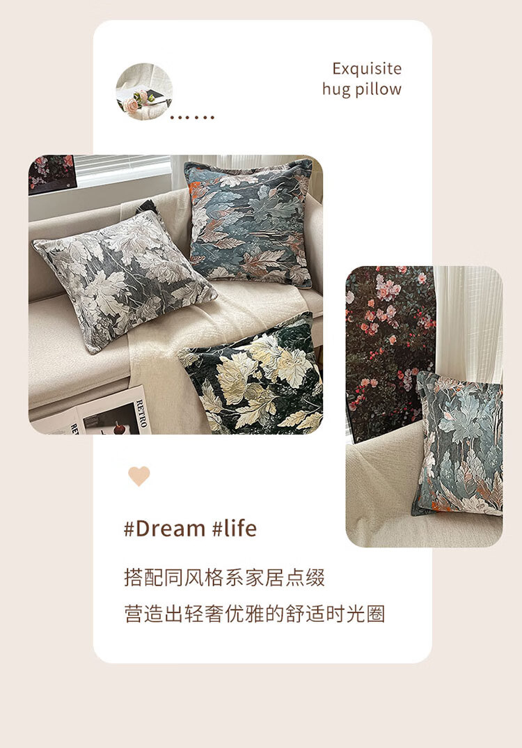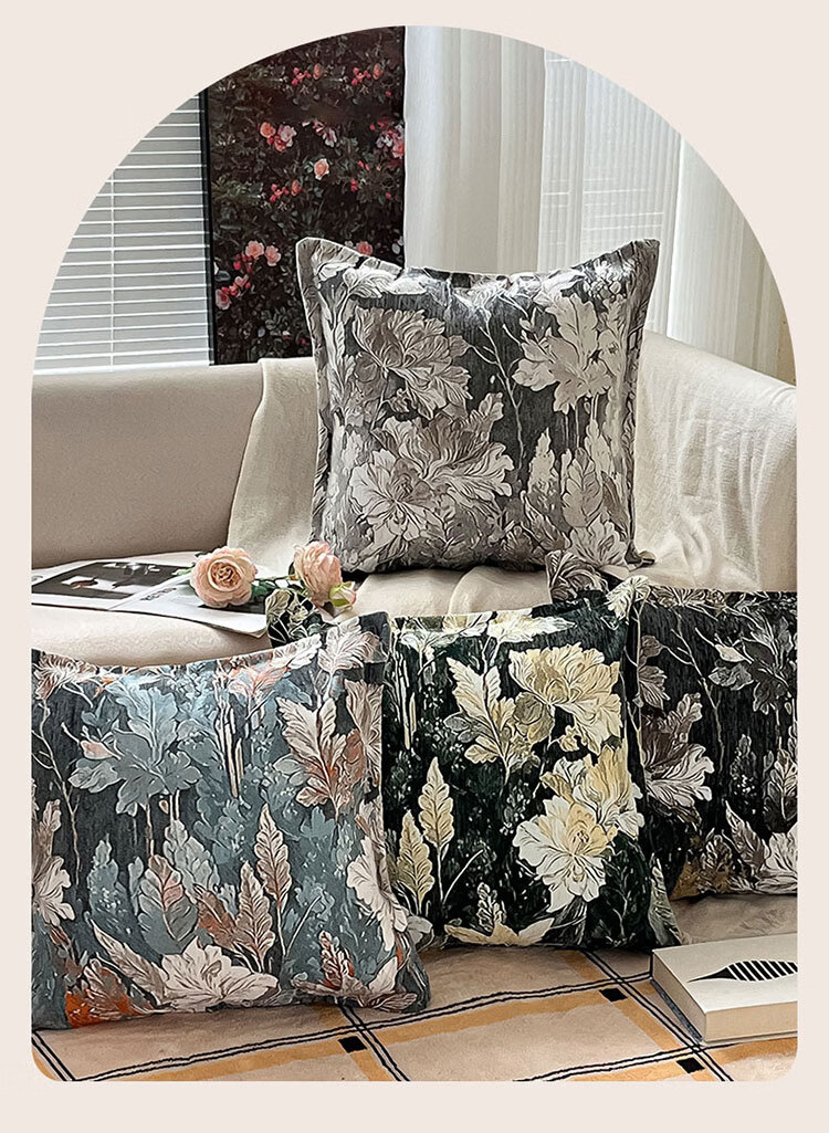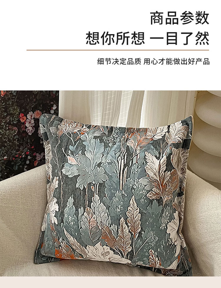 罗兰家纺民族风提花沙发抱枕客厅办公室护腰靠枕午睡枕卧室床头方形靠枕 HC 民族风提花抱枕-织夜藏春浅绿 45cm*45cm 枕套 【不含芯】