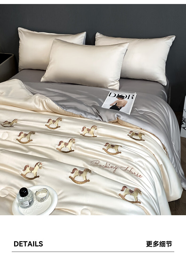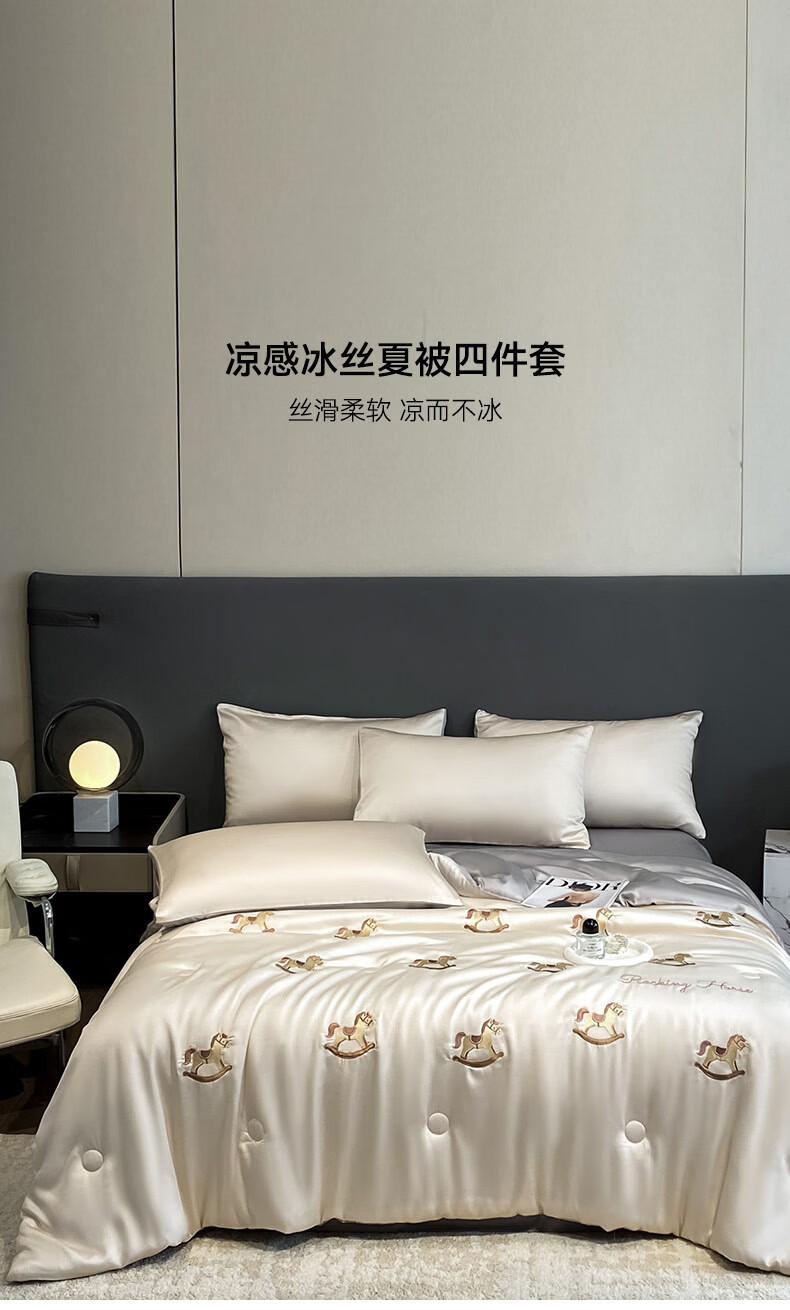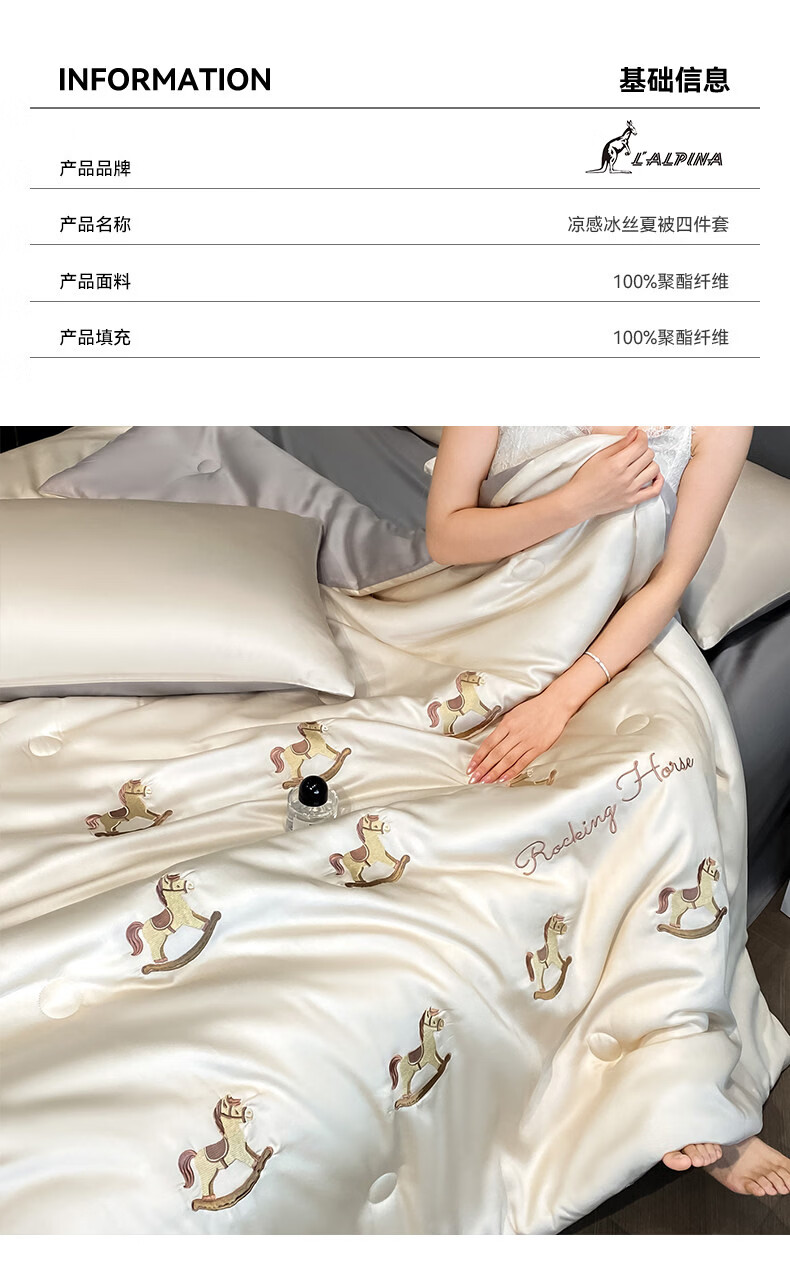 阿尔皮纳袋鼠冰丝夏凉被夏季凉感空调被子薄被褥宿舍单双人夏被芯四件套可机洗 幸运马-梧桐灰【A类三倍凉感冰丝丝滑裸睡】 单人夏被:150*200cm
