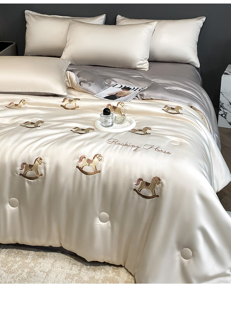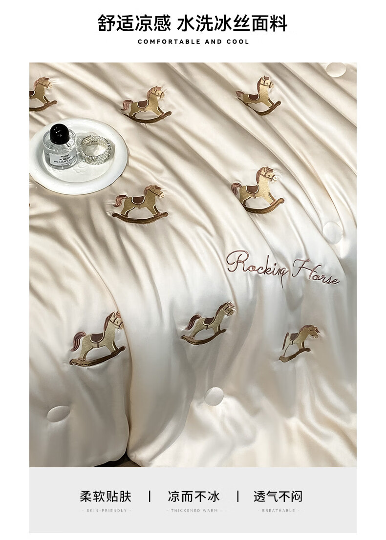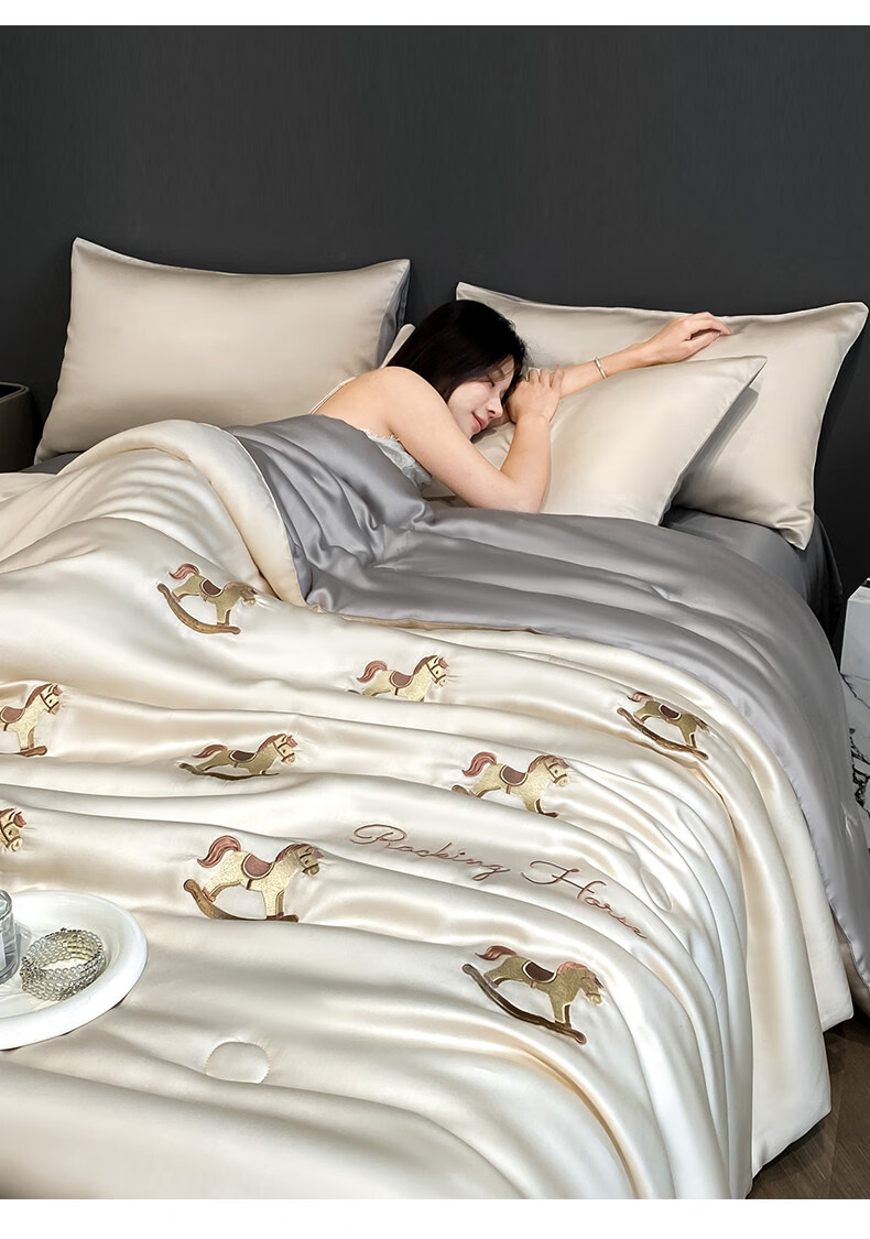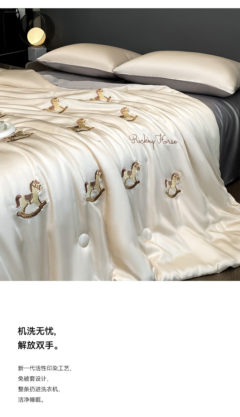 阿尔皮纳袋鼠冰丝夏凉被夏季凉感空调被子薄被褥宿舍单双人夏被芯四件套可机洗 幸运马-梧桐灰【A类三倍凉感冰丝丝滑裸睡】 单人夏被:150*200cm