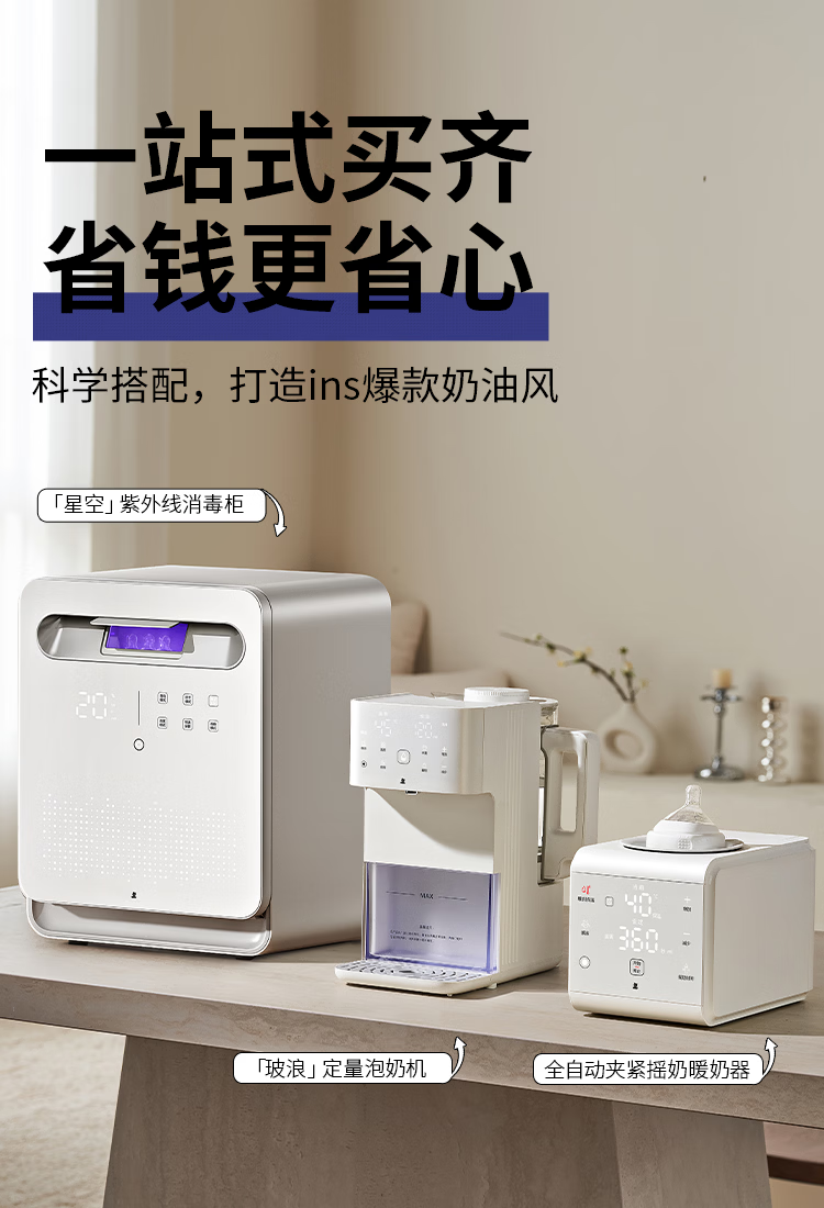 小白熊消毒柜婴儿紫外线2030+定量泡奶机5100+摇奶暖奶器一体机5109