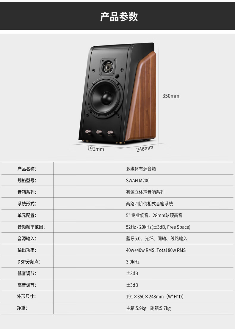 惠威(HiVi)M200有源HiFi音响 经典2.0桌面音箱 笔记本台式电脑音箱 家用客厅电视音响