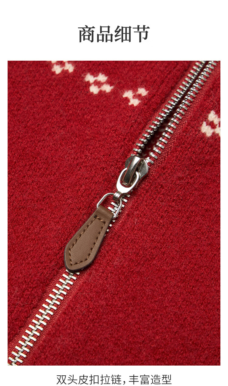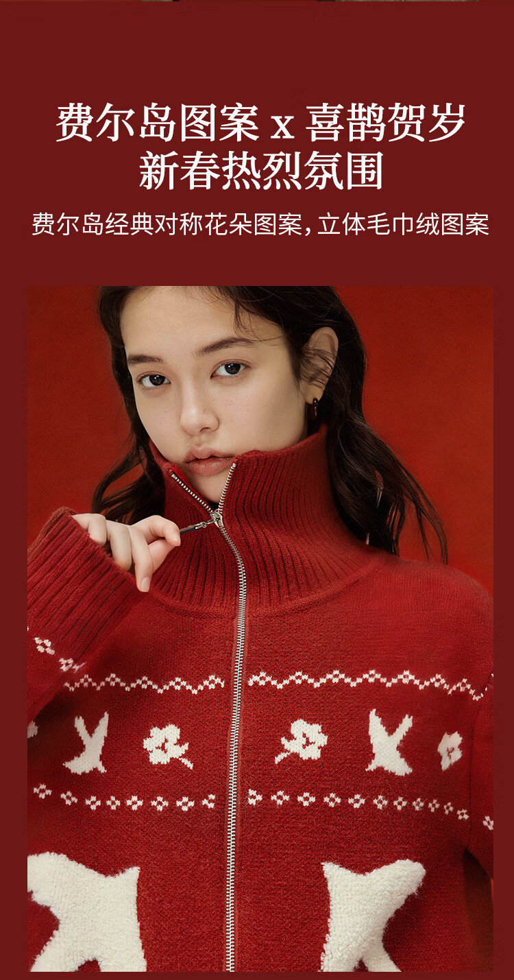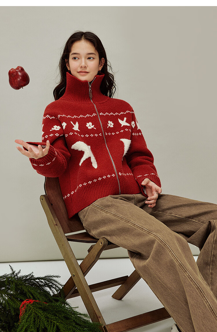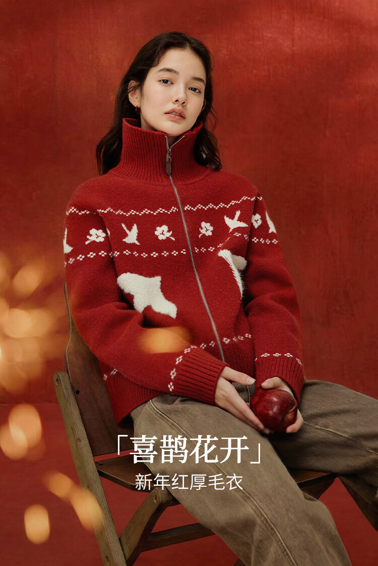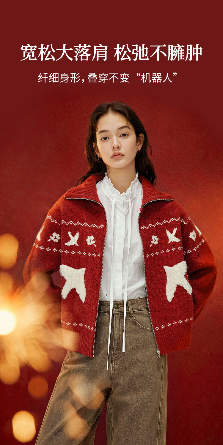 茵曼(INMAN)茵曼绒感提花翻领毛衣2025秋女装新款保暖针织开衫外套 咖色 M