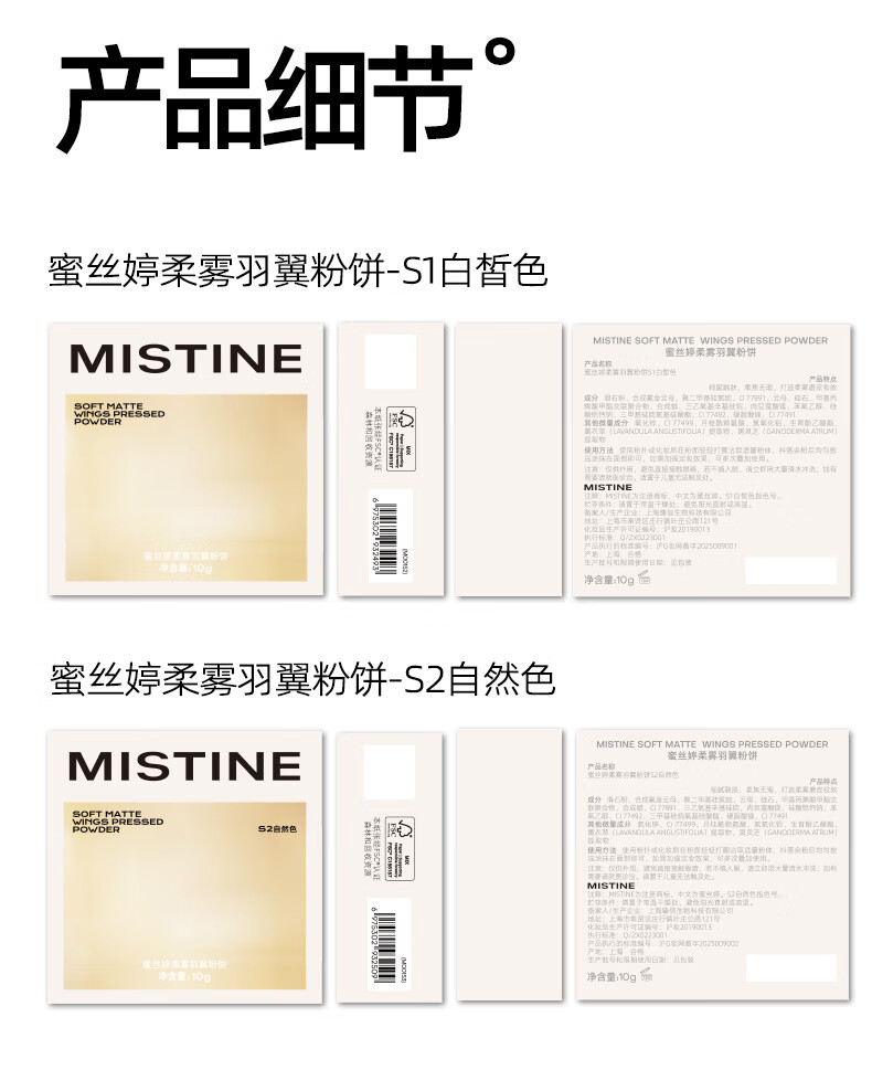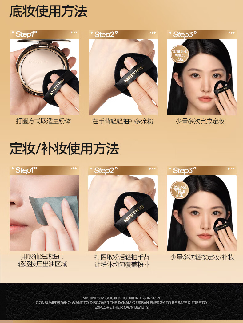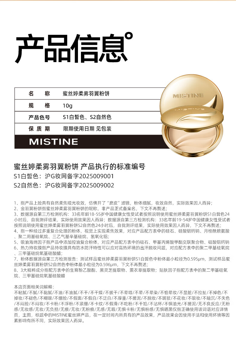 Mistine蜜丝婷金羽翼粉饼S1白皙色持久遮瑕干湿两用生日礼物