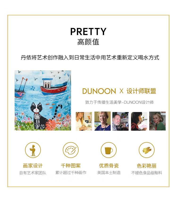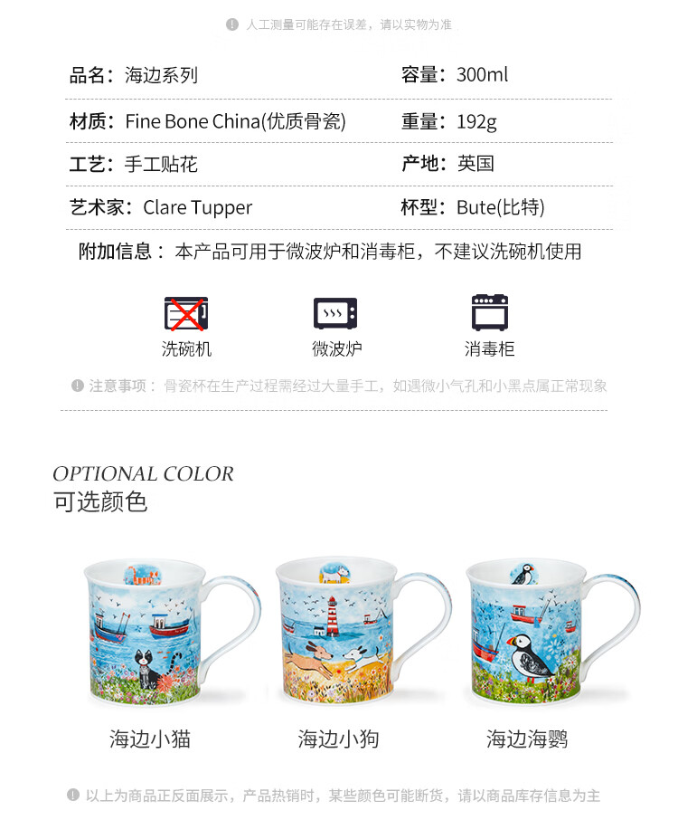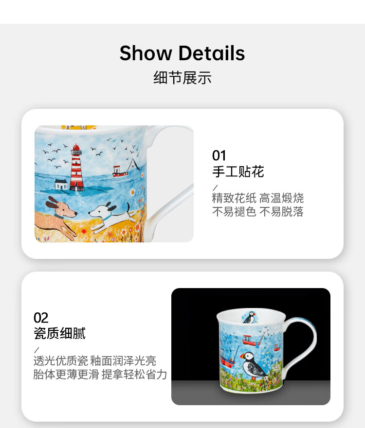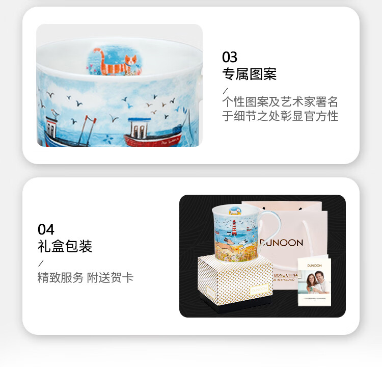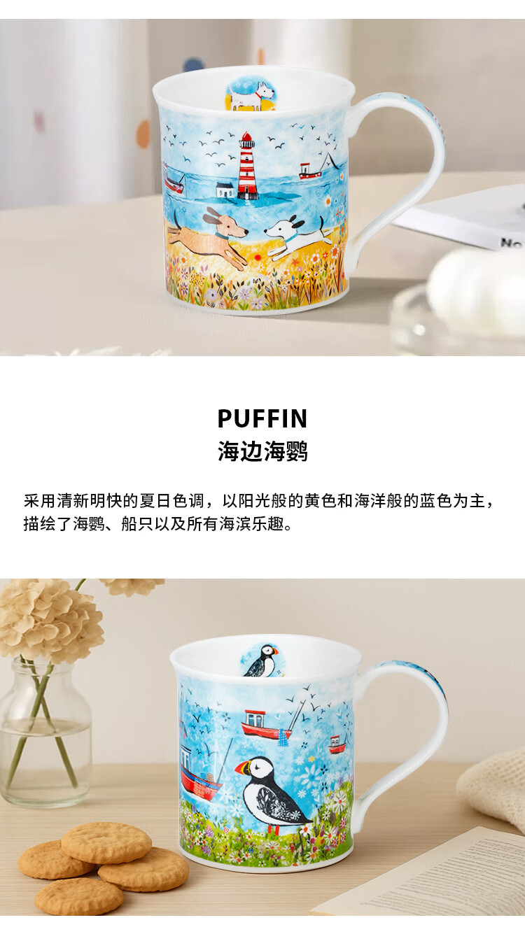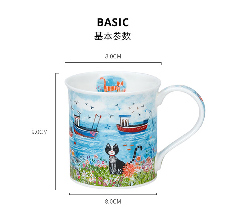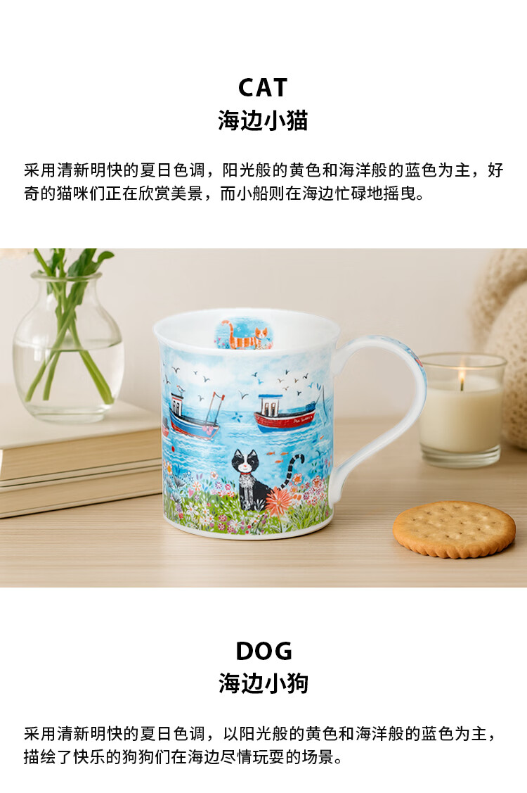 丹侬(DUNOON)骨瓷马克杯海边系列海鹦咖啡杯陶瓷小水杯情侣杯名家设计英伦风 海边小猫 300ml