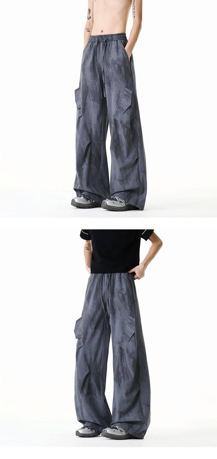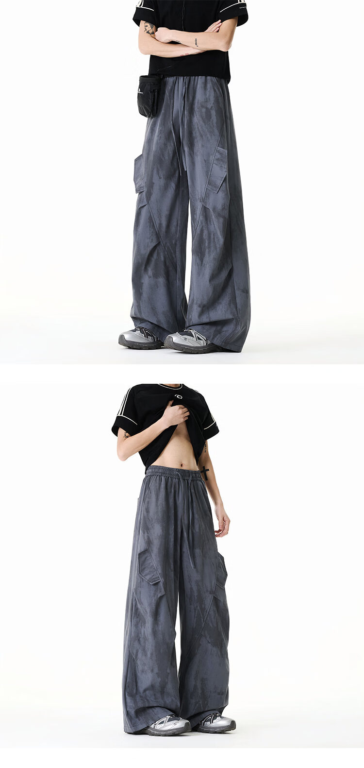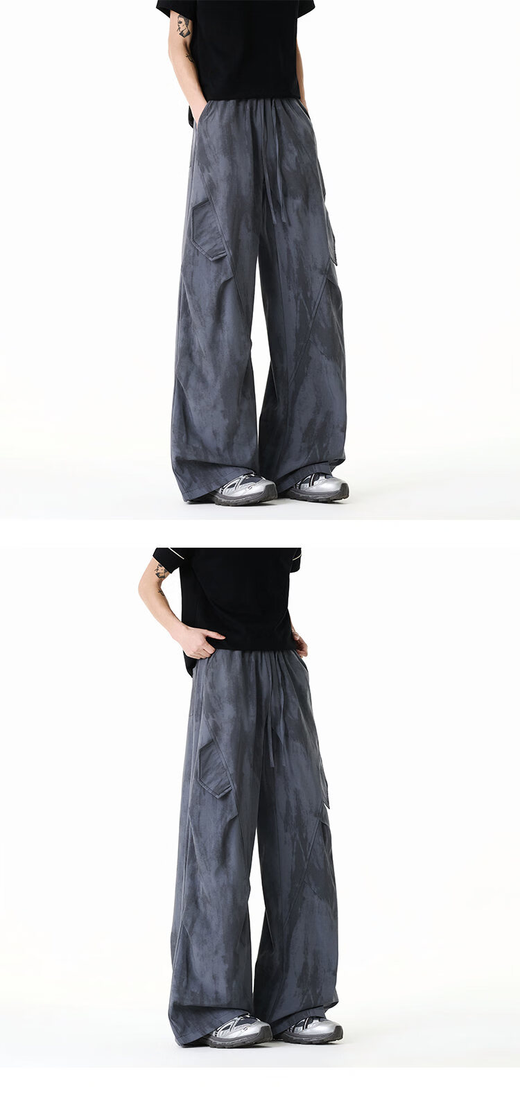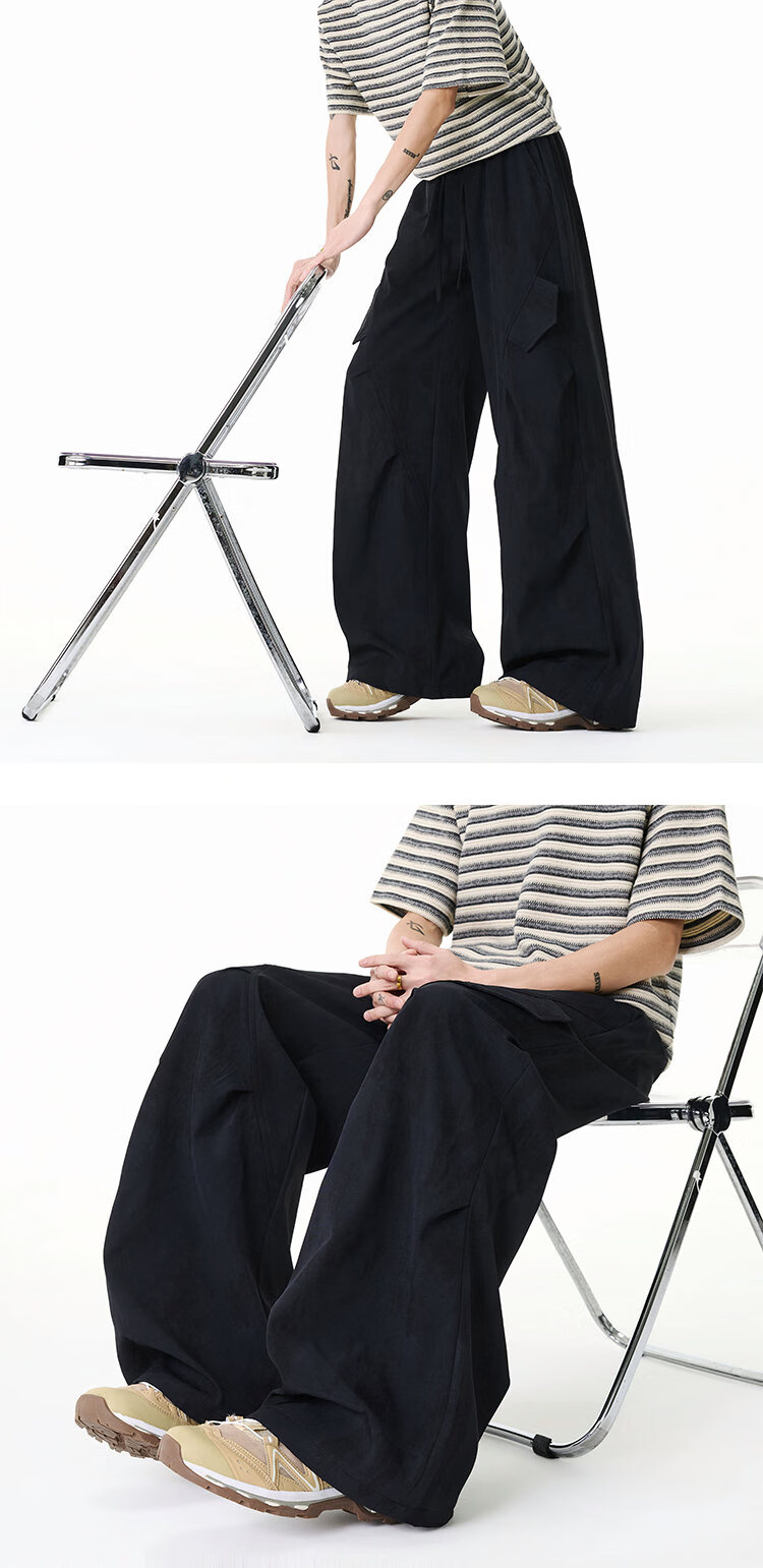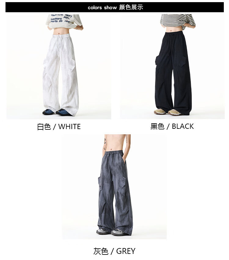 NEW OR MODE美式扎染拼接工装裤子男夏季新款透气宽松垂感运动速干阔腿冰丝裤 黑色【高品质】 M 【建议90-110斤】
