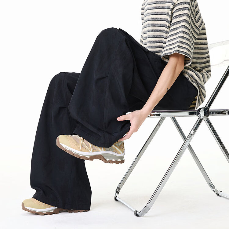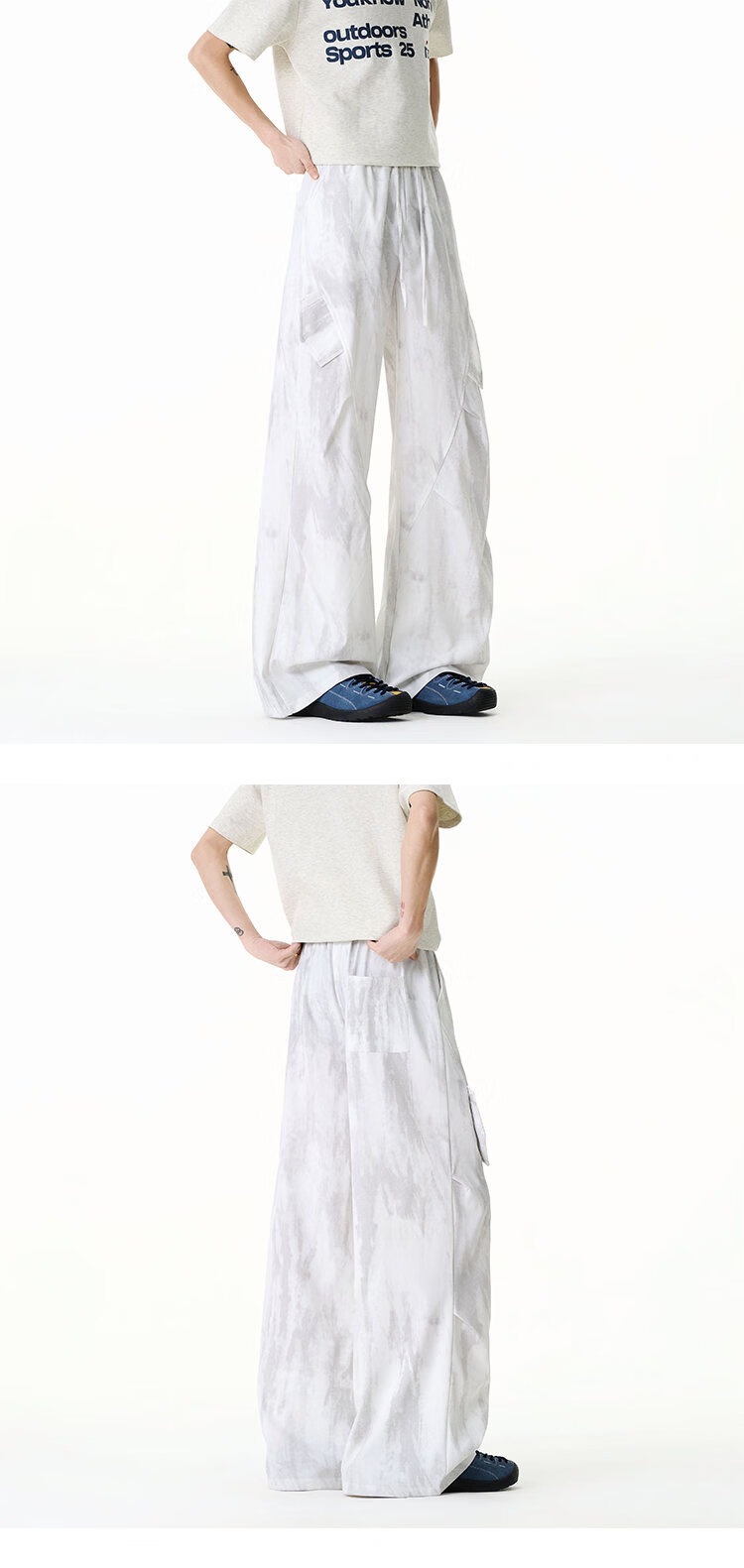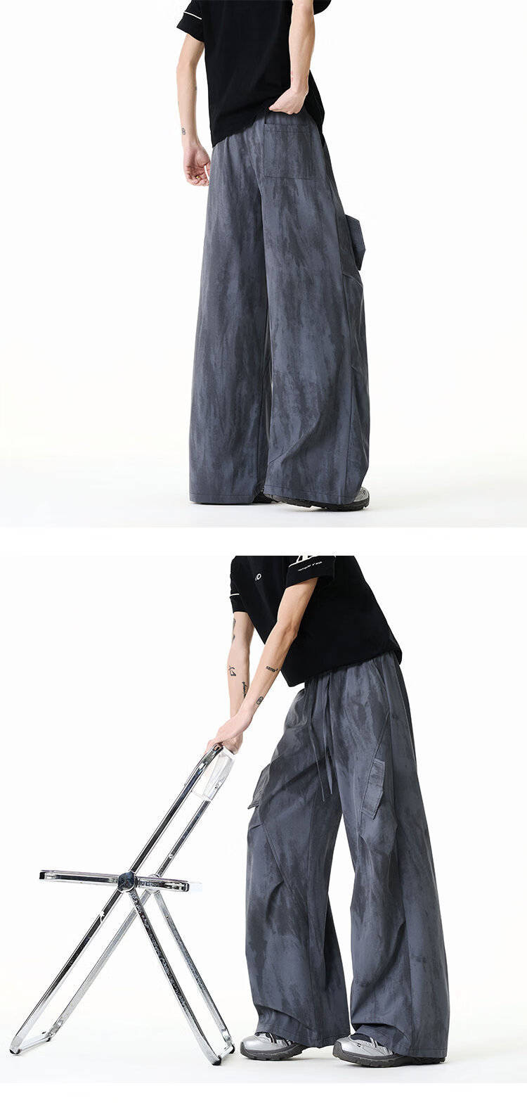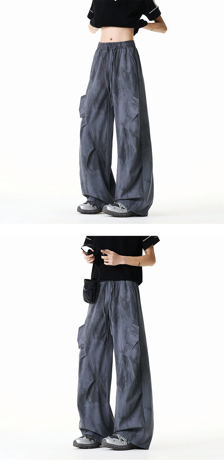 NEW OR MODE美式扎染拼接工装裤子男夏季新款透气宽松垂感运动速干阔腿冰丝裤 黑色【高品质】 M 【建议90-110斤】