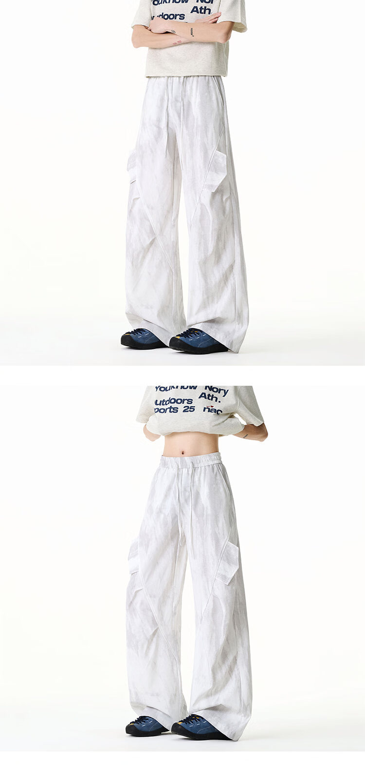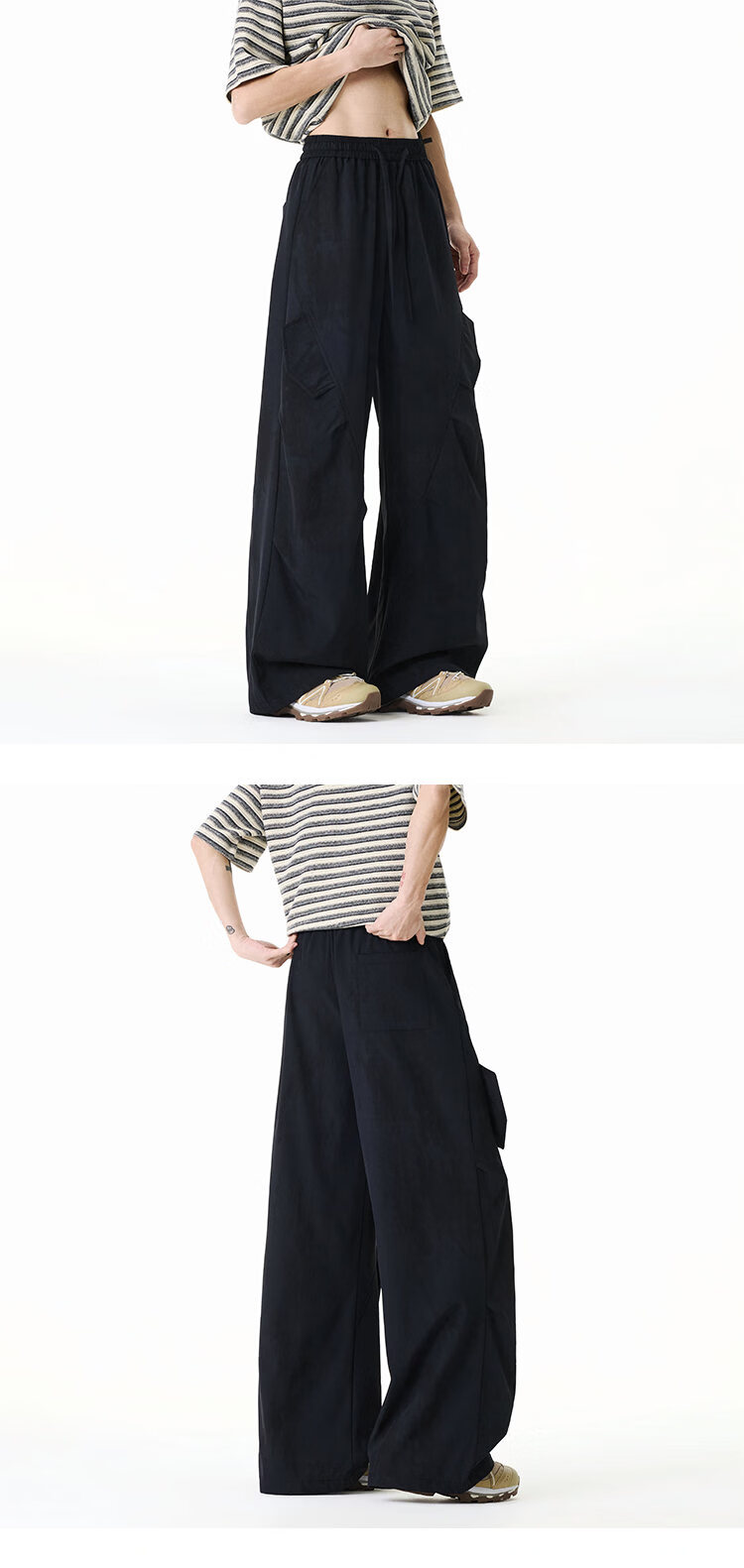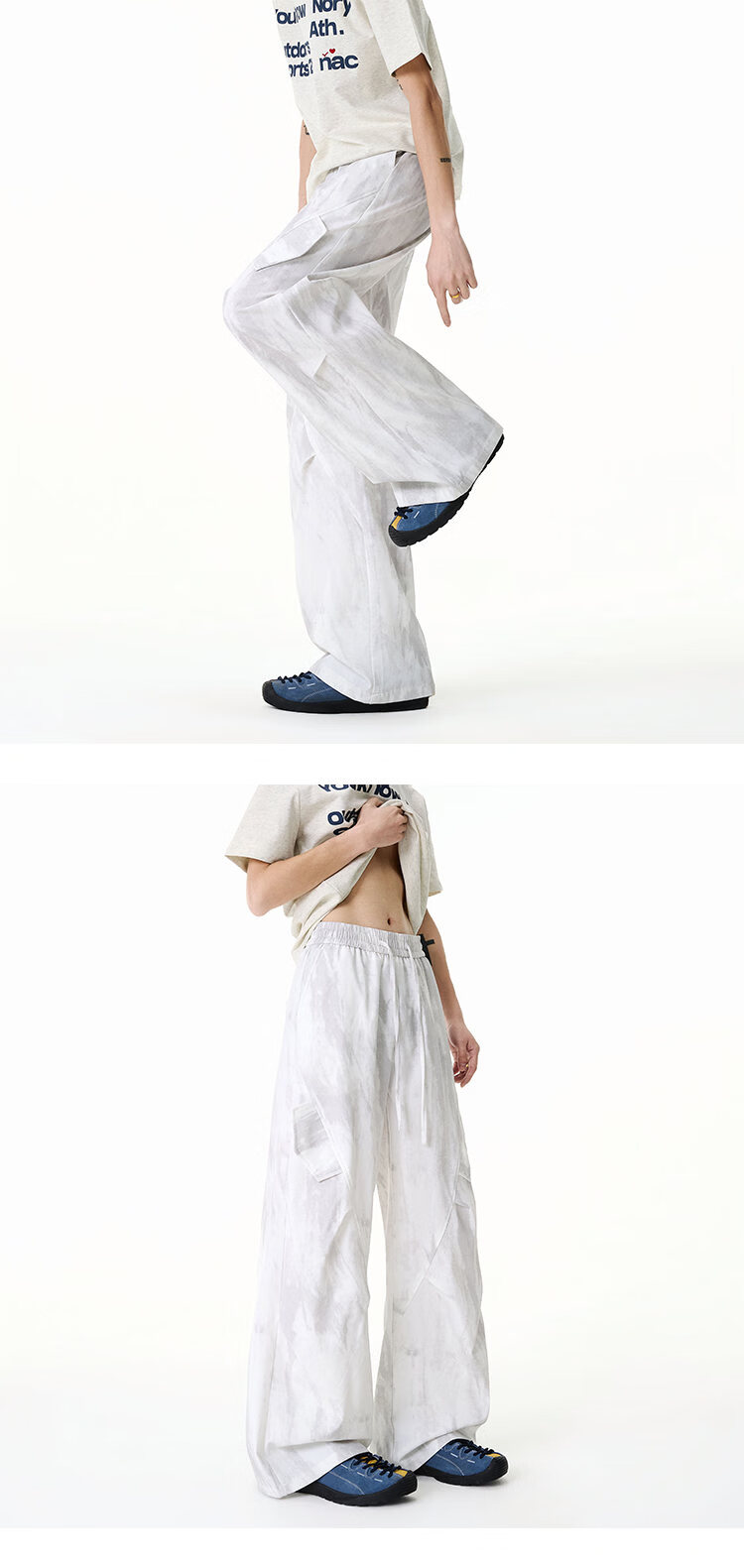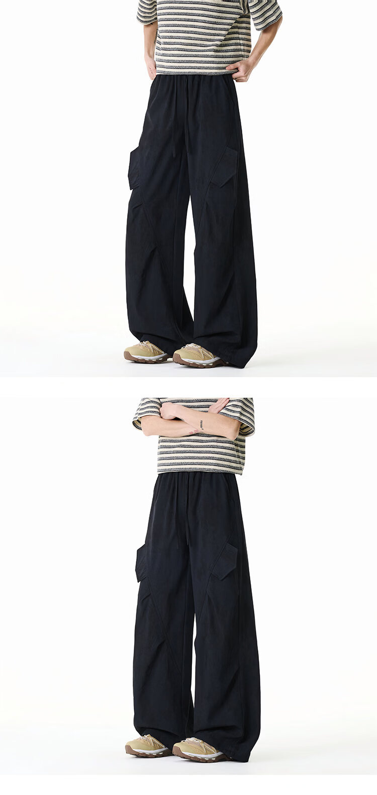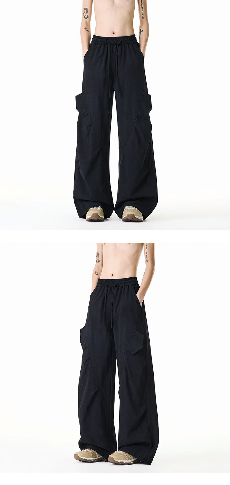 NEW OR MODE美式扎染拼接工装裤子男夏季新款透气宽松垂感运动速干阔腿冰丝裤 黑色【高品质】 M 【建议90-110斤】