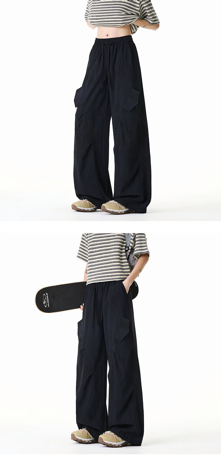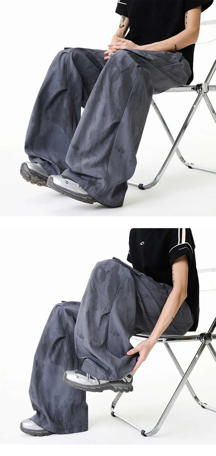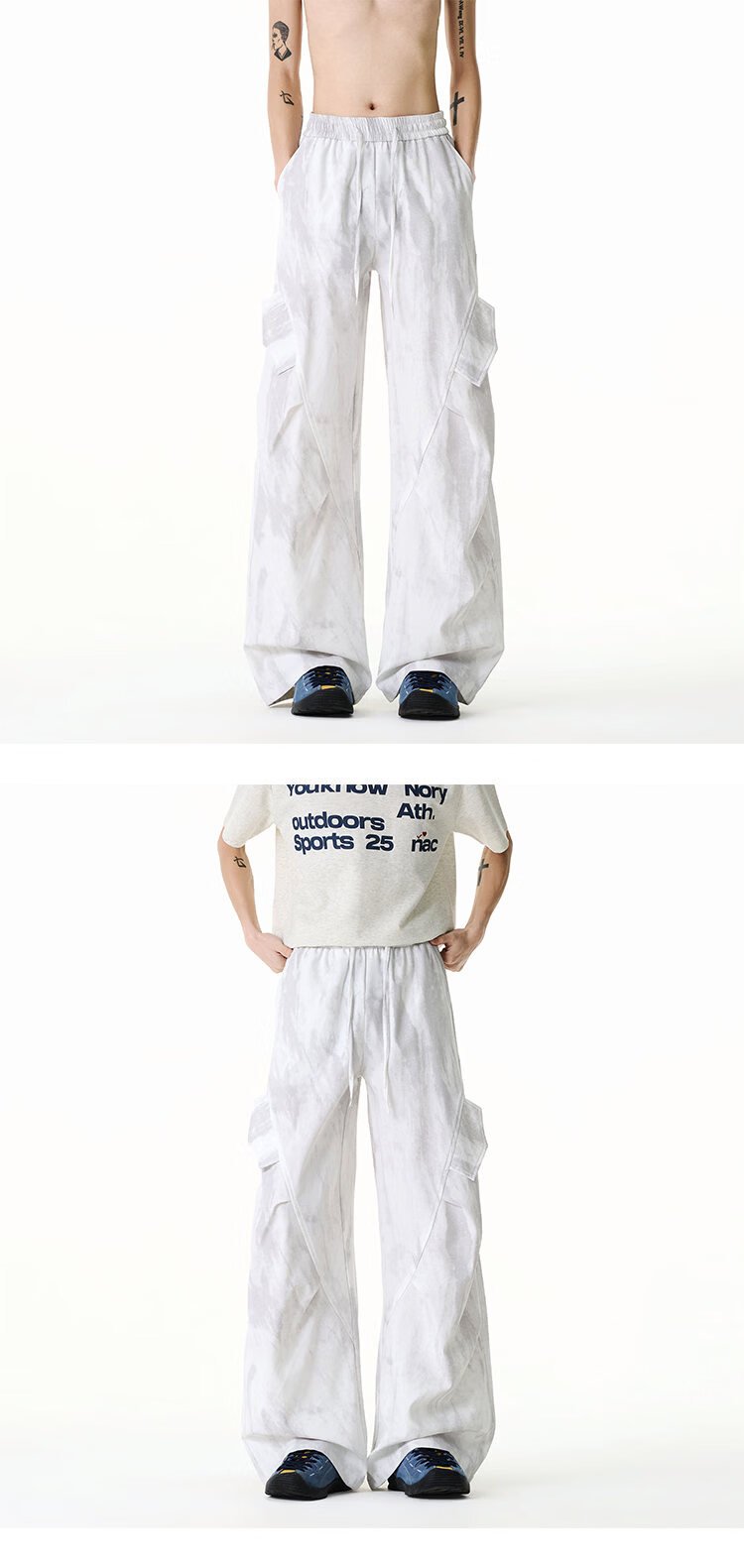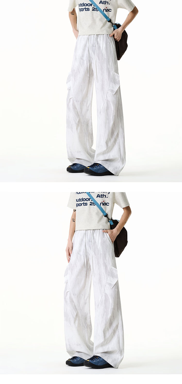 NEW OR MODE美式扎染拼接工装裤子男夏季新款透气宽松垂感运动速干阔腿冰丝裤 黑色【高品质】 M 【建议90-110斤】