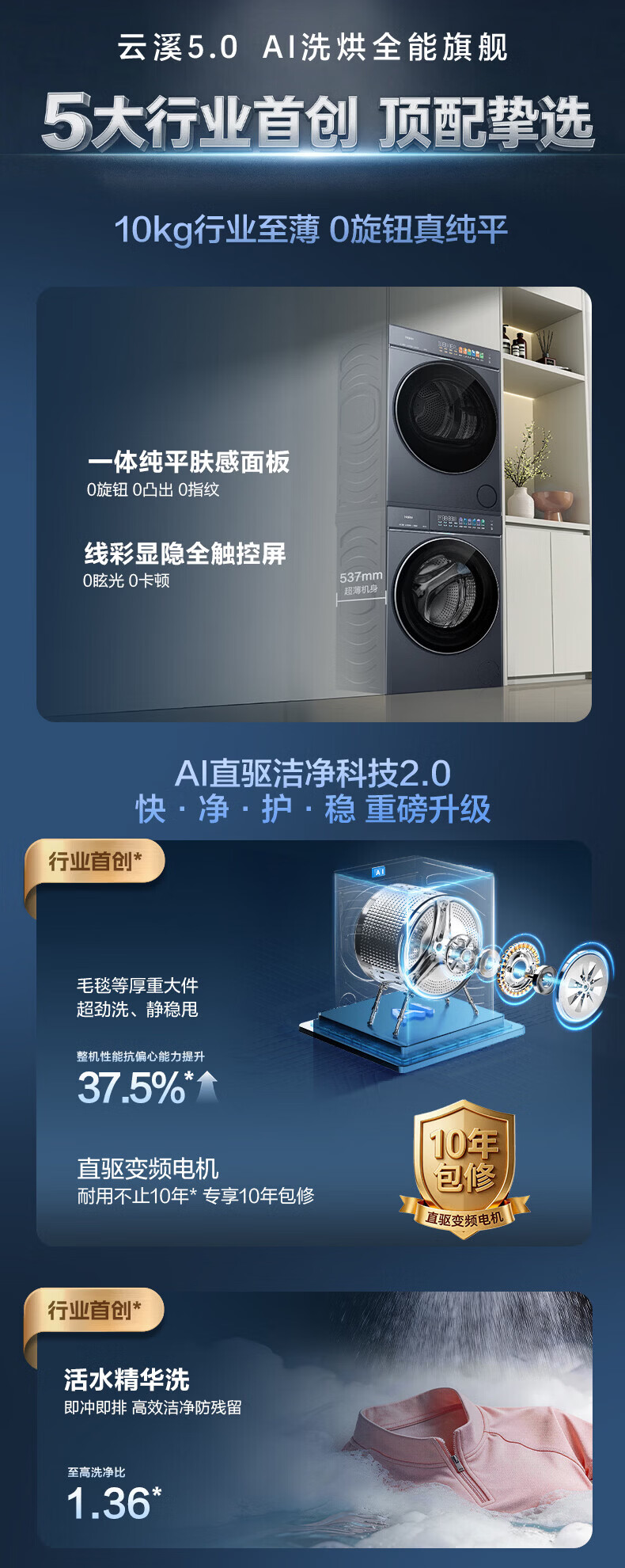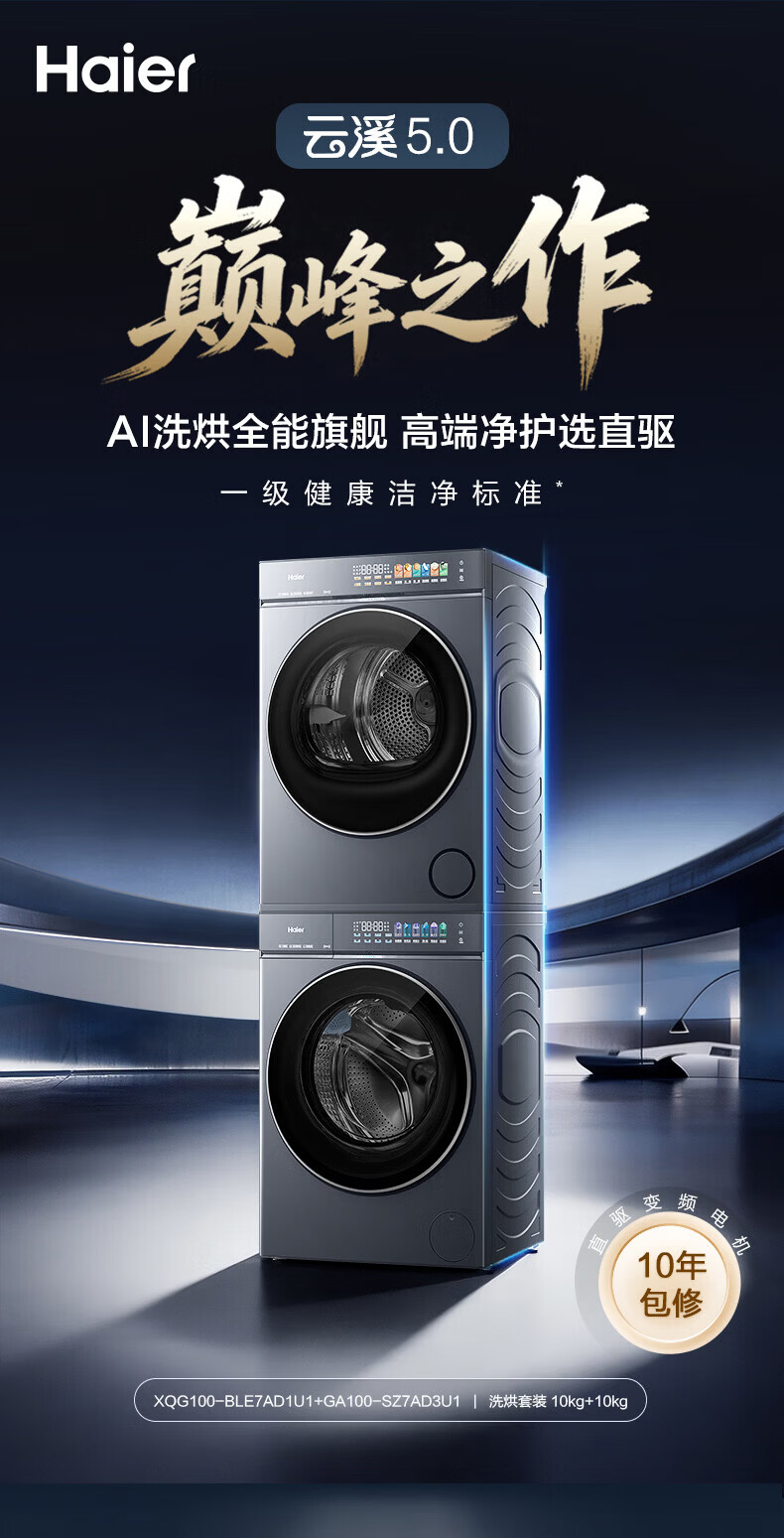 海尔(Haier)云溪5.0滚筒10KG洗烘套装 高洗净比全自动滚筒洗衣机+双擎热泵烘干机AI直驱 AWE同款 D1 换新补贴