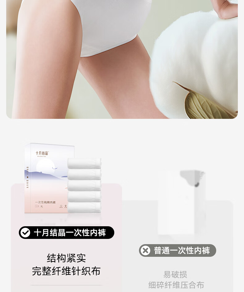 十月结晶一次性内裤女出差旅行孕产妇免洗纯棉内裤15条L码【安全灭菌】