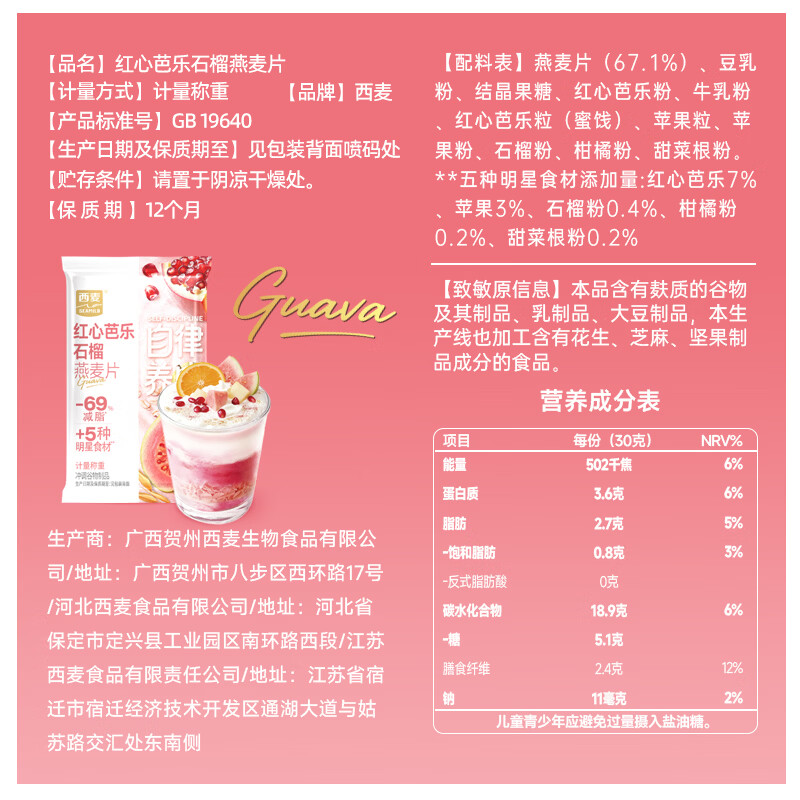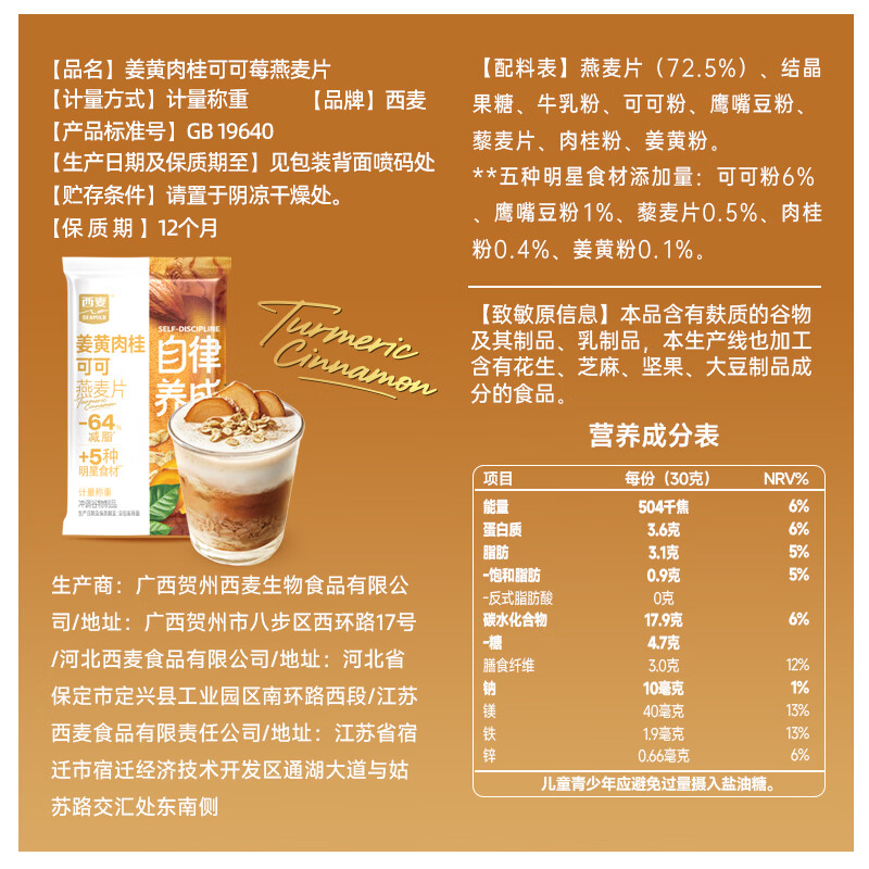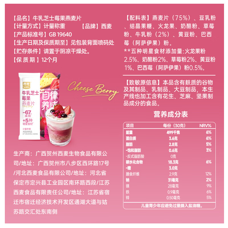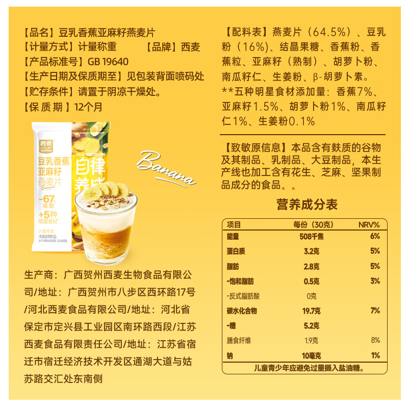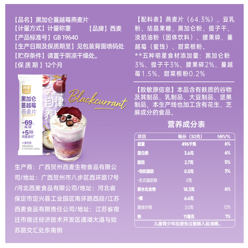 西麦羽衣甘蓝奇亚籽燕麦片独立小包装即食代餐膳食纤维早餐速食冲泡 自律养成混合口味12包共360g