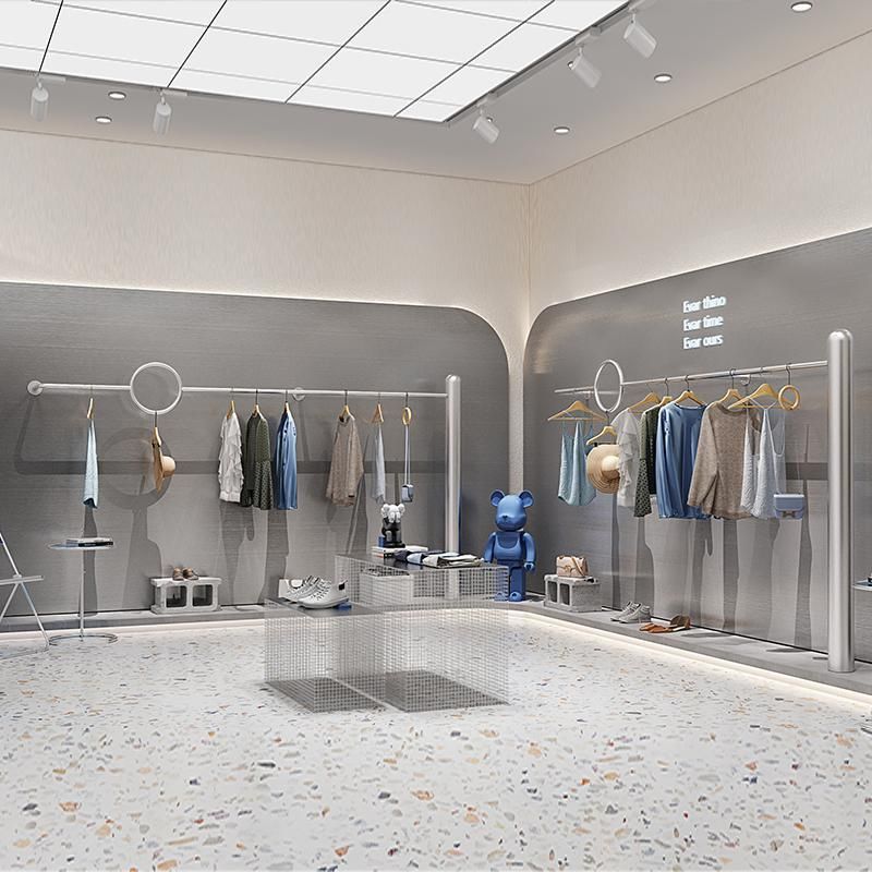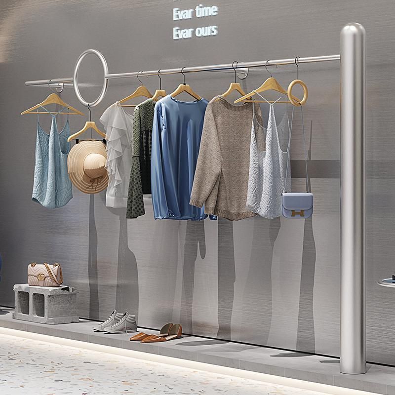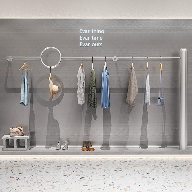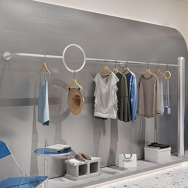 不锈钢拉丝服装架挂墙女装男装落地式上墙挂衣架架服装服饰美式