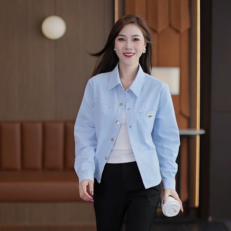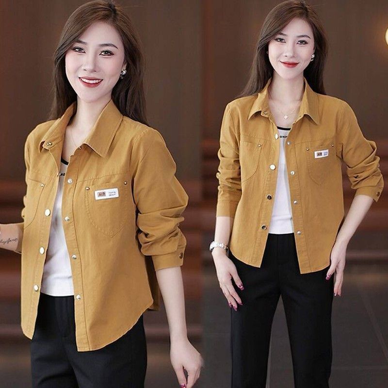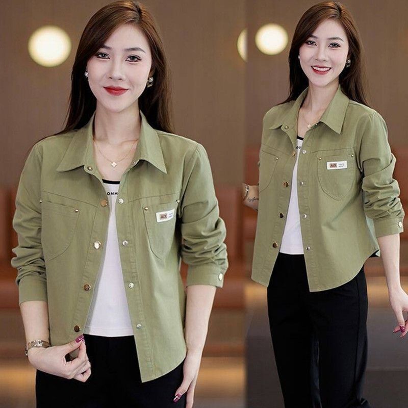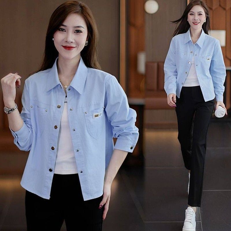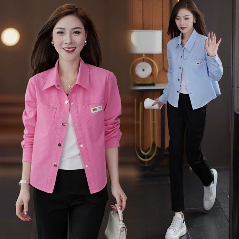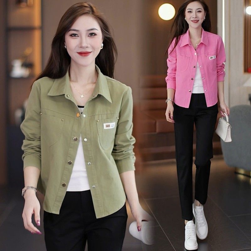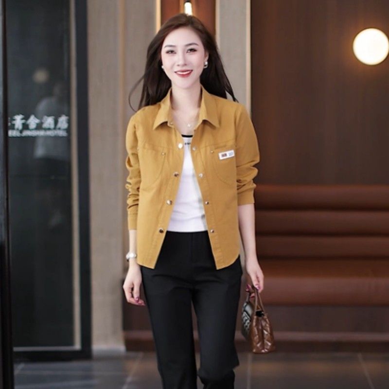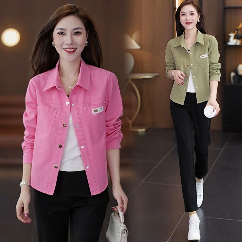 休闲衬衫外套短款妈妈春秋外套新款小个子时尚洋气宽松衬衣上衣女