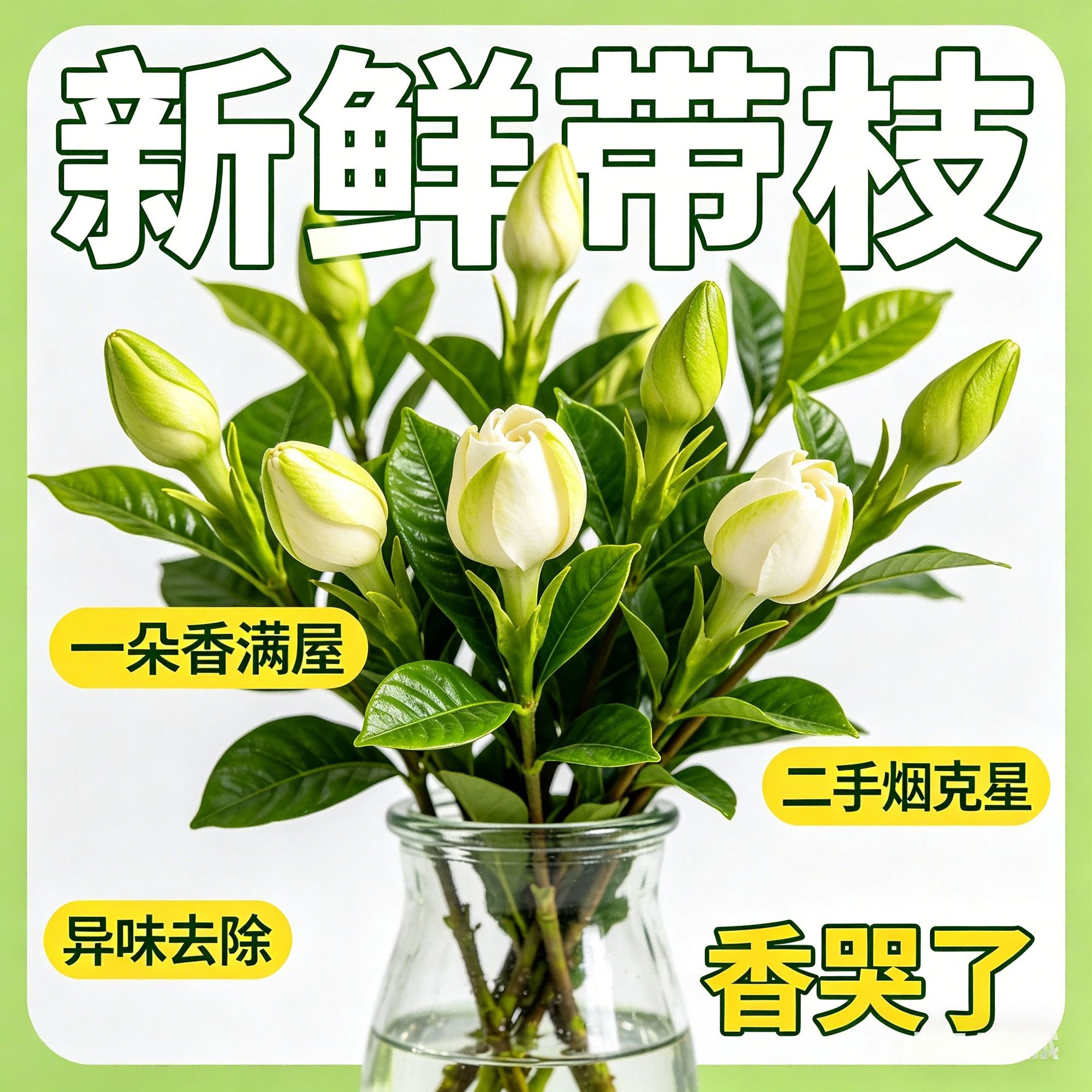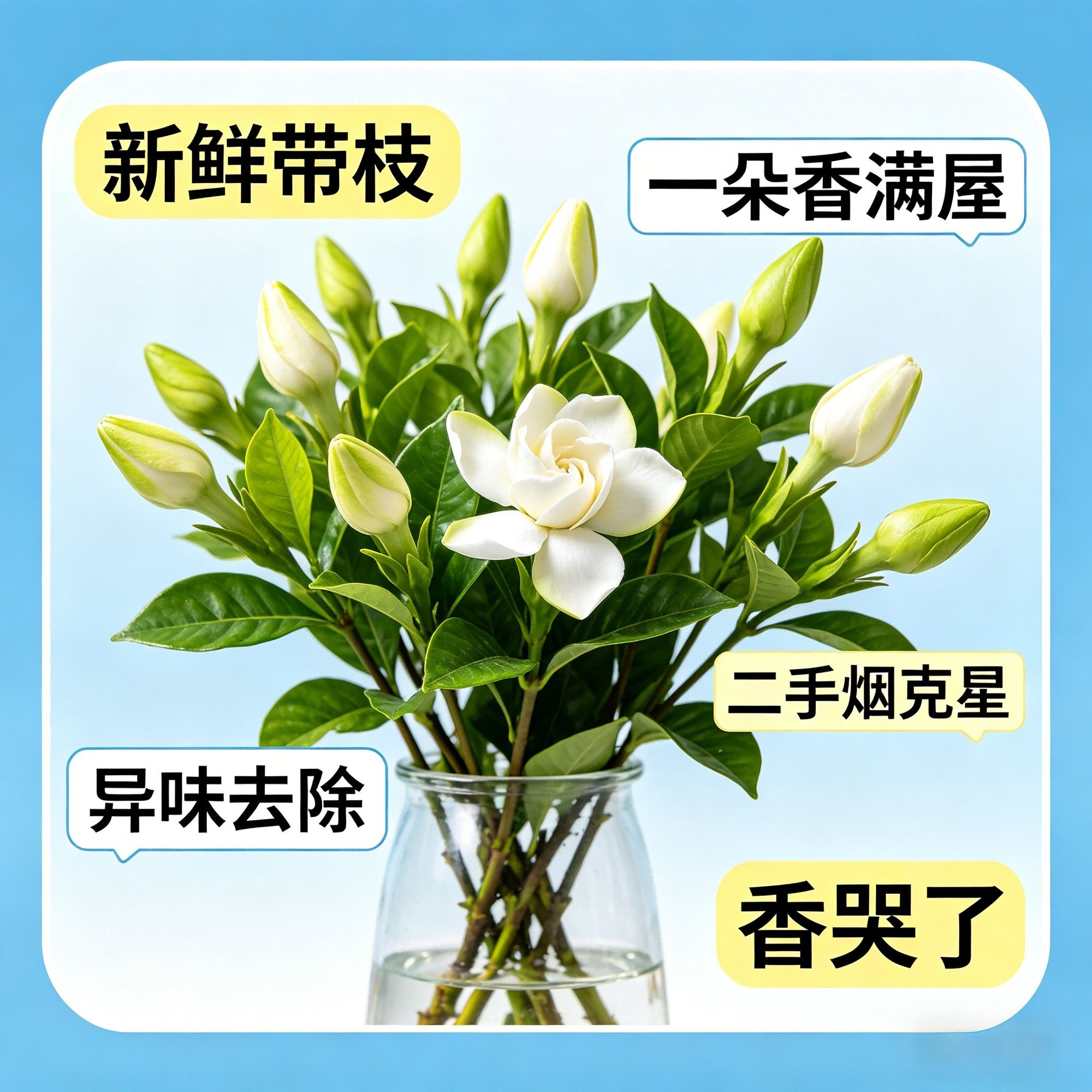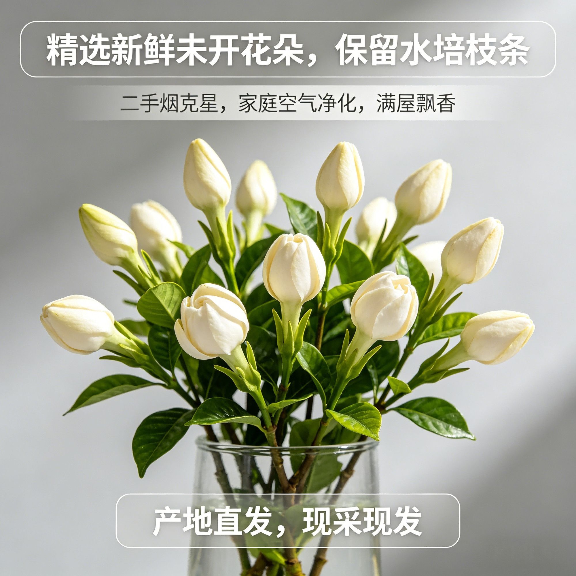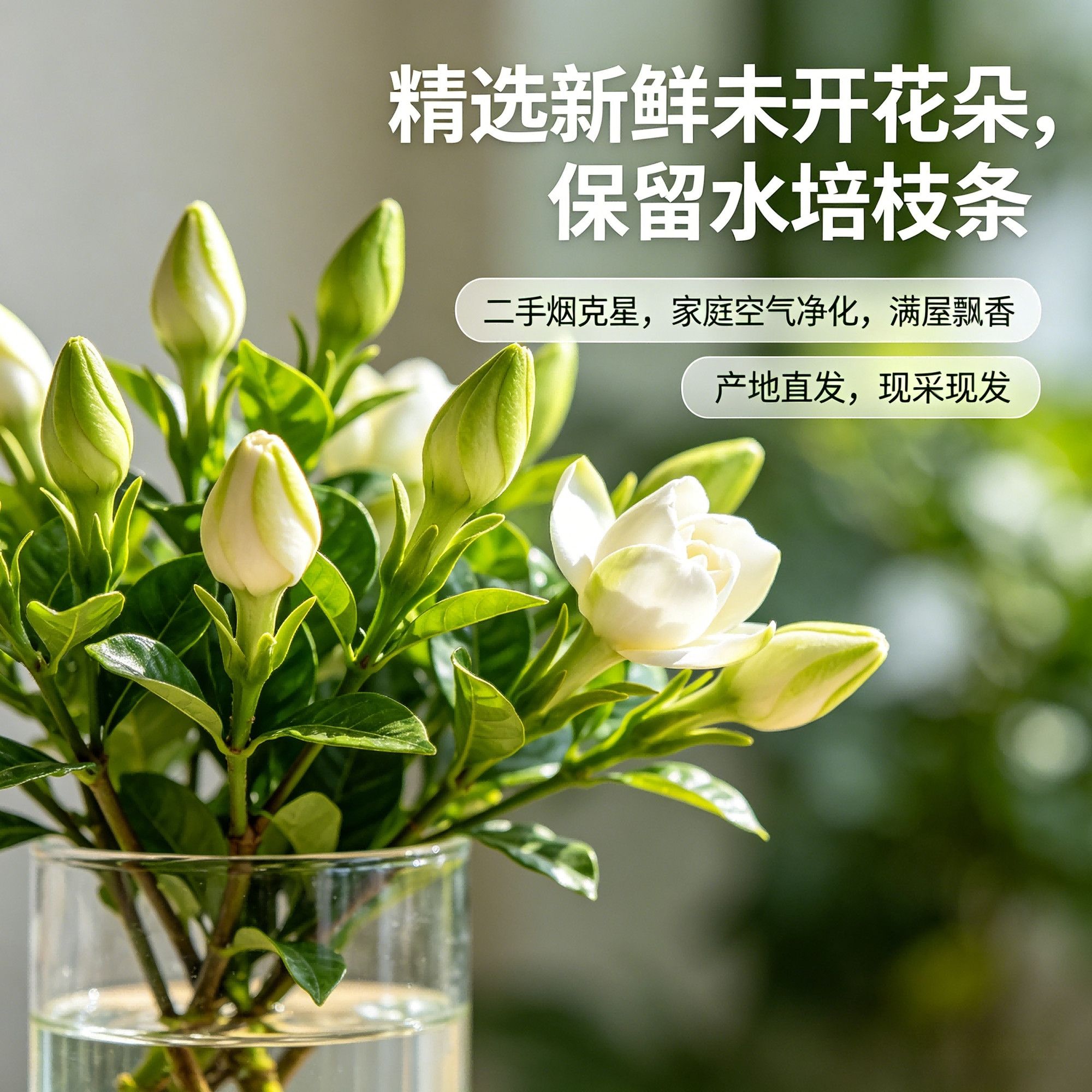 鲜切】四川栀子花基地水培带枝新鲜花朵治愈香味除甲醛未开花谷朵