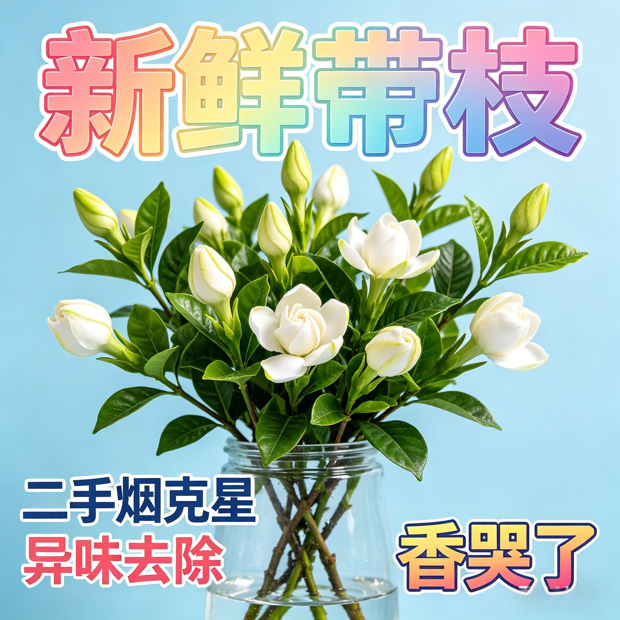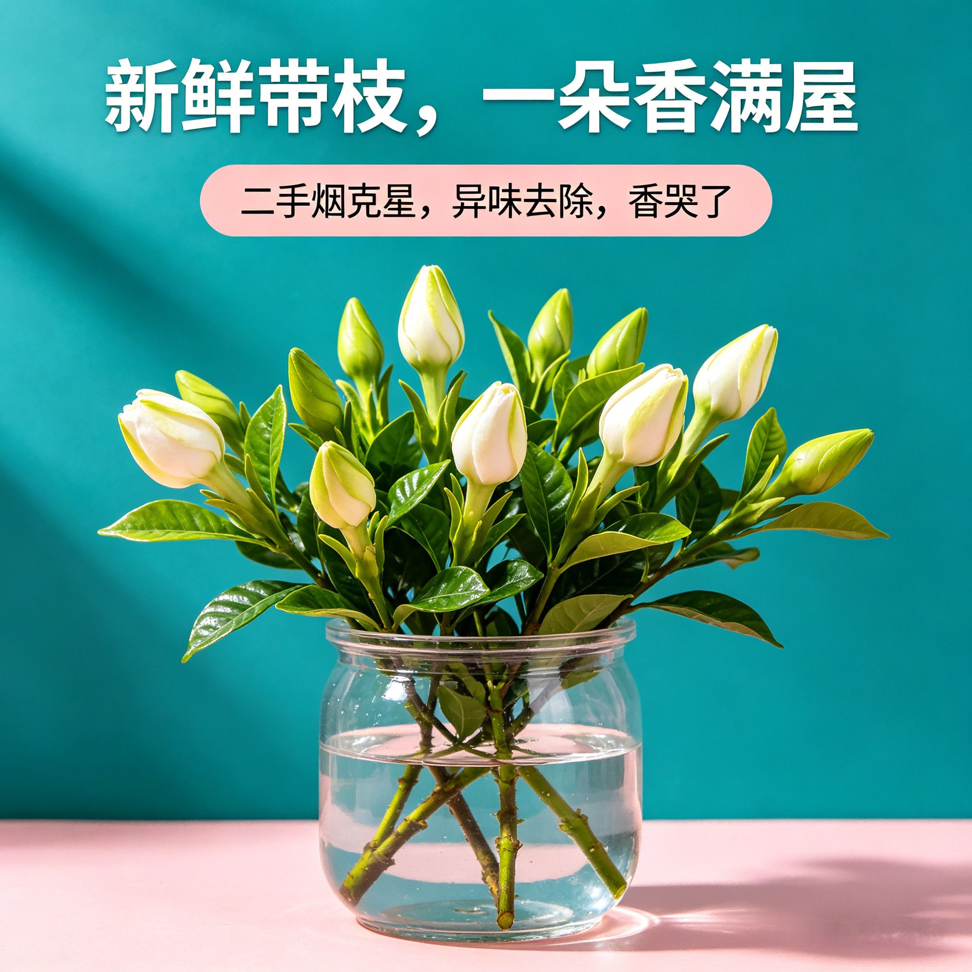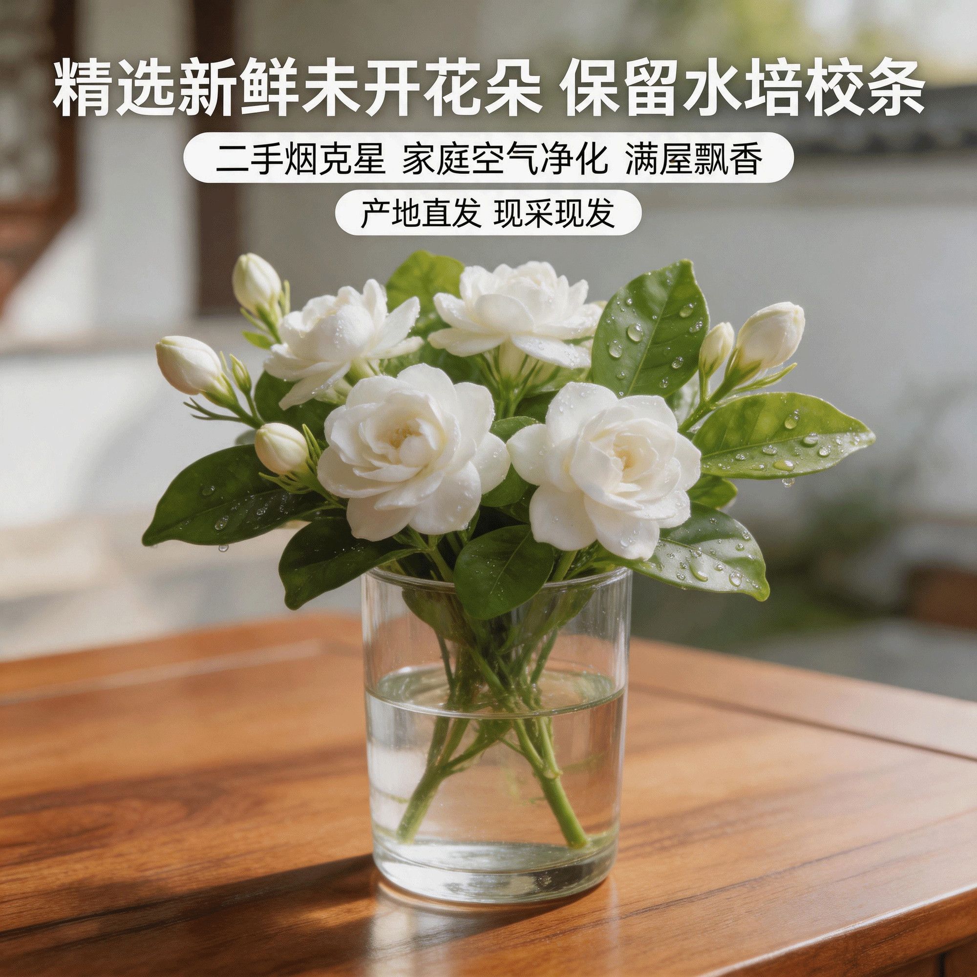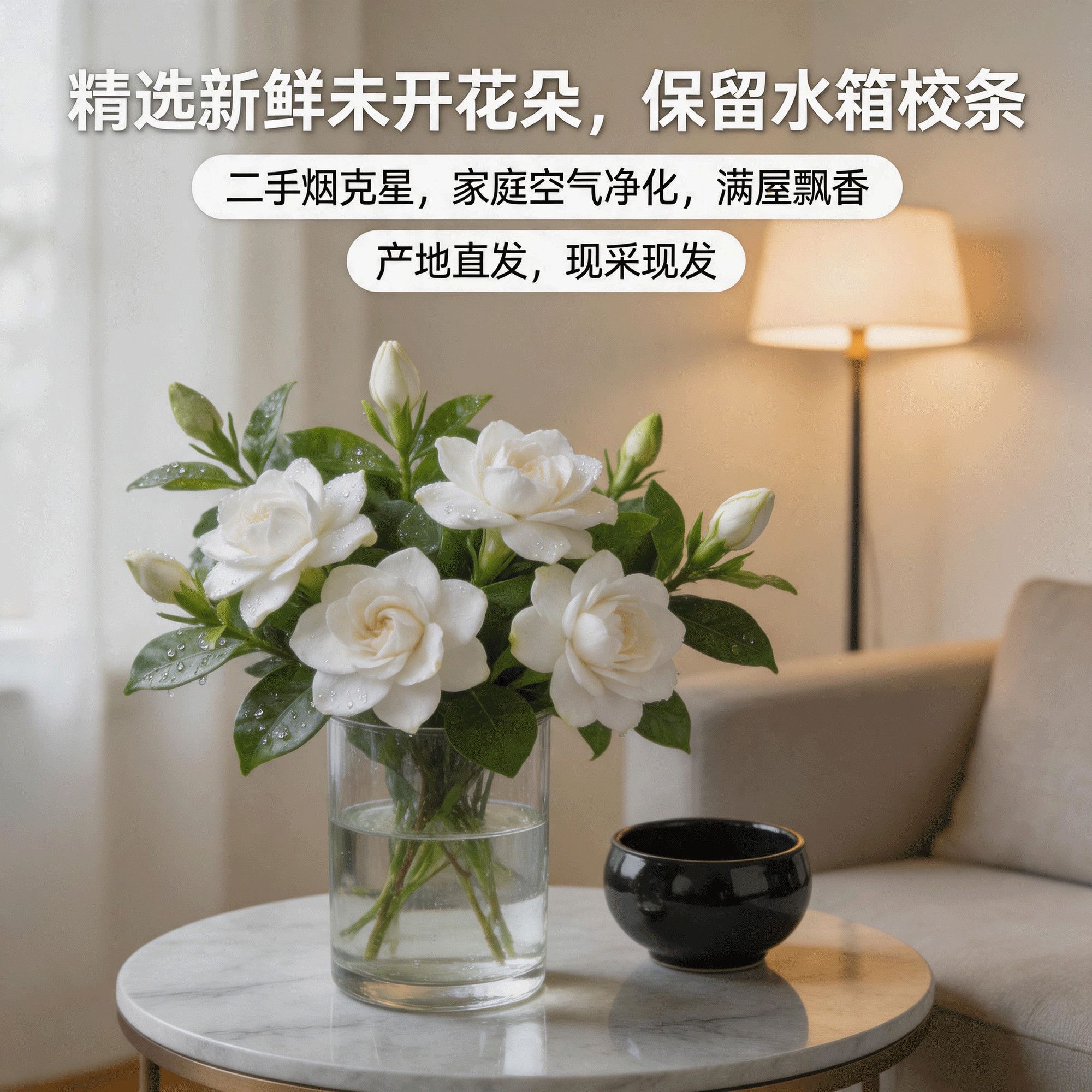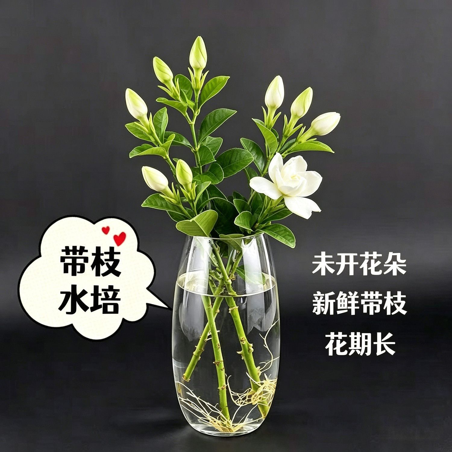 鲜切】四川栀子花基地水培带枝新鲜花朵治愈香味除甲醛未开花谷朵