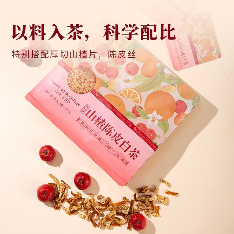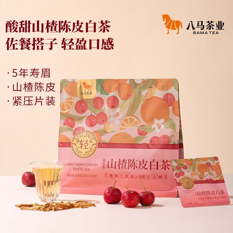 八马山楂陈皮白茶养生茶福鼎白茶寿眉果香味居家办养生茶公63g/袋