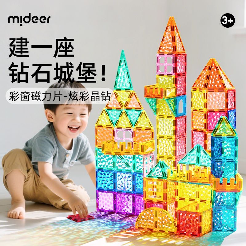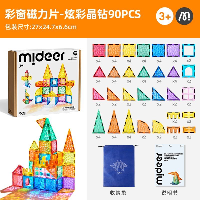 Mideer/弥鹿炫彩晶钻彩窗磁力片宝宝磁力拼图玩具磁性拼图3岁以上