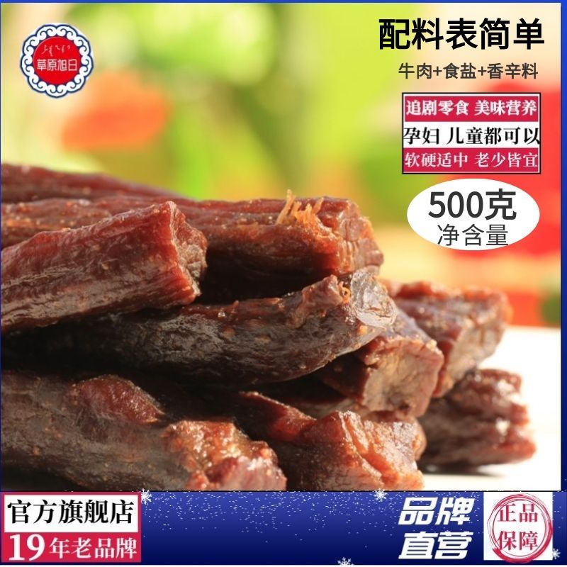 草原旭日牛肉干500g净含量即食休闲食品内蒙古手撕风干正宗牛肉干