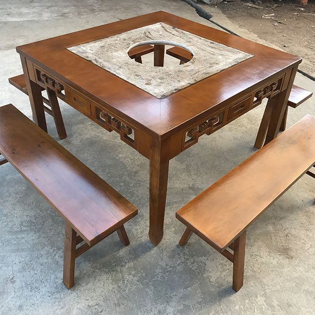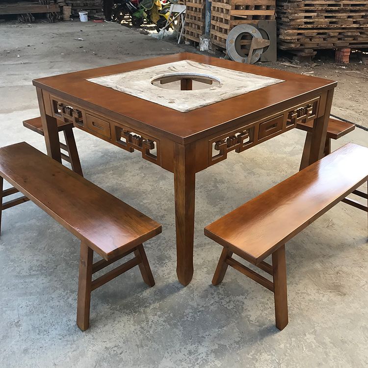 大理石火锅桌四方方形火锅店专用桌椅组合两用无烟电磁炉一体中式
