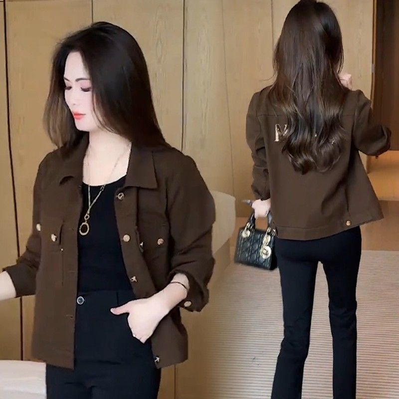 时尚短款外套女2025秋季新款宽松显瘦小个子休闲外套夹克百搭薄款