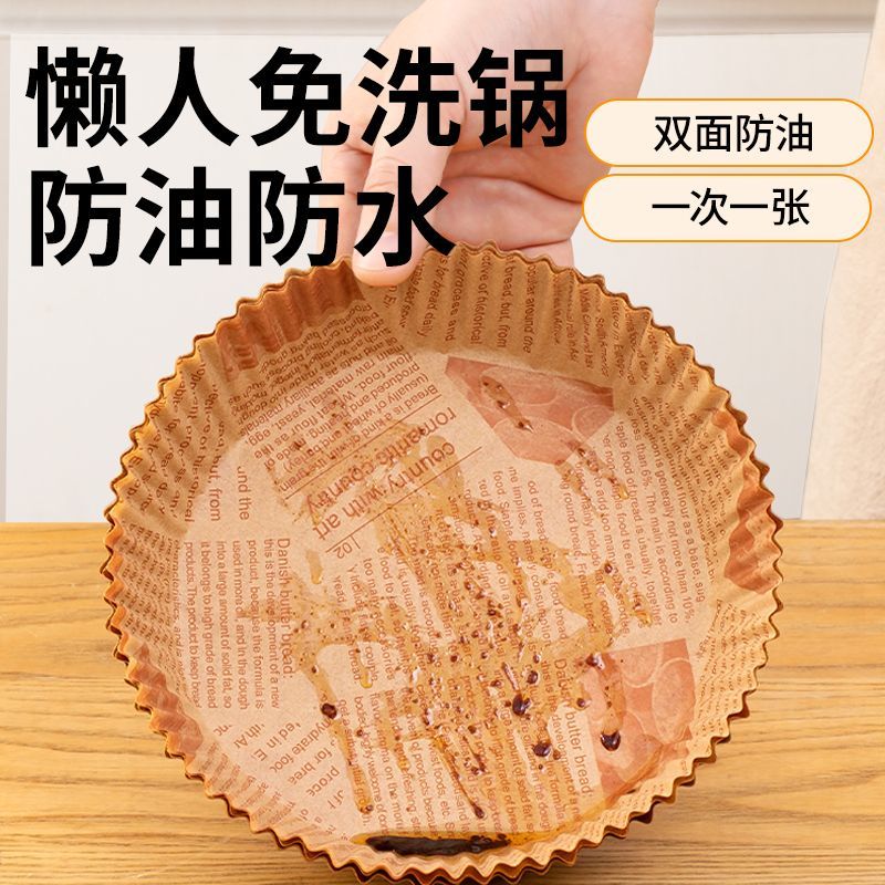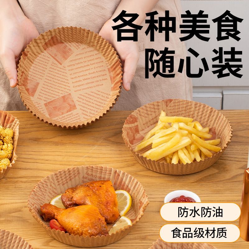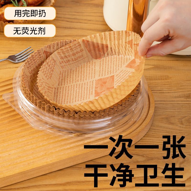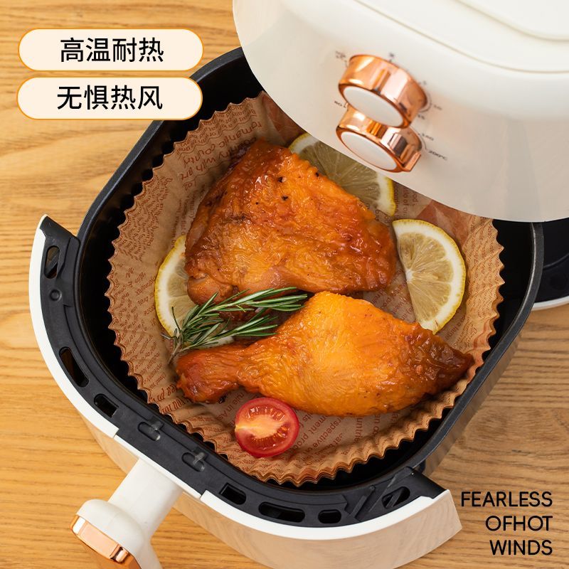 美式印刷圆形空气炸锅纸家用耐高温吸油纸垫食品级不粘烤箱烘焙纸