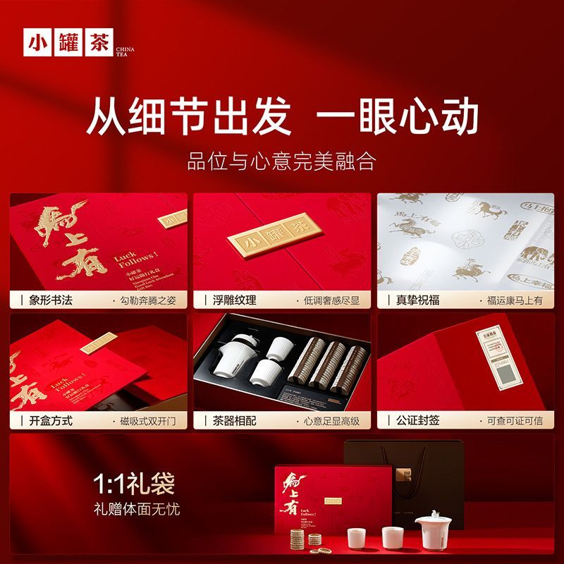 小罐茶马上有普洱熟茶大红袍寿眉264g马年茶叶礼盒办公室普洱茶