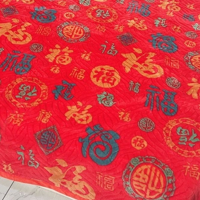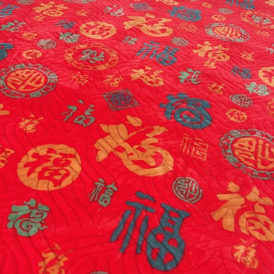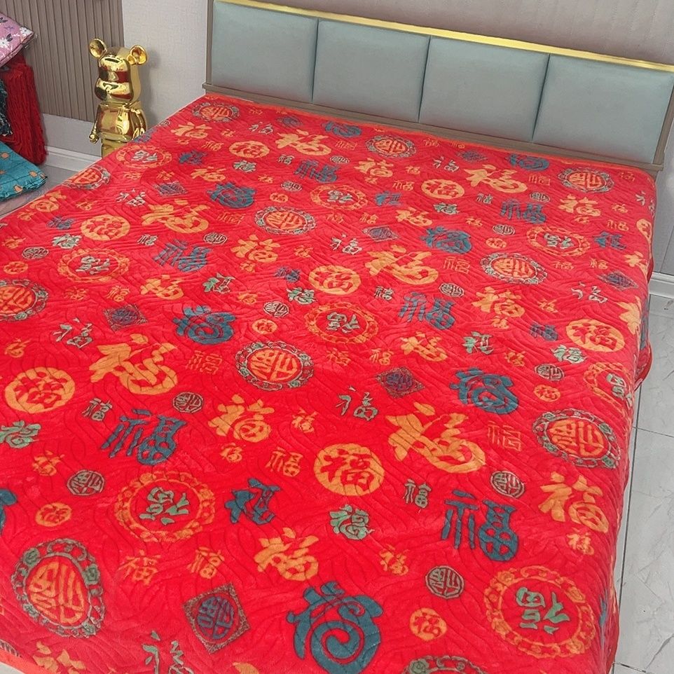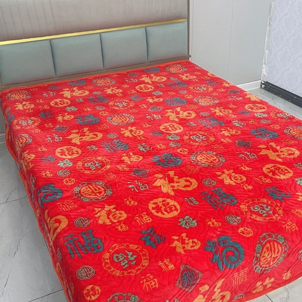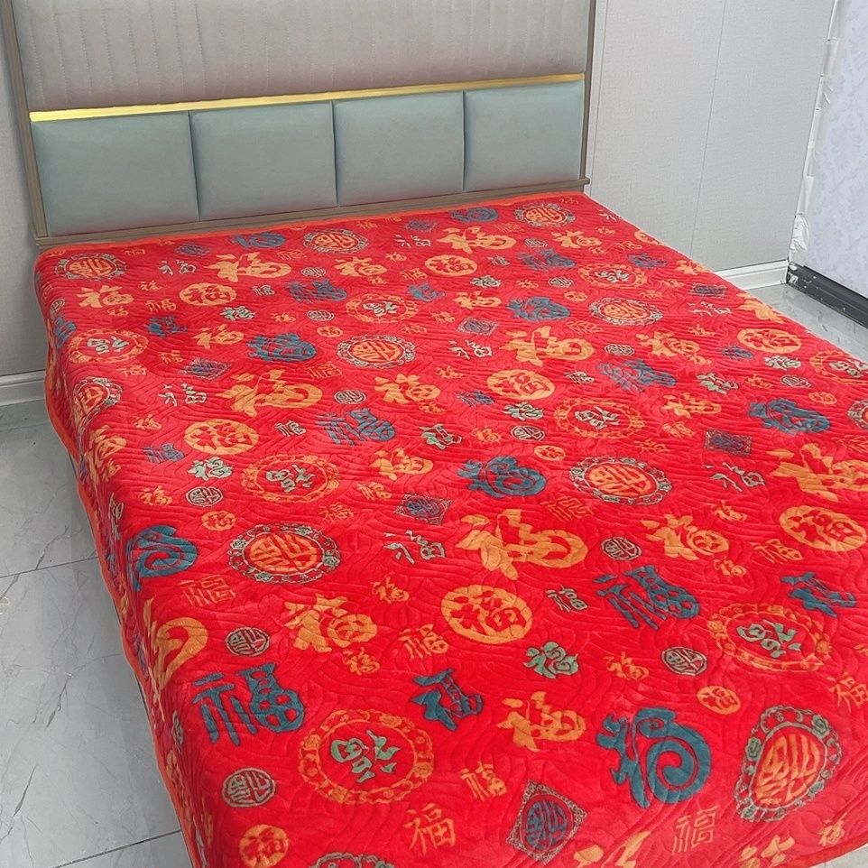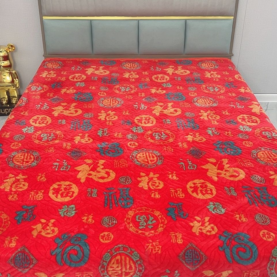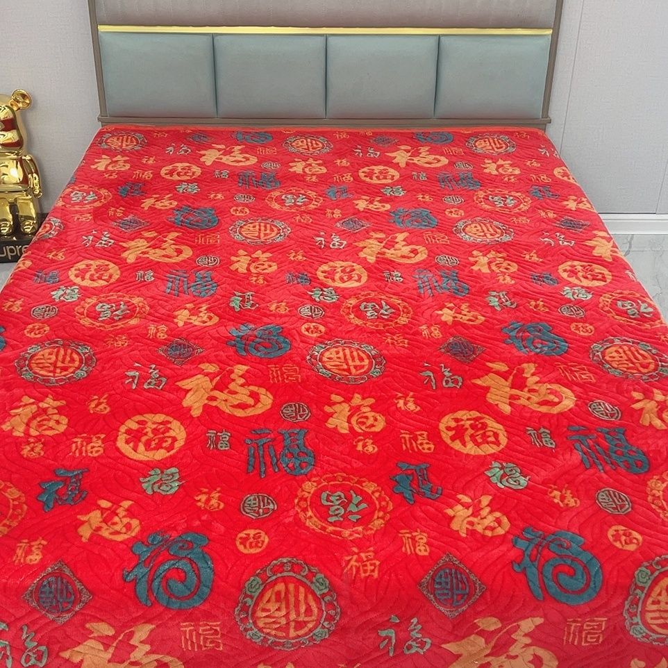百福加厚牛奶床盖保暖加绒冬季可机榻榻米夹棉新年福字新款炕盖