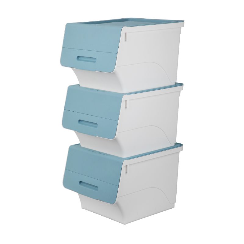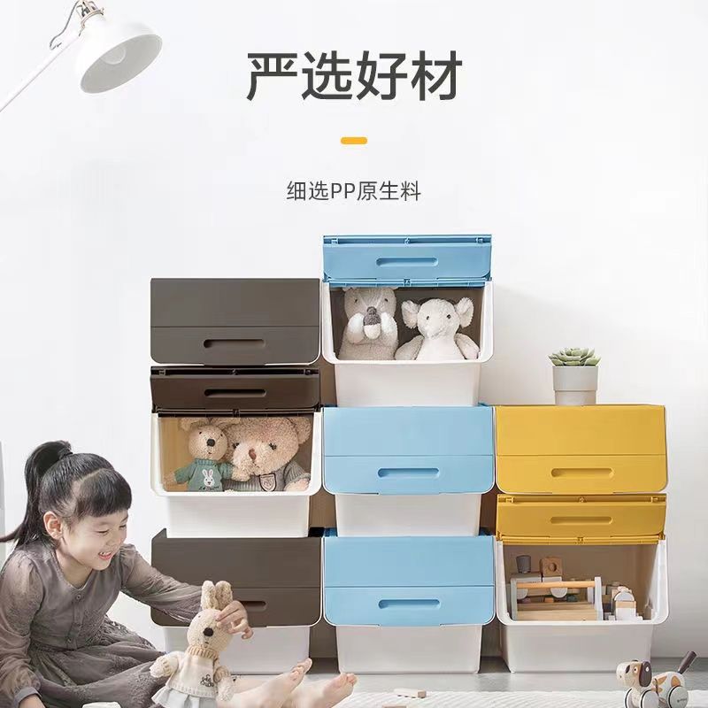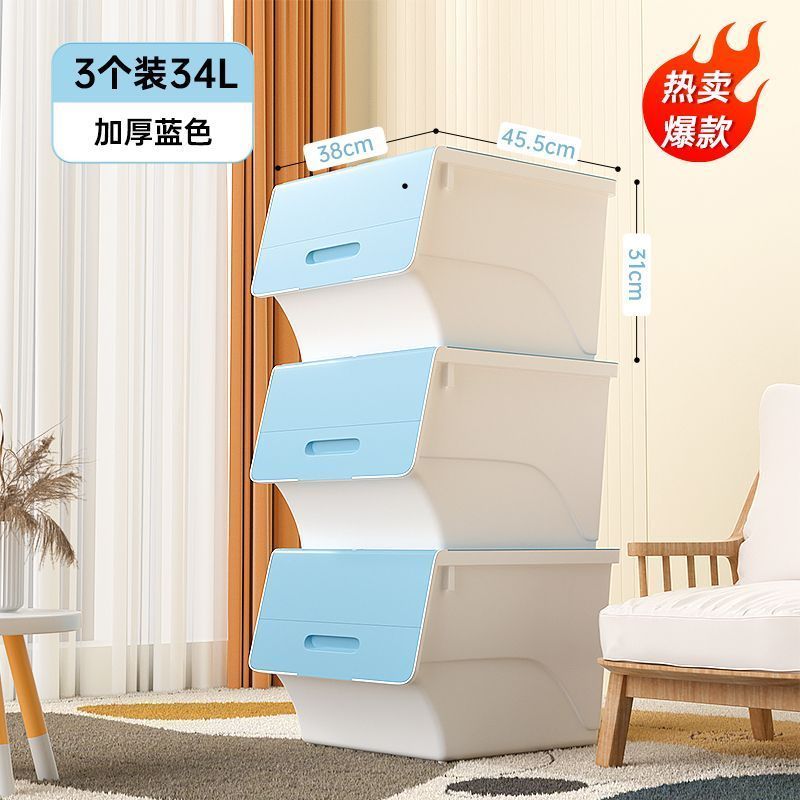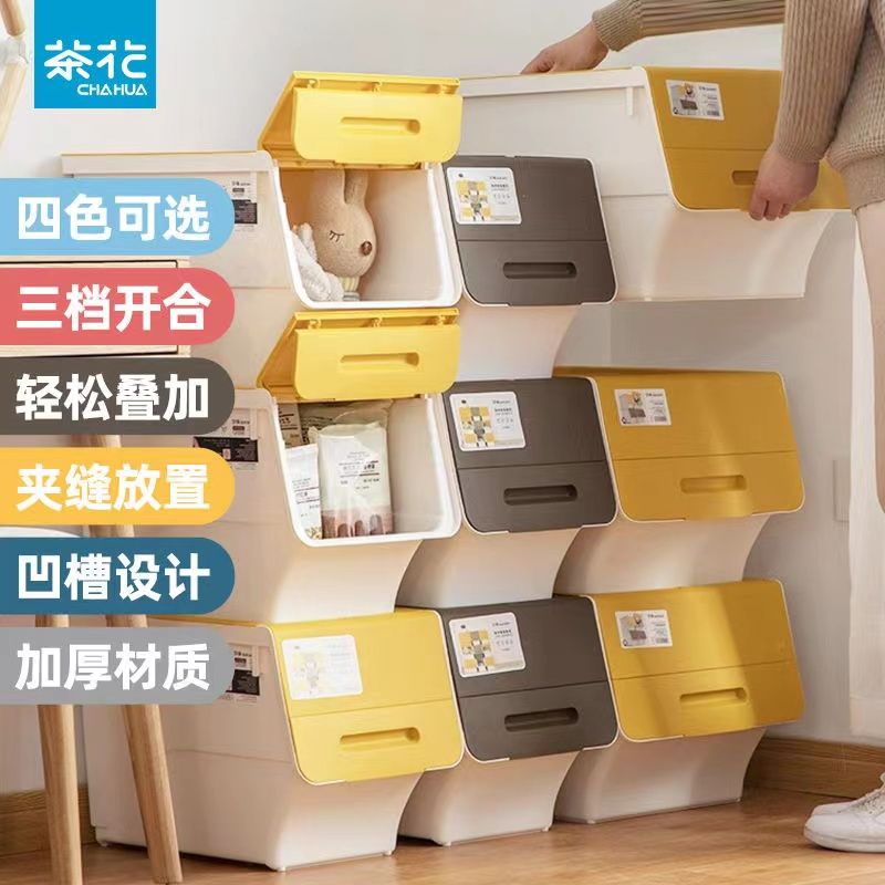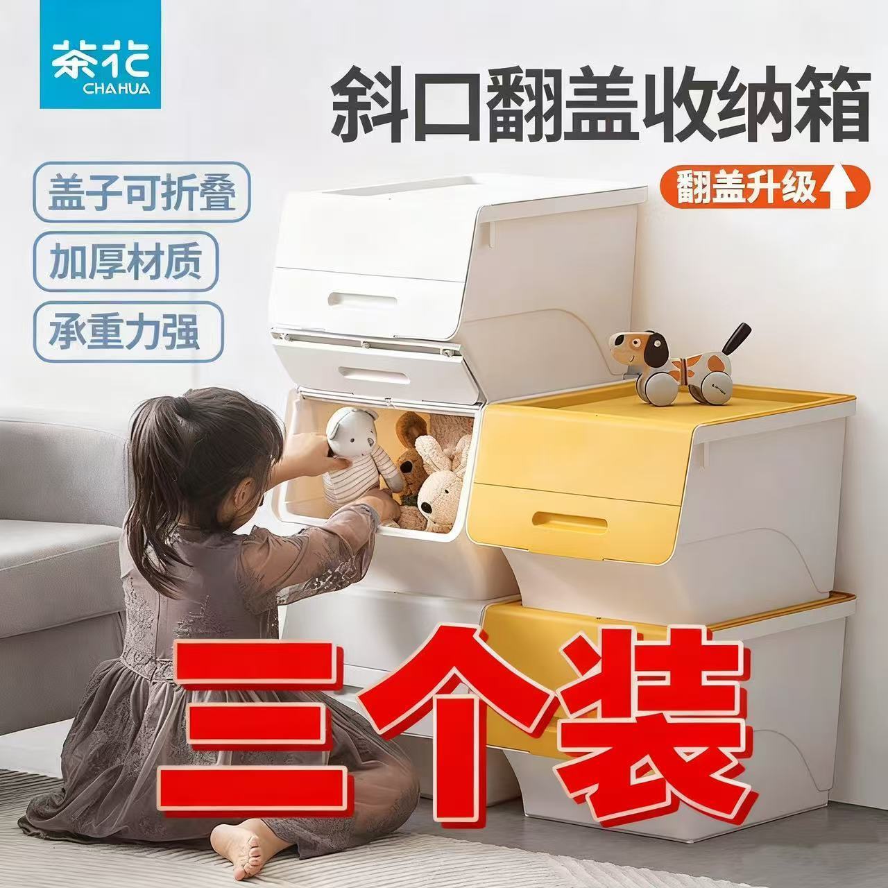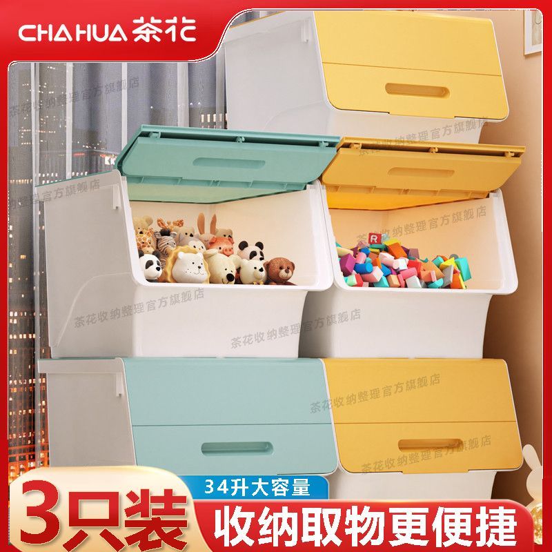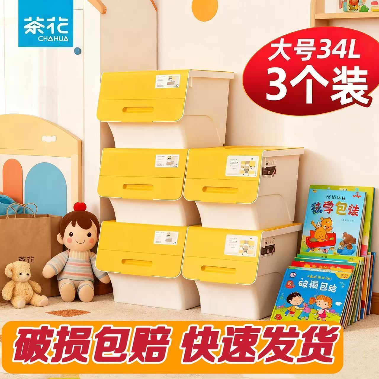茶花收纳箱前开式翻盖家用儿童玩具衣物整理柜34升大容量可叠放