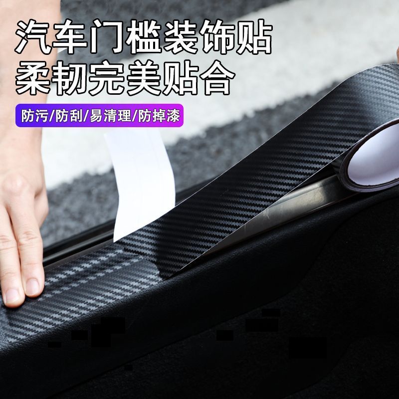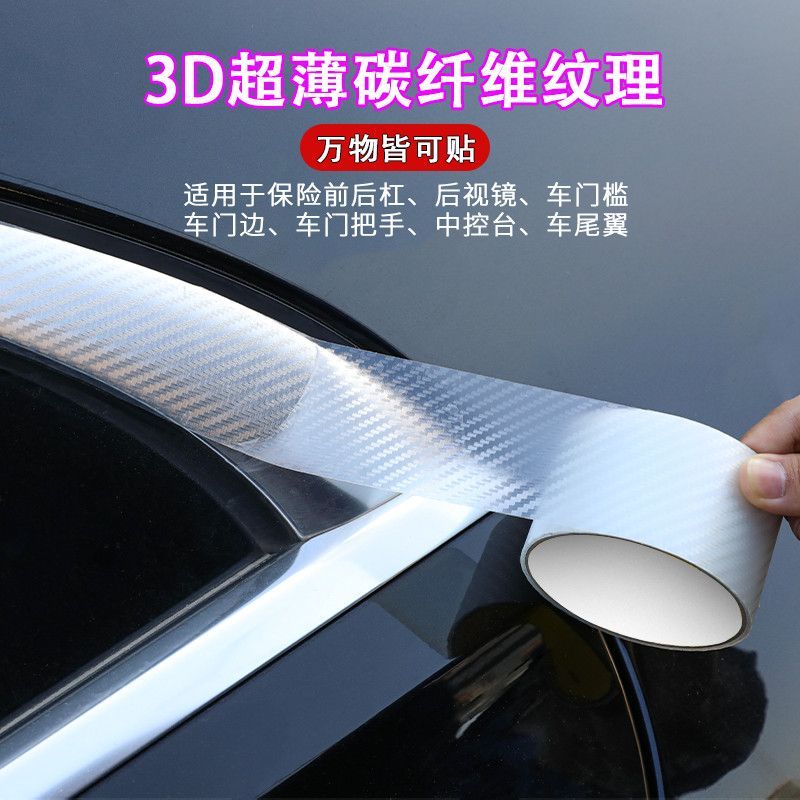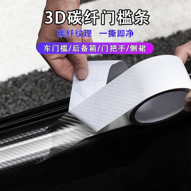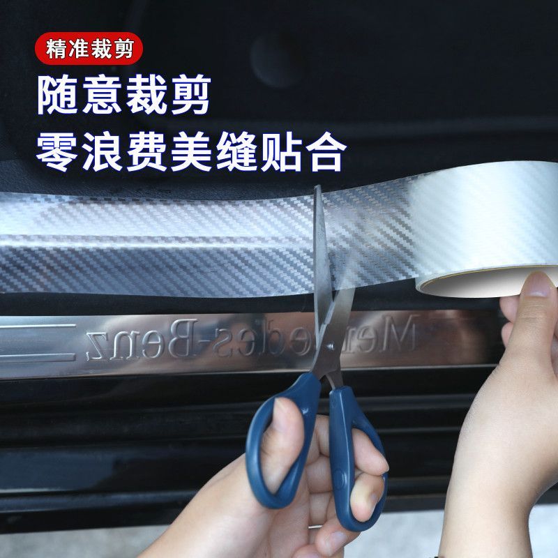3D透明碳纤纹汽车门槛条保险杠防撞条防踩贴通用车身膜贴装饰条