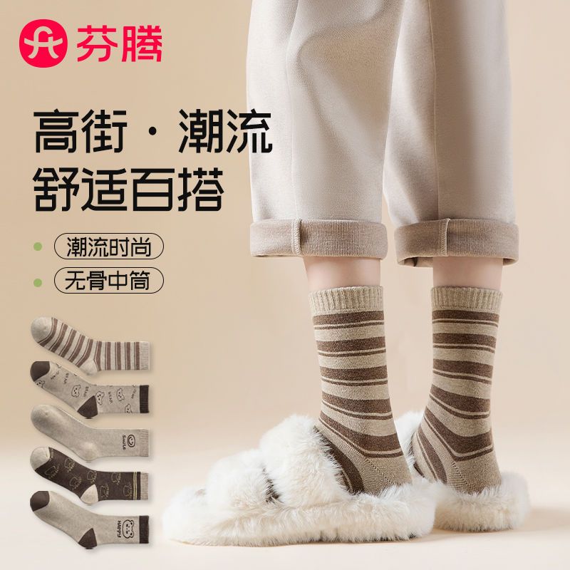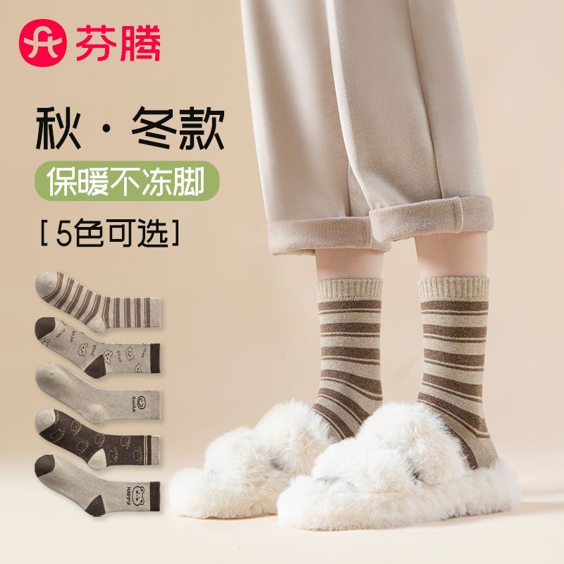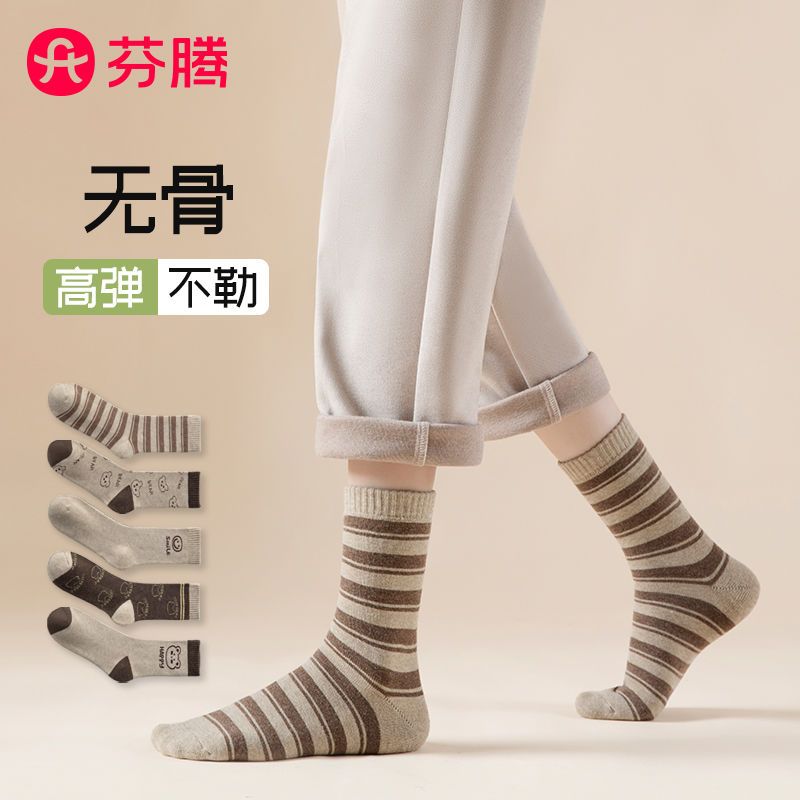芬腾勃肯鞋袜子女秋冬筒袜冬天保暖长筒复古美拉德条纹堆堆长袜