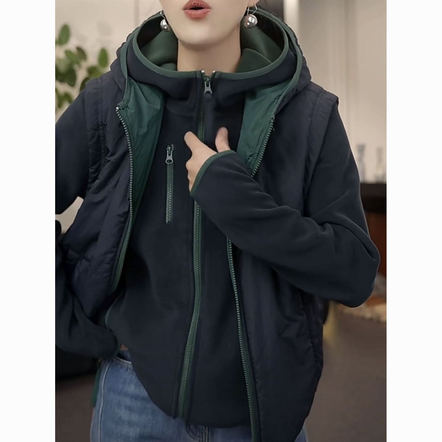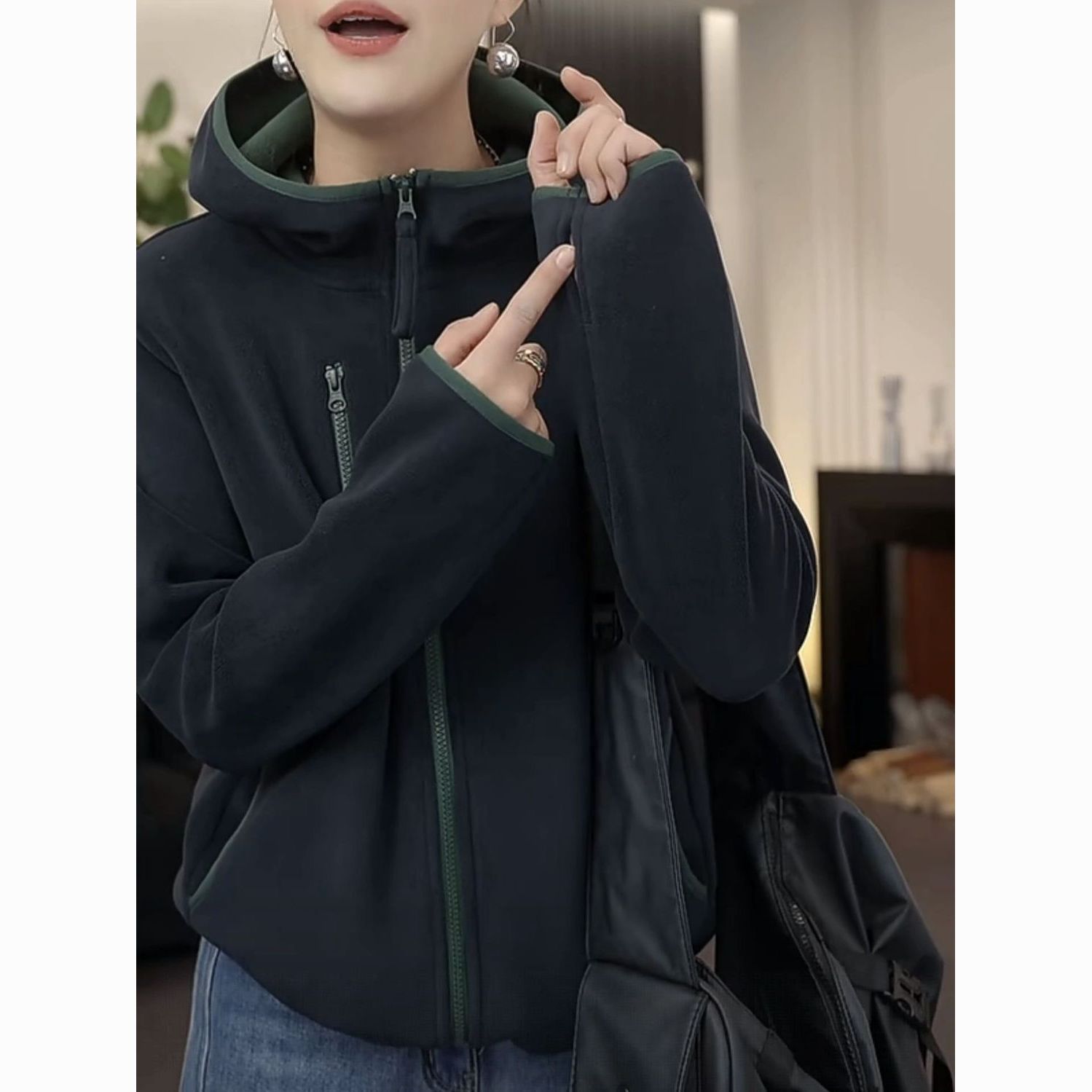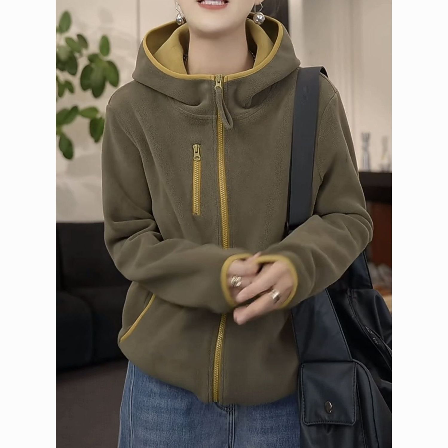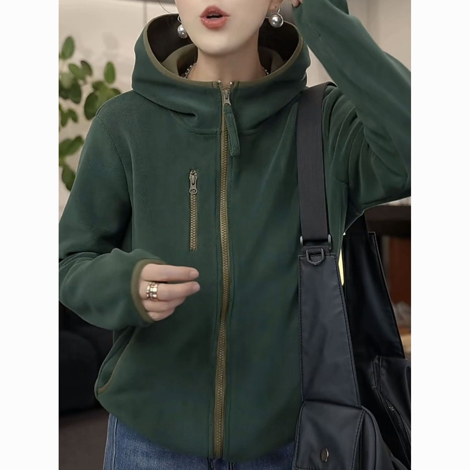 2025秋冬新款加绒加厚女士连帽防风保暖长袖休闲外套女时尚百搭