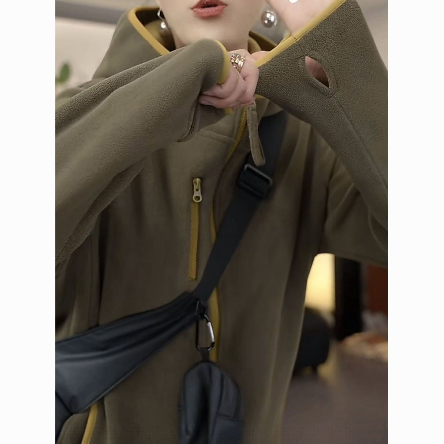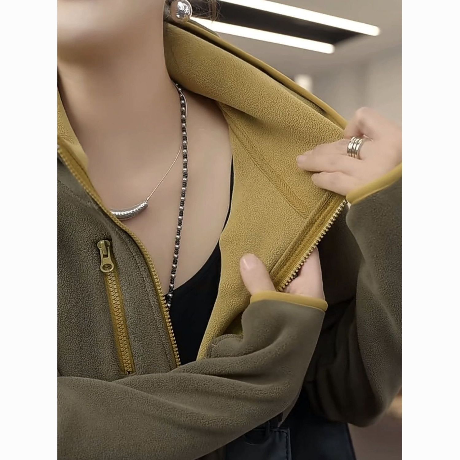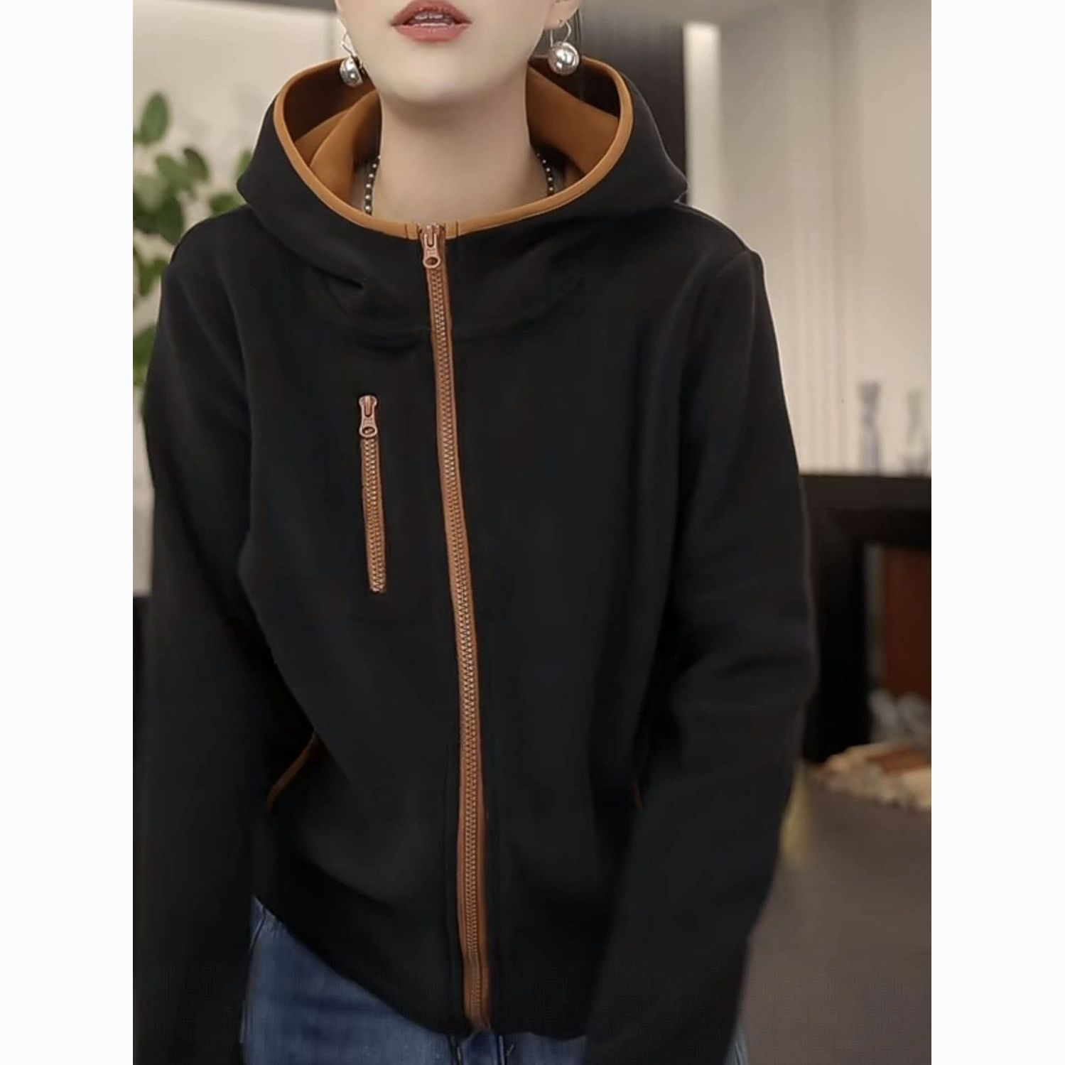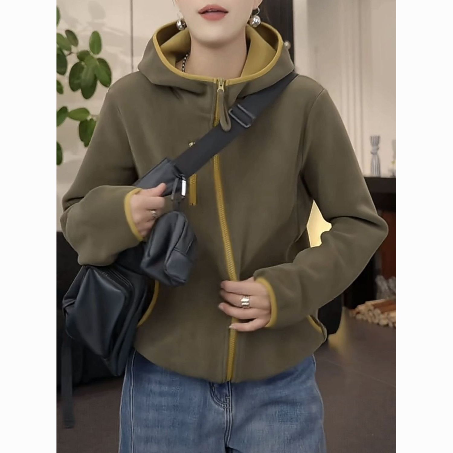 2025秋冬新款加绒加厚女士连帽防风保暖长袖休闲外套女时尚百搭