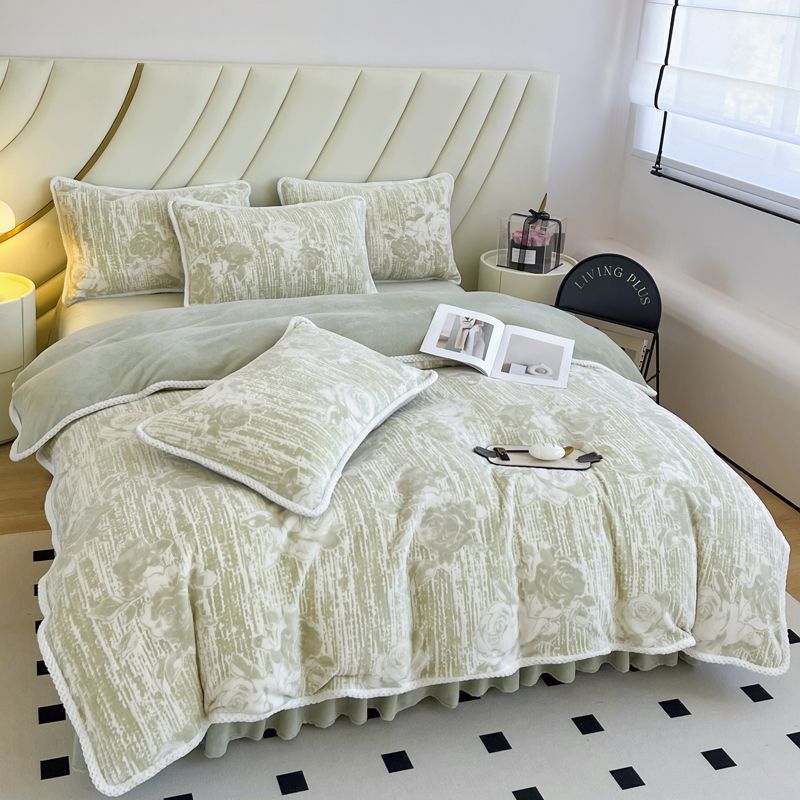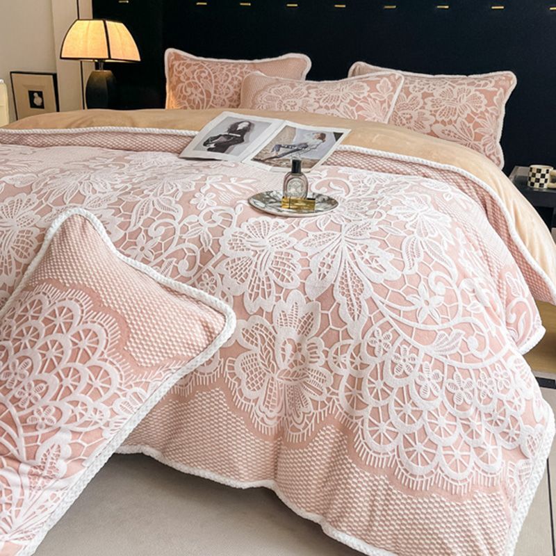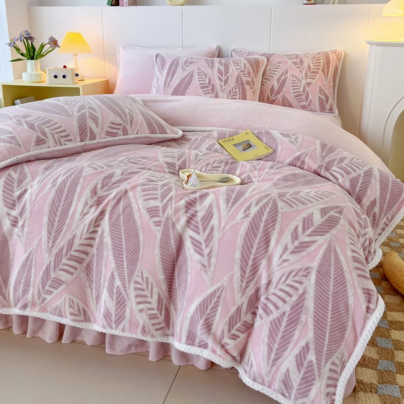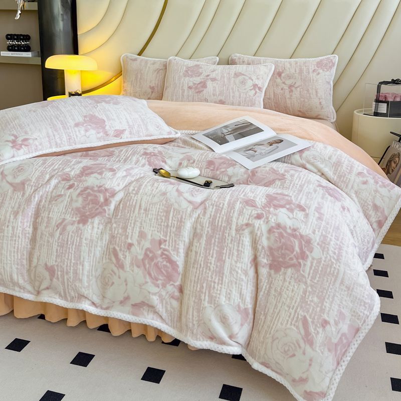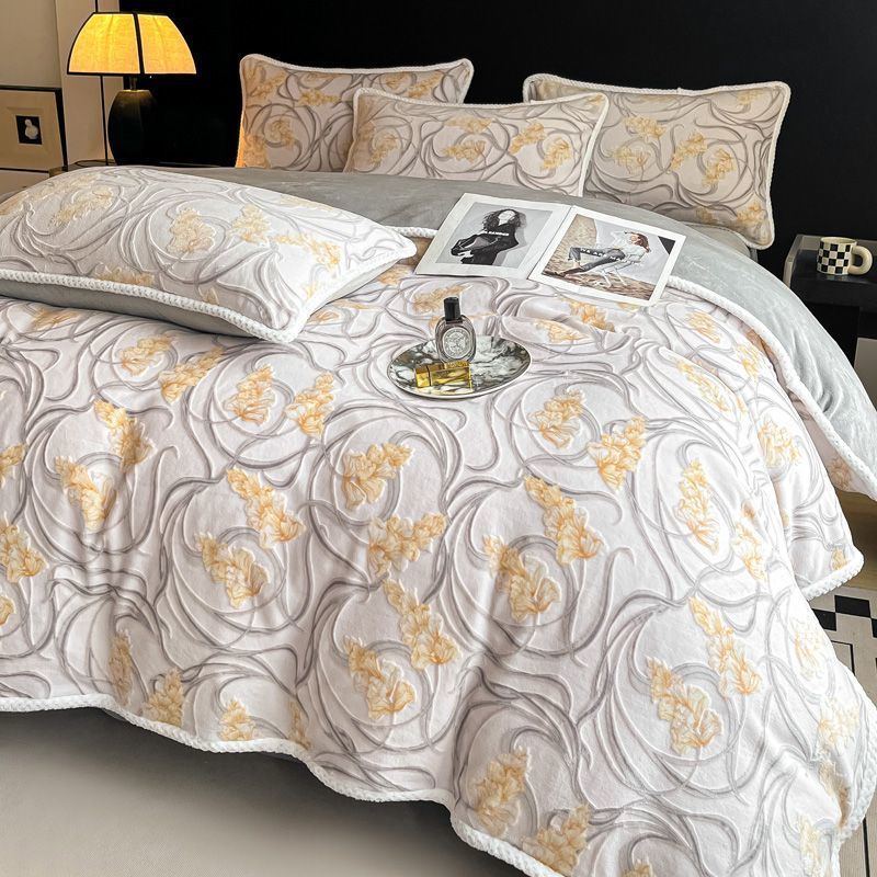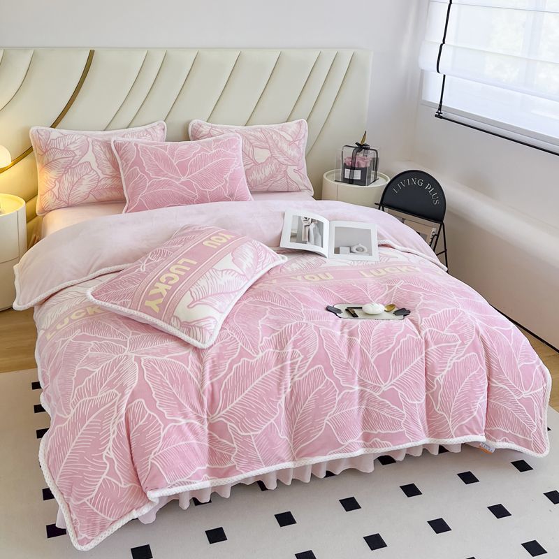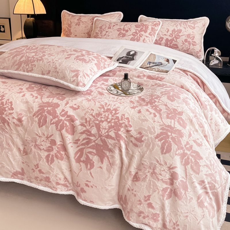 加厚雕花牛奶绒四件套冬季保暖珊瑚被套床上用品