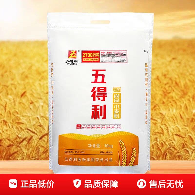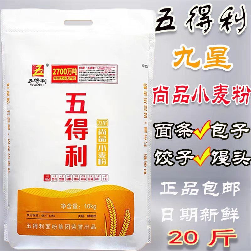 五得利面粉20斤九星尚品小麦粉包子油条馒头饺子通用面粉10kg中筋