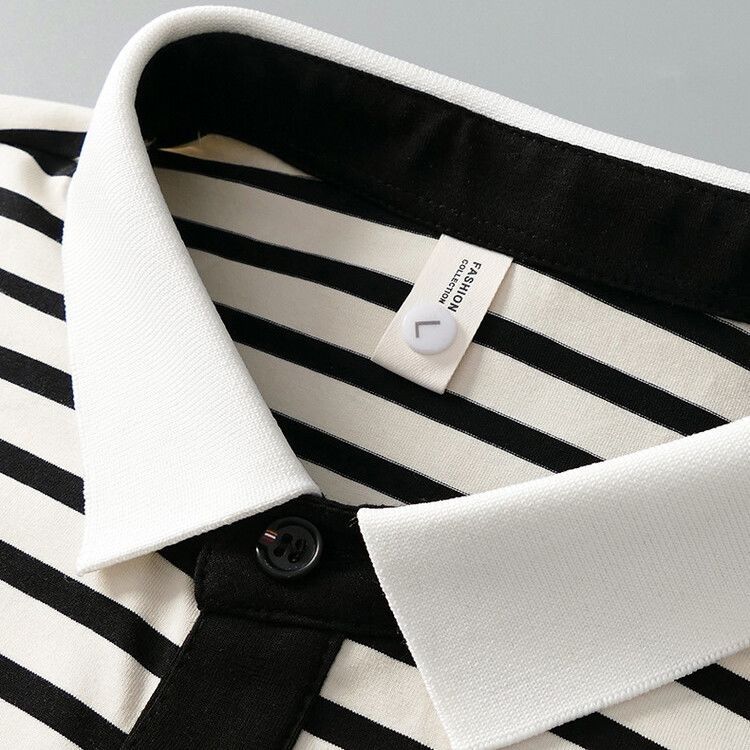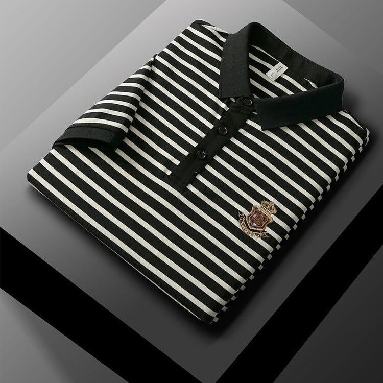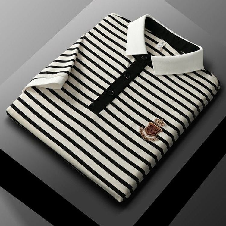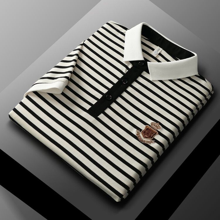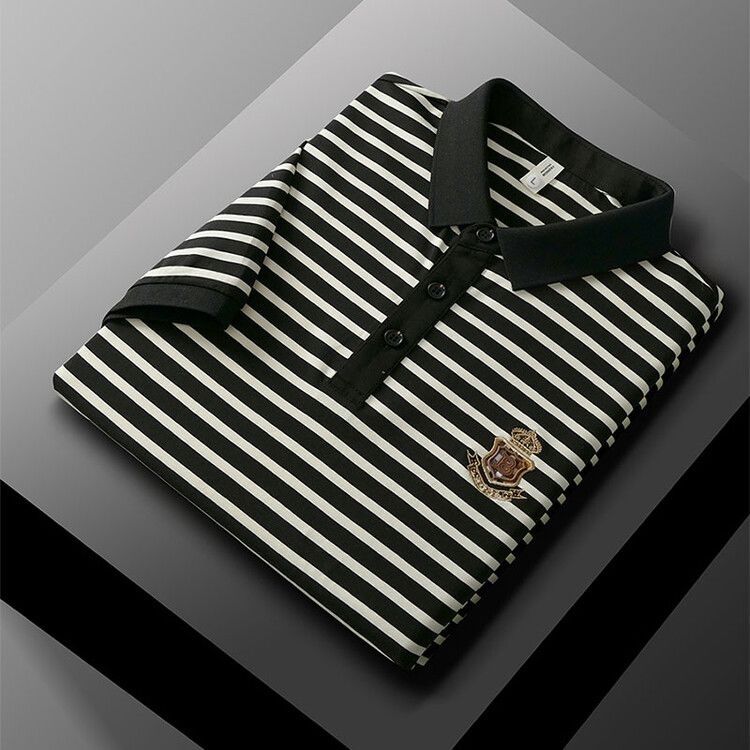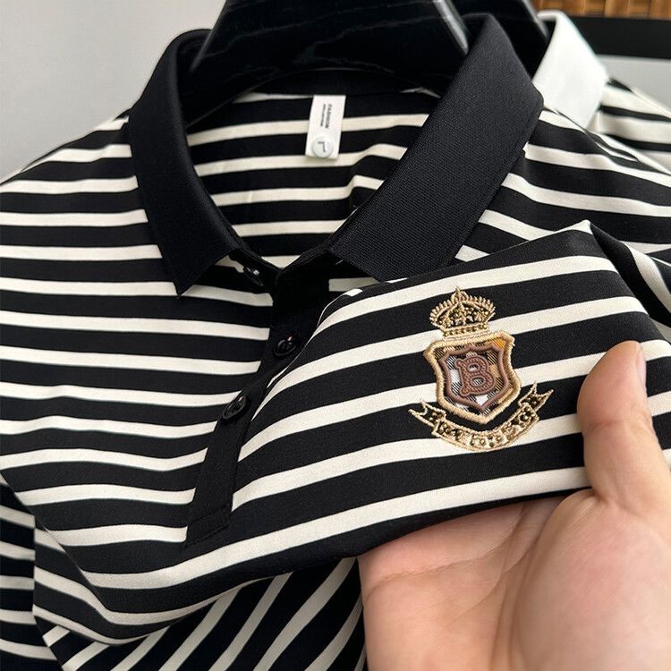 保罗威朗T恤条纹短袖polo领夏季新款商务刺绣休闲男士上衣