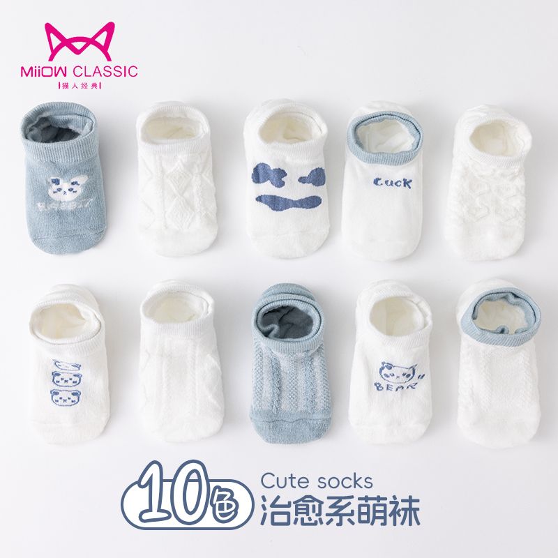 猫人袜子女船袜春夏季薄款吸汗透气休闲卡通简约可爱不掉跟隐形袜