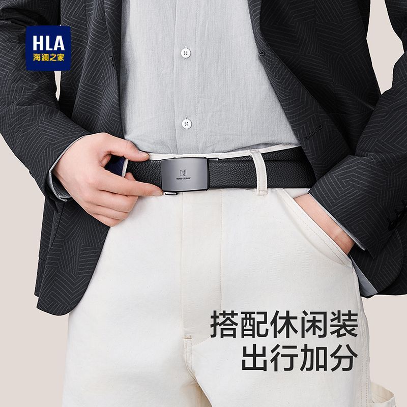 海澜之家皮带男士新款真皮裤带头层牛皮自动扣腰带节日礼物潮生日