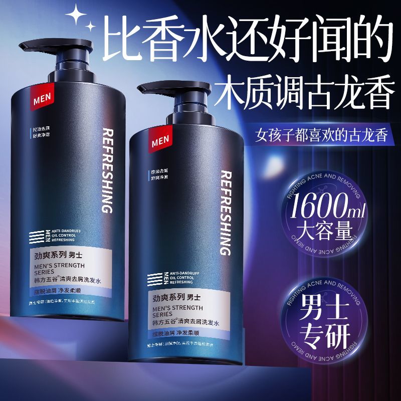 韩方五谷男士专用洗发水清爽去屑止痒控油蓬松持久留香古龙香正品