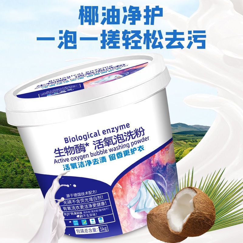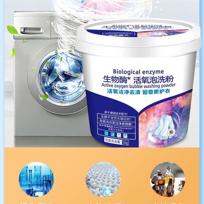 生物酶活氧洗衣粉强效去污除菌除螨持久留香护色柔顺洁净亮白10斤